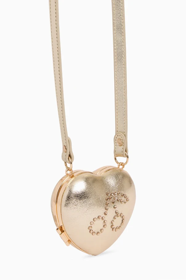 Embrace the enchanting allure of the Bonpoint Ekko Heart-Shaped Shoulder Bag in radiant gold, a captivating accessory that fuses playful design with refined sophistication. Meticulously crafted from materials reminiscent of lacquered and metallic leather, this piece boasts a subtly lustrous finish, exuding both luxury and charm.