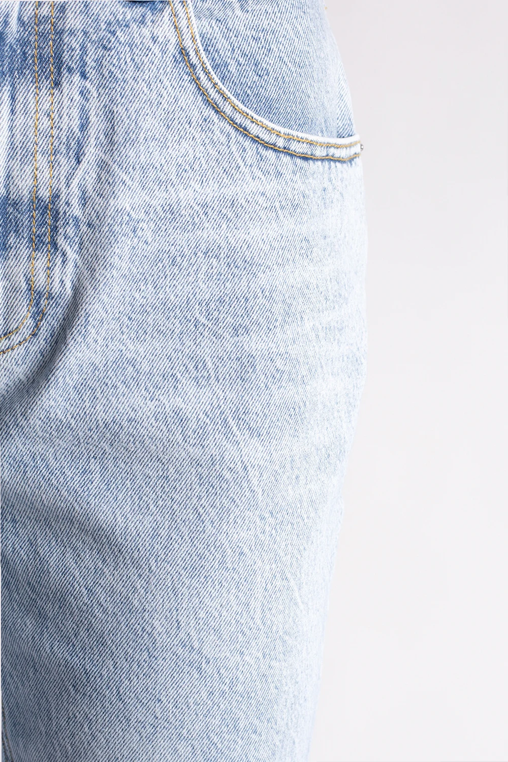 Blue denim shorts from Alexander Wang. Fastened with a zip fly with a button, this high-waisted design features raw cut edges, three front pockets and two back pockets.