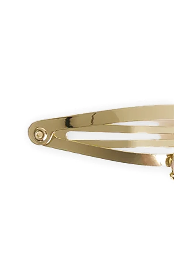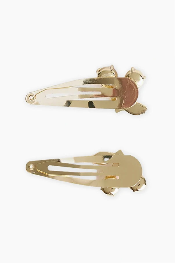 Imbued with the enchanting spirit of childhood, the Lobelia Hair Clips by Bonpoint gracefully blend whimsical charm with timeless elegance. Exquisitely crafted from lustrous gold-tone metal and adorned with delicate resin embellishments, each clip features a classic elongated silhouette finished with a gently rounded edge.