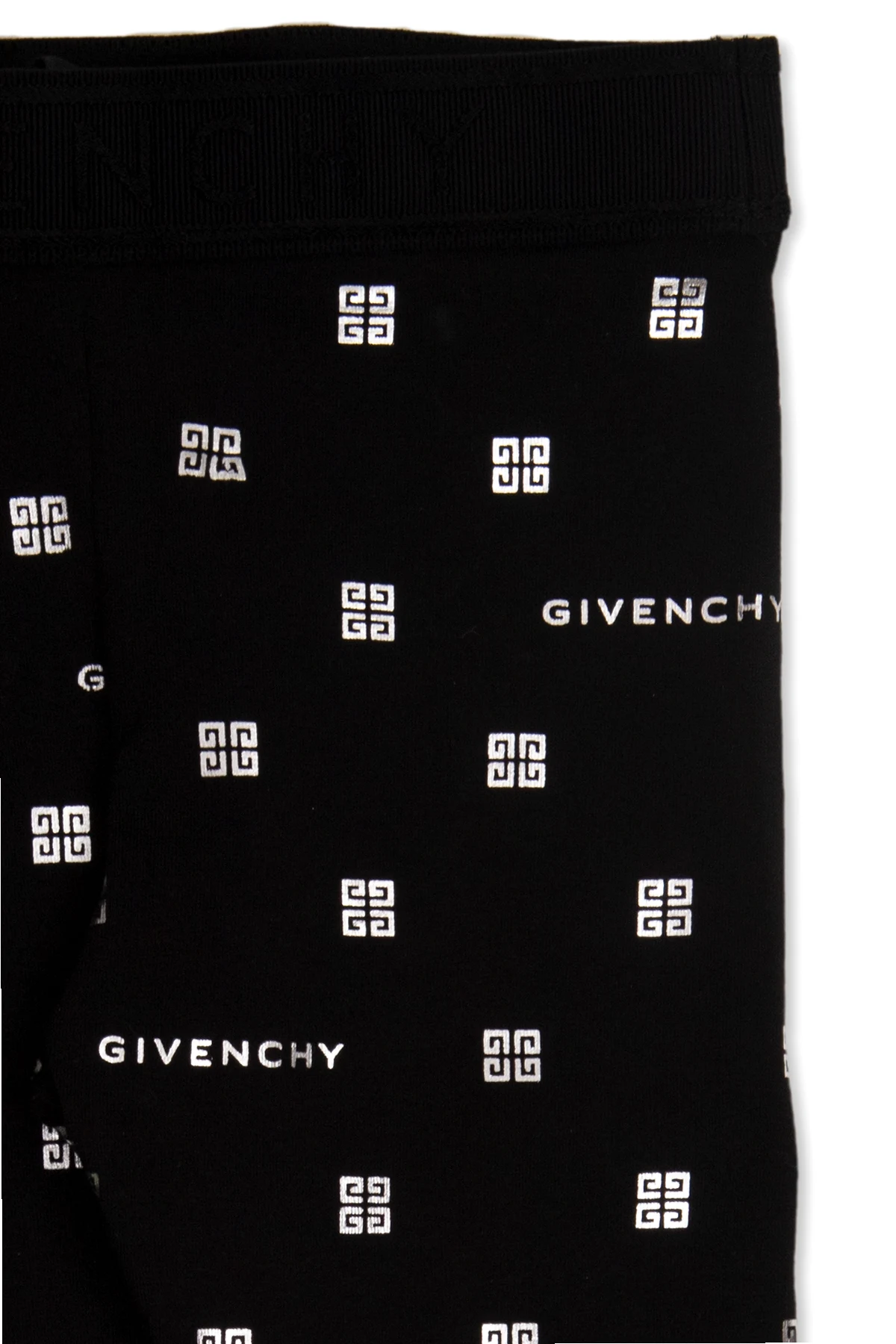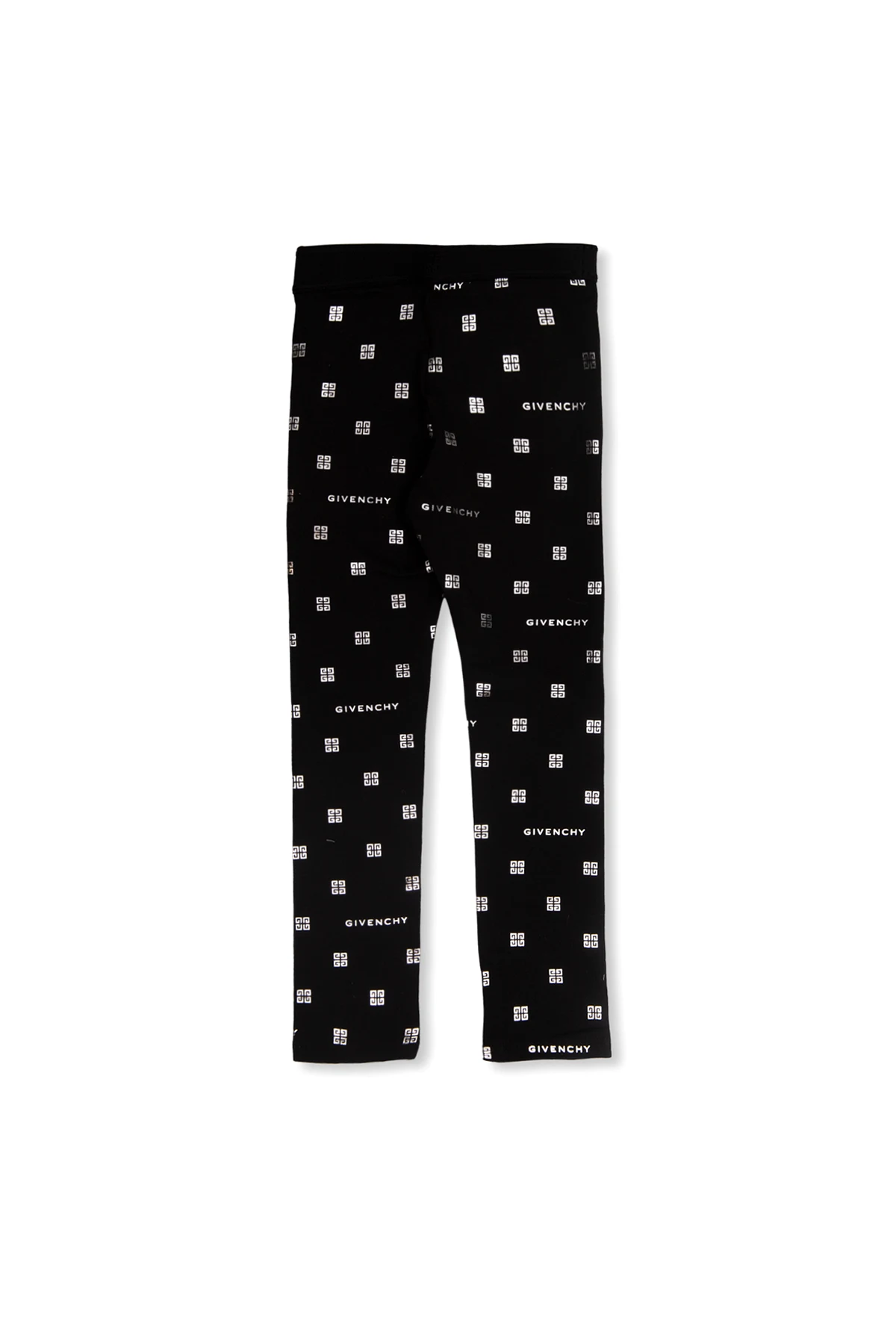Black leggings from Givenchy Kids. Made of cotton, this pair features an elastic waistband and silver-tone logo print.