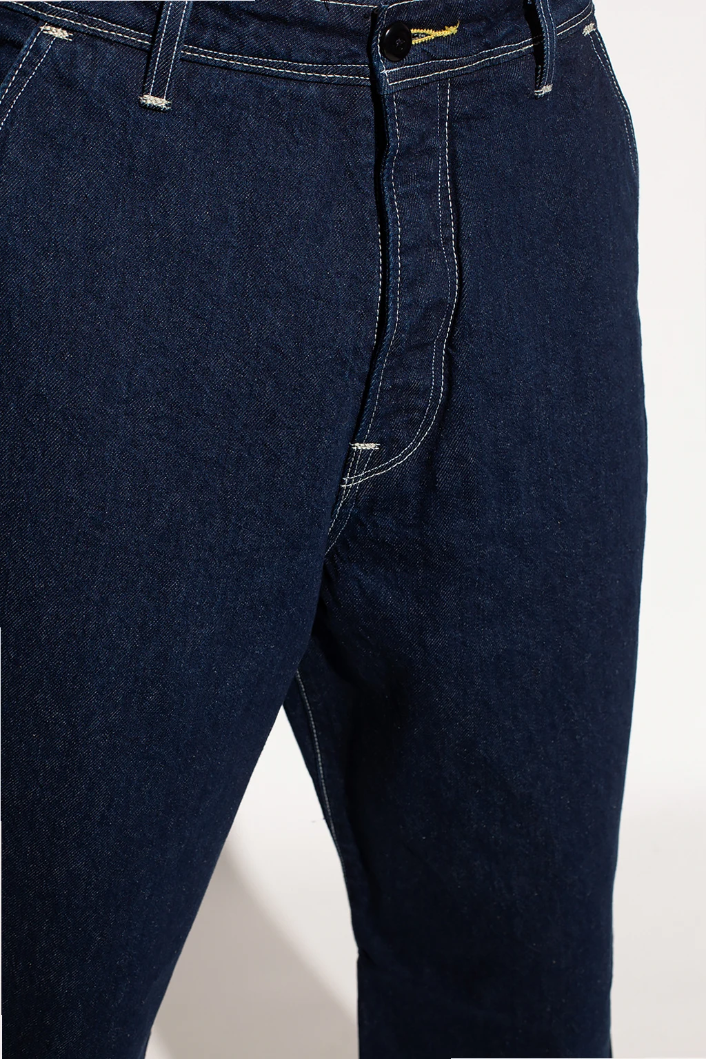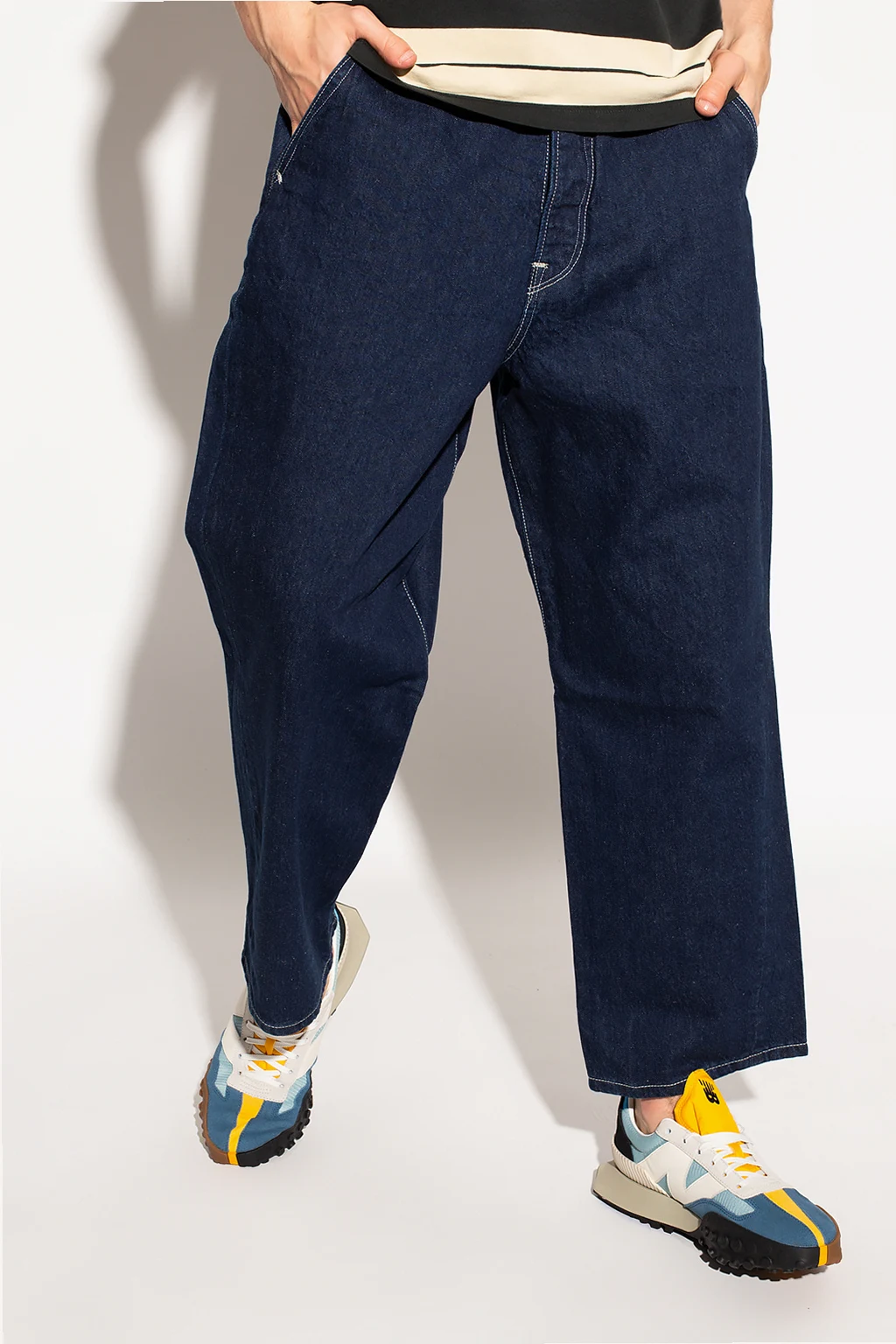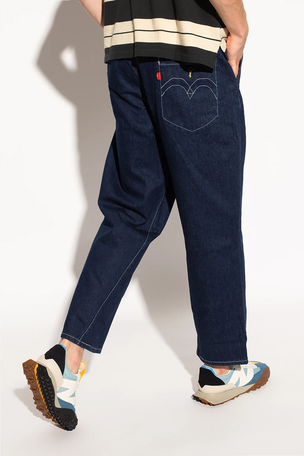 Navy blue ‘Twisted’ jeans from Levi’s, the ‘Red’ collection. Falling down with wide, straight legs, this pair features button fastenings, two slip pockets on the front and two button pockets accompanied by a logo patch on the back.