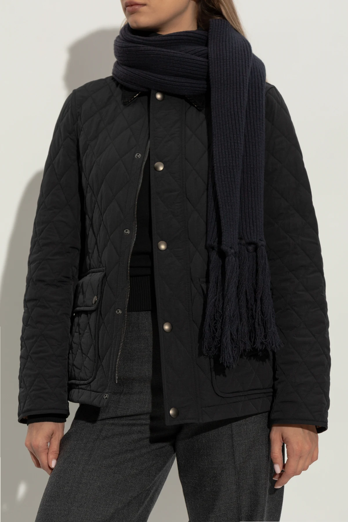 Presenting the exquisite Fringe Shawl from the exclusive collection by Officine Generale. This navy blue masterpiece is meticulously crafted from premium wool, featuring a ribbed knit texture that epitomizes elegance and sophistication. The shawl boasts a classic rectangular shape with long, dense fringes at both ends, adding a refined touch to its overall appearance. Its generous width allows for versatile styling options, whether wrapped snugly around the neck or draped loosely for a casual yet chic look. Designed as a unisex accessory, this shawl seamlessly complements a variety of outfits. It pairs effortlessly with both casual jackets and formal coats, showcasing its universal appeal and timeless design. The absence of logos underscores its commitment to quality and understated luxury. Why You Should Buy This Product: Exclusivity: Part of a limited edition collection by Officine Generale. Premium Material: Crafted from 100% high-quality wool. Elegant Design: Features a ribbed knit texture and stylish fringes. Versatility: Suitable for both men and women, and pairs well with various outfits. Timeless Appeal: A sophisticated addition to any wardrobe, free from ostentatious branding.