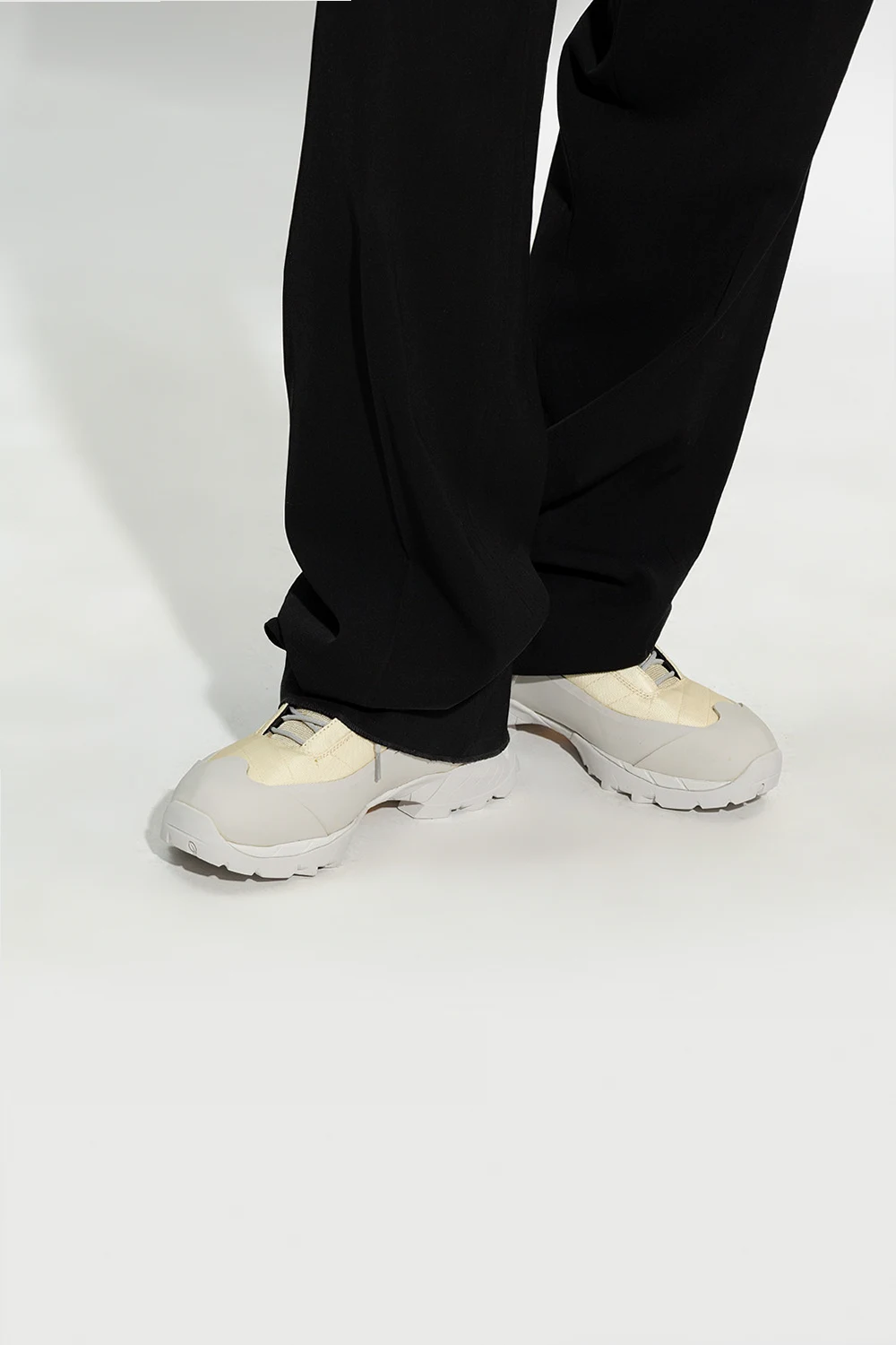 Grey and yellow ‘Katharina’ sneakers from Roa. Crafted from durable technical nylon material, this lace-up pair is set on a Vibram toothed tread pattern sole designed for optimal traction and to ensure high resistance to use on roughest surfaces.