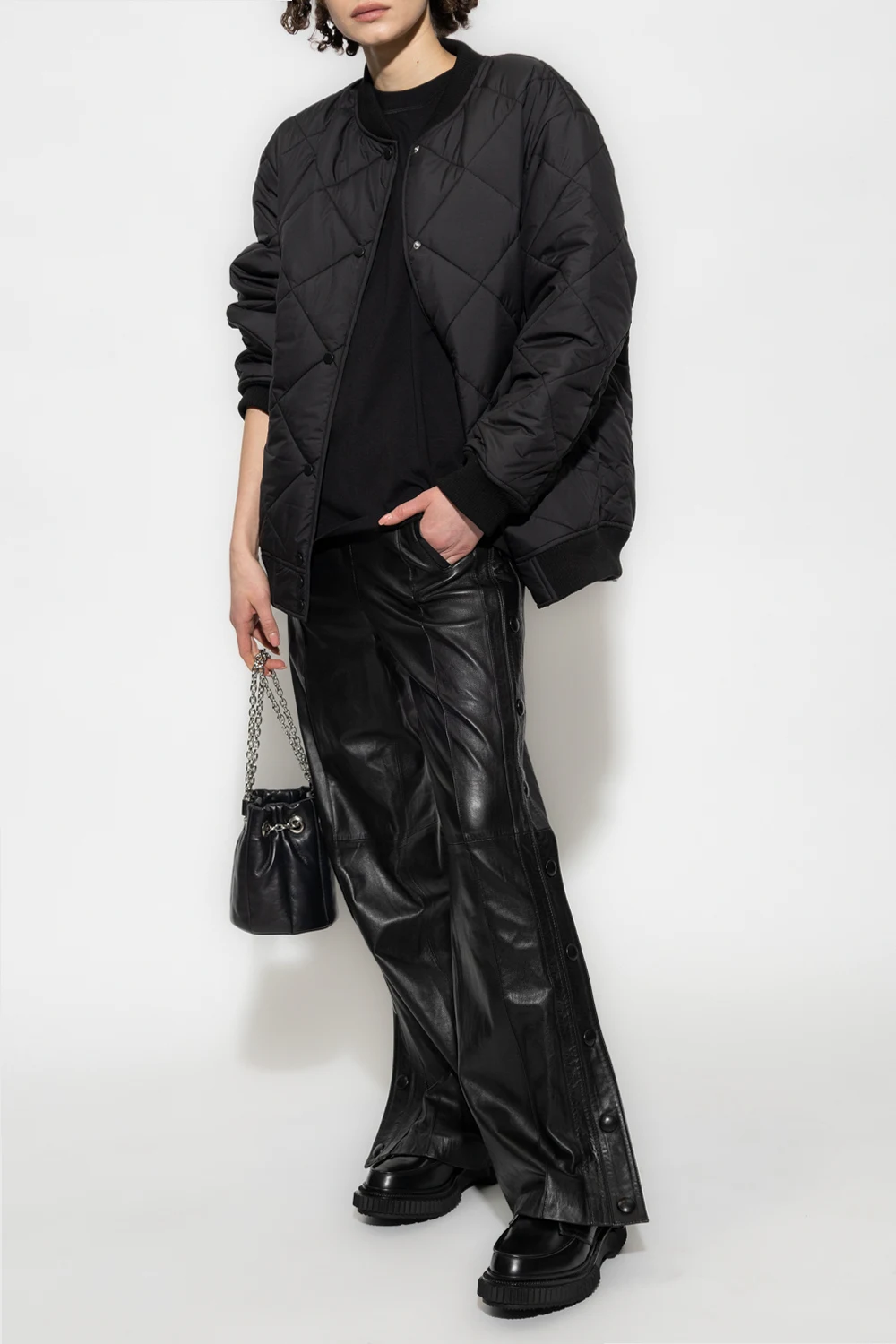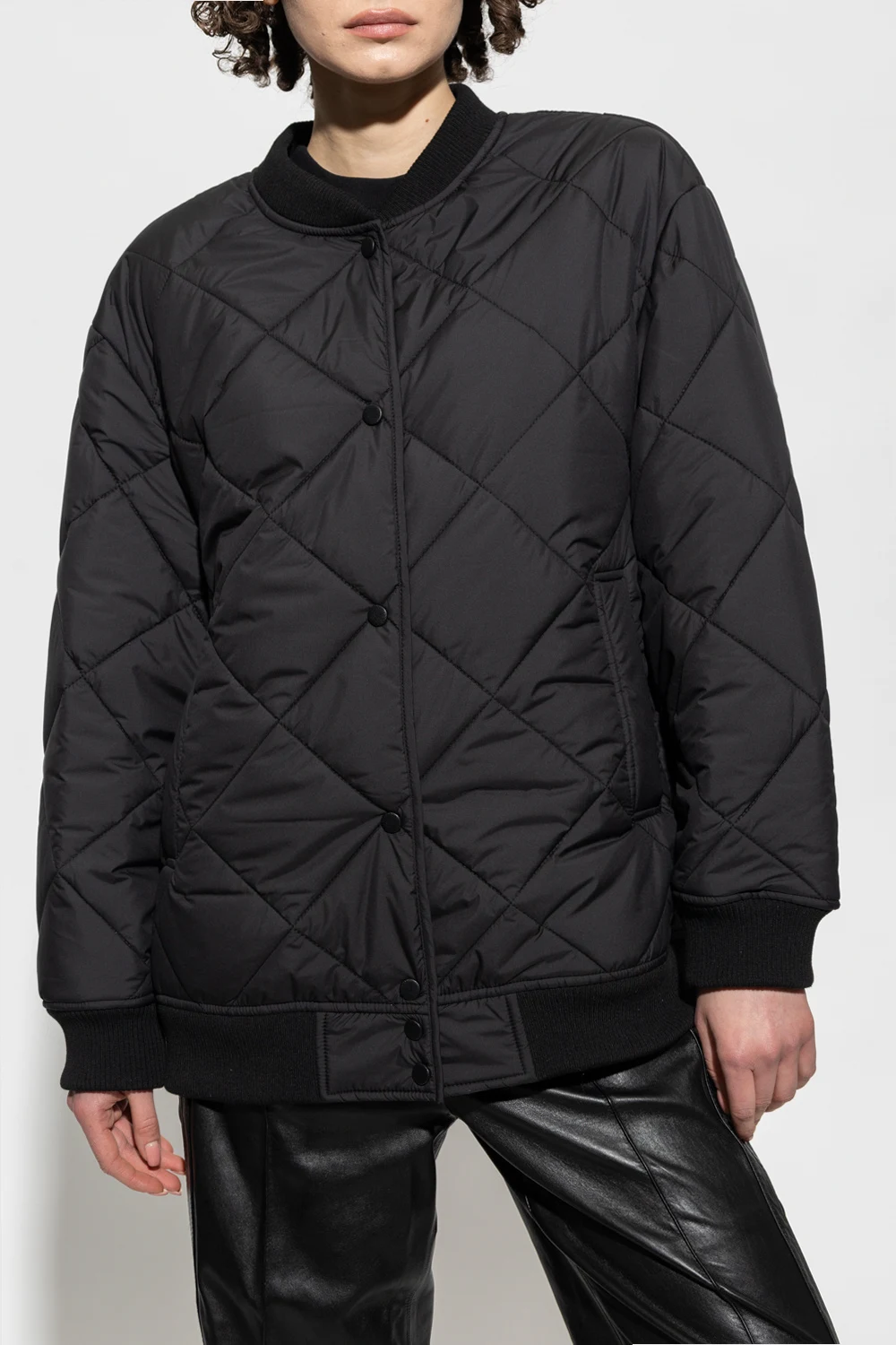 Black quilted jacket from Stand Studio. Made of recycled fabric, this garment features two slip pockets and ribbed edges.