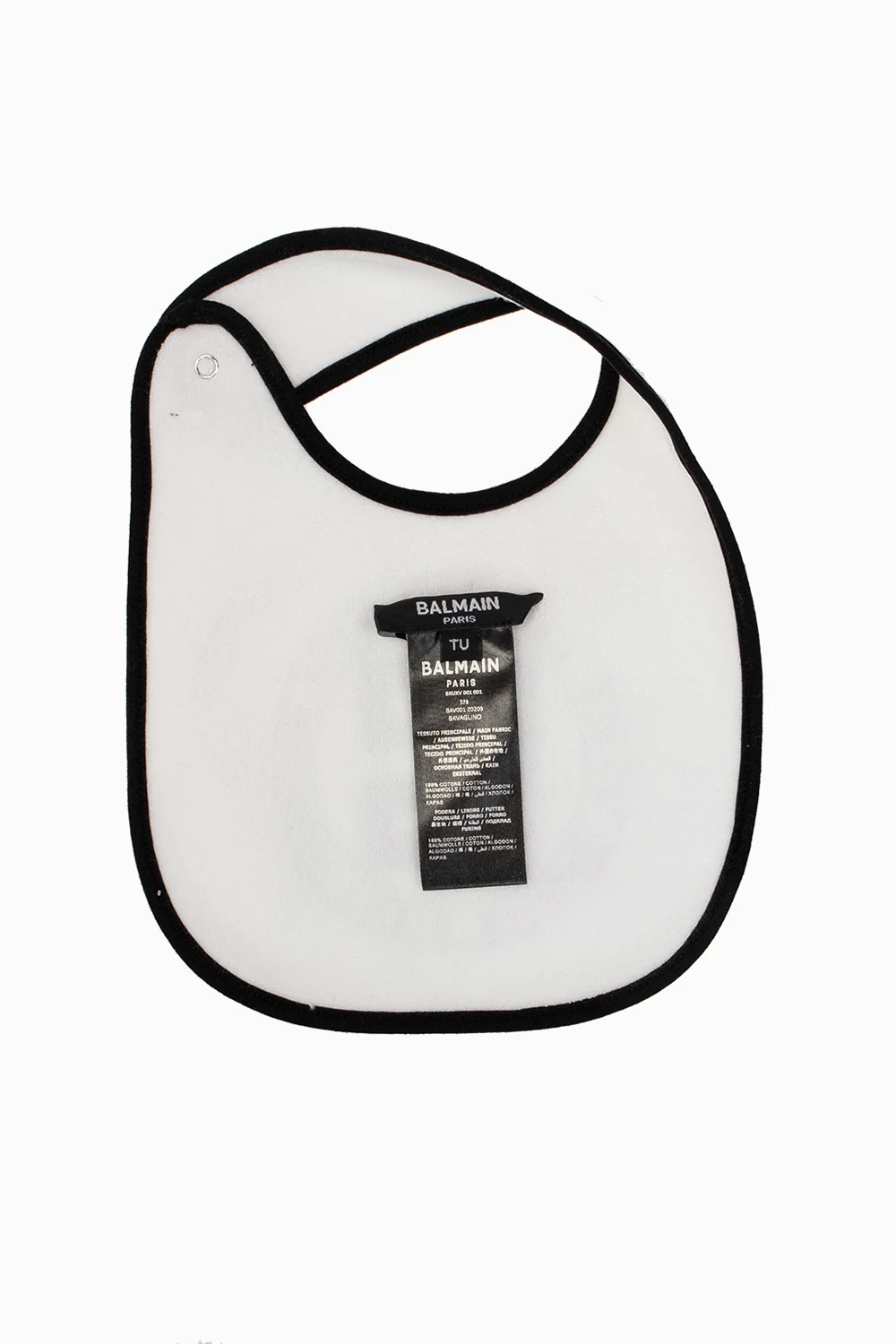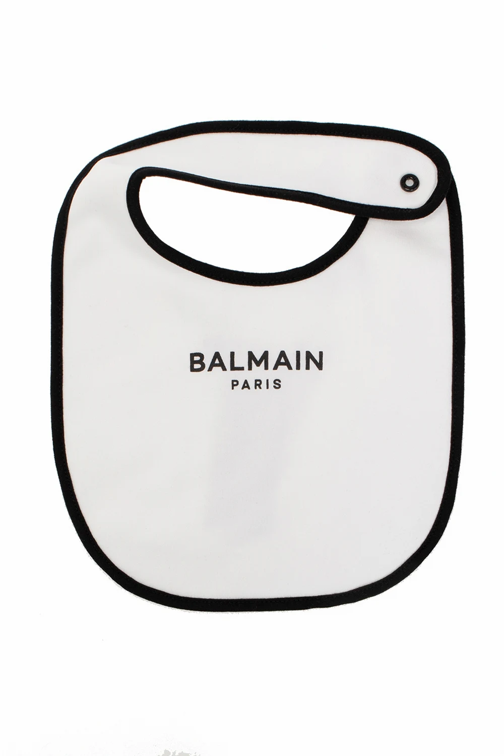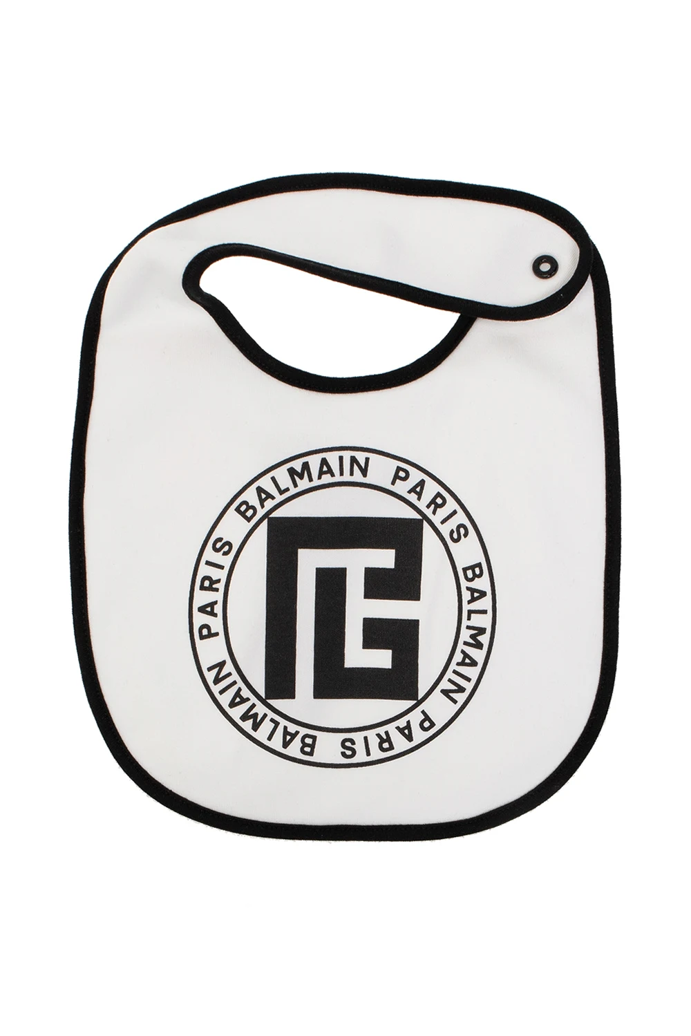 White bibs two-pack from Balmain Kids. Made of cotton, they secure with snaps and feature black logo prints and binding on the edges.