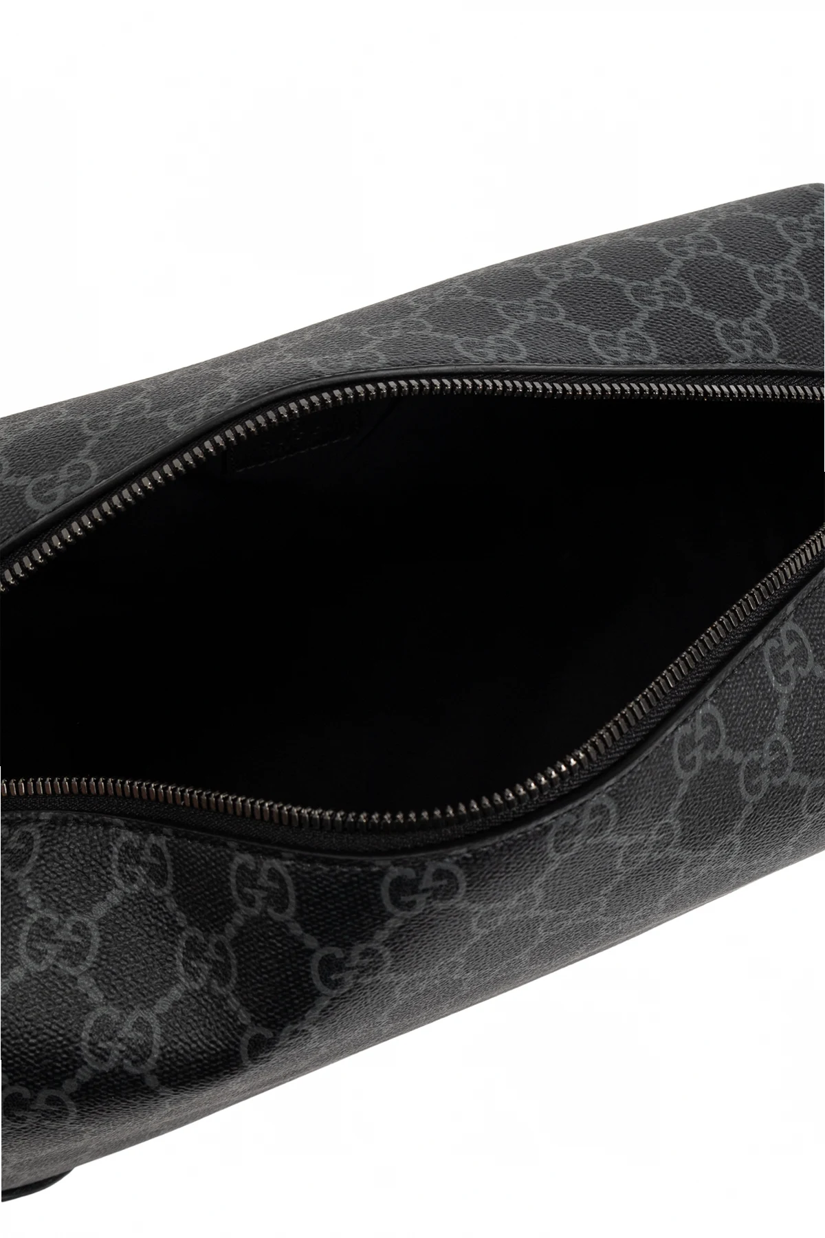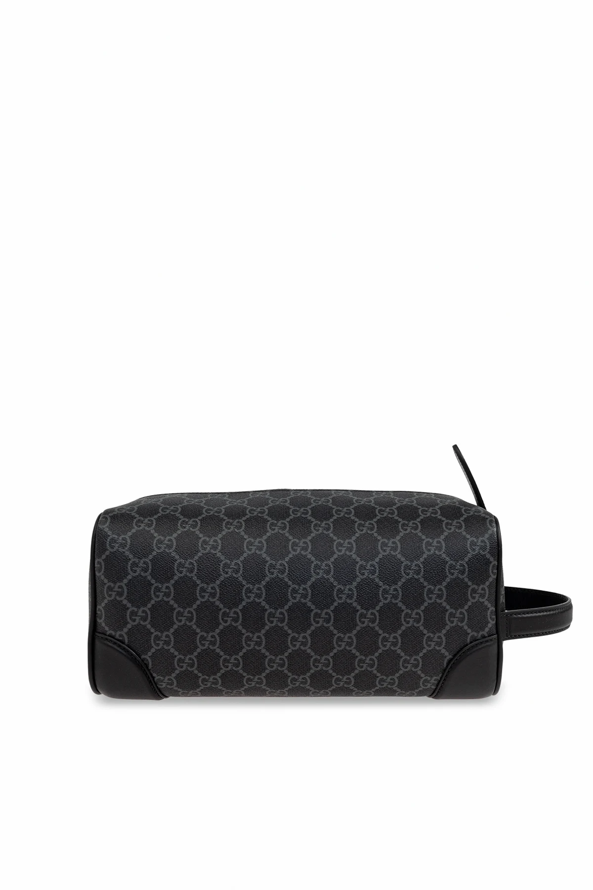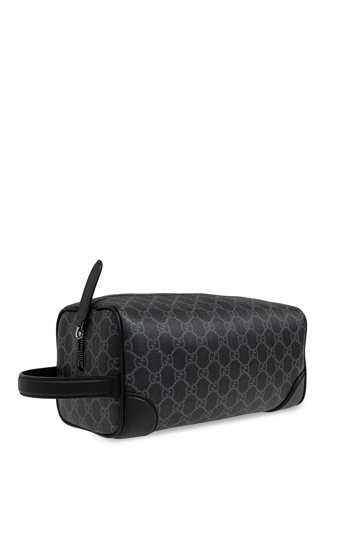 Introducing the GG Emblem Medium cosmetic pouch, a quintessential piece from the illustrious house of Gucci. Crafted with a meticulous blend of leather and canvas, this pouch is not merely an accessory but a statement of refined elegance. Its rectangular form with gently rounded edges is complemented by a sleek zipper closure and a handy side handle, ensuring both sophistication and practicality. The exterior is adorned with the iconic GG motif in a subtle gray, a hallmark of the brand\'s exquisite design ethos. The textured material exudes durability, while the black zipper and handle seamlessly integrate with the overall aesthetic. Inside, the pouch features a spacious compartment and a secure zipped pocket, ideal for organizing your essential accessories. This piece embodies the transformative vision of Creative Director creative director, marrying timeless Italian craftsmanship with contemporary luxury. Why Choose This Product? Exquisite design with iconic GG pattern Premium materials: leather and canvas Practical interior with secure pocket Signature piece from luxury brand Gucci