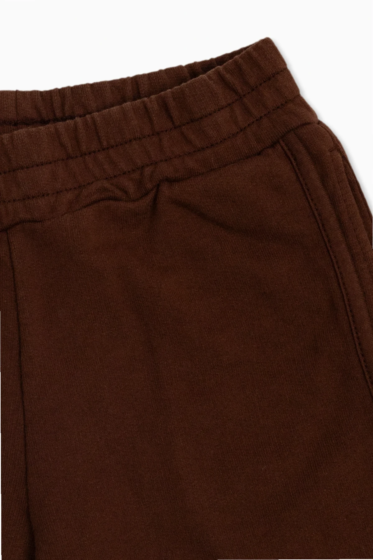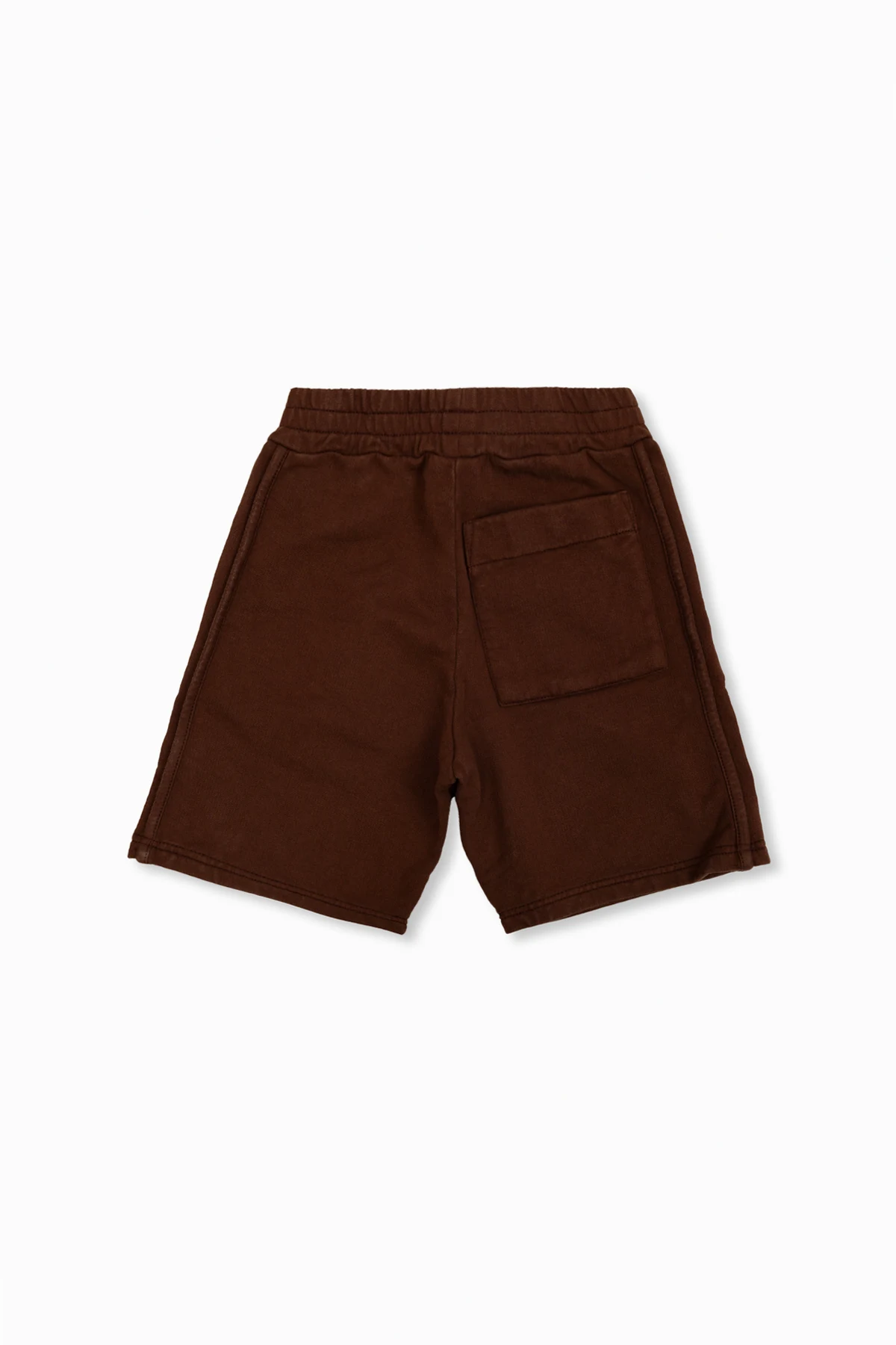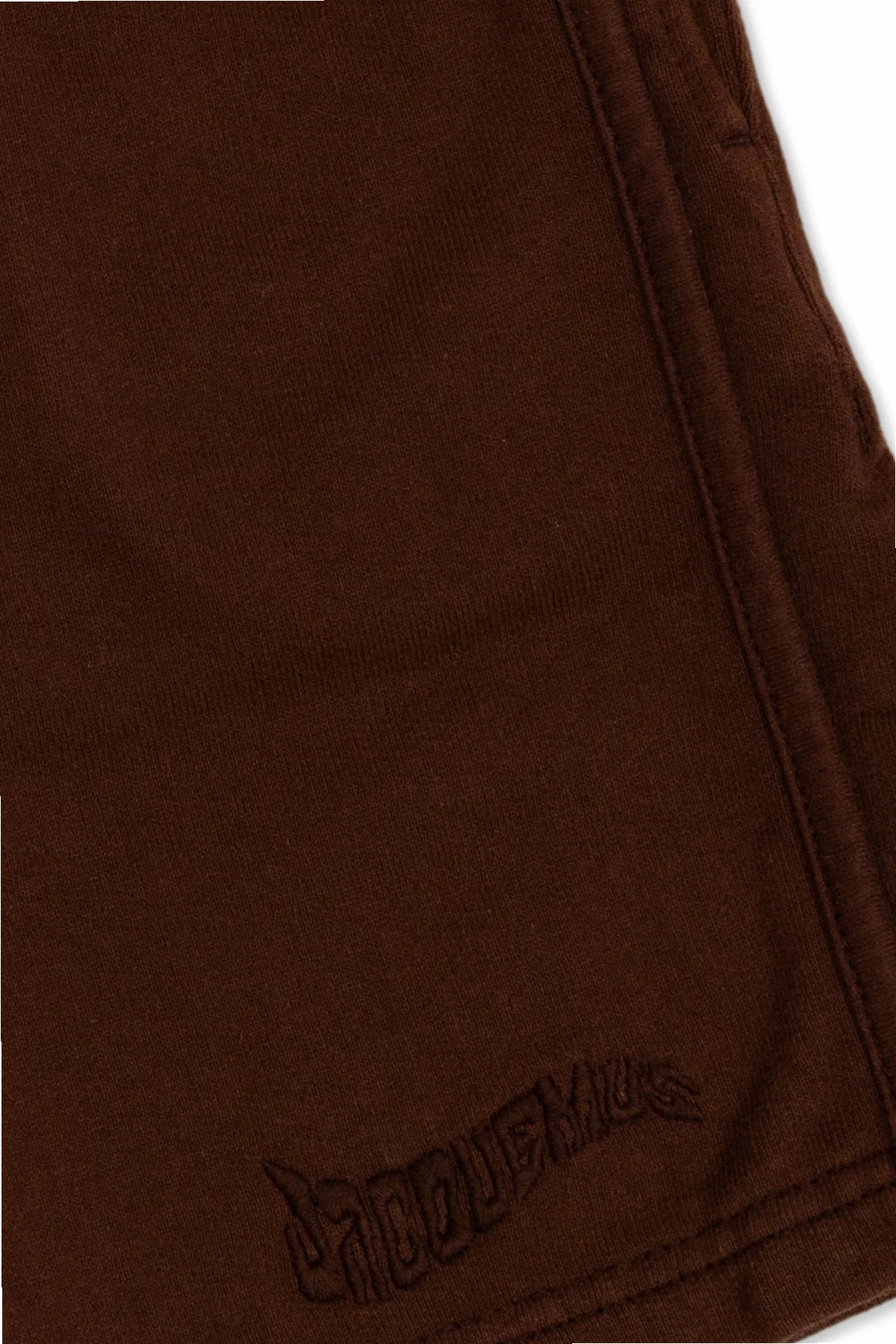 Dark brown sweat shorts from Jacquemus Kids. Made from cotton with a subtle vintage effect, this pair features an elasticated waistband, two front slip pockets, one back slip pocket and an embroidered dark brown logo.