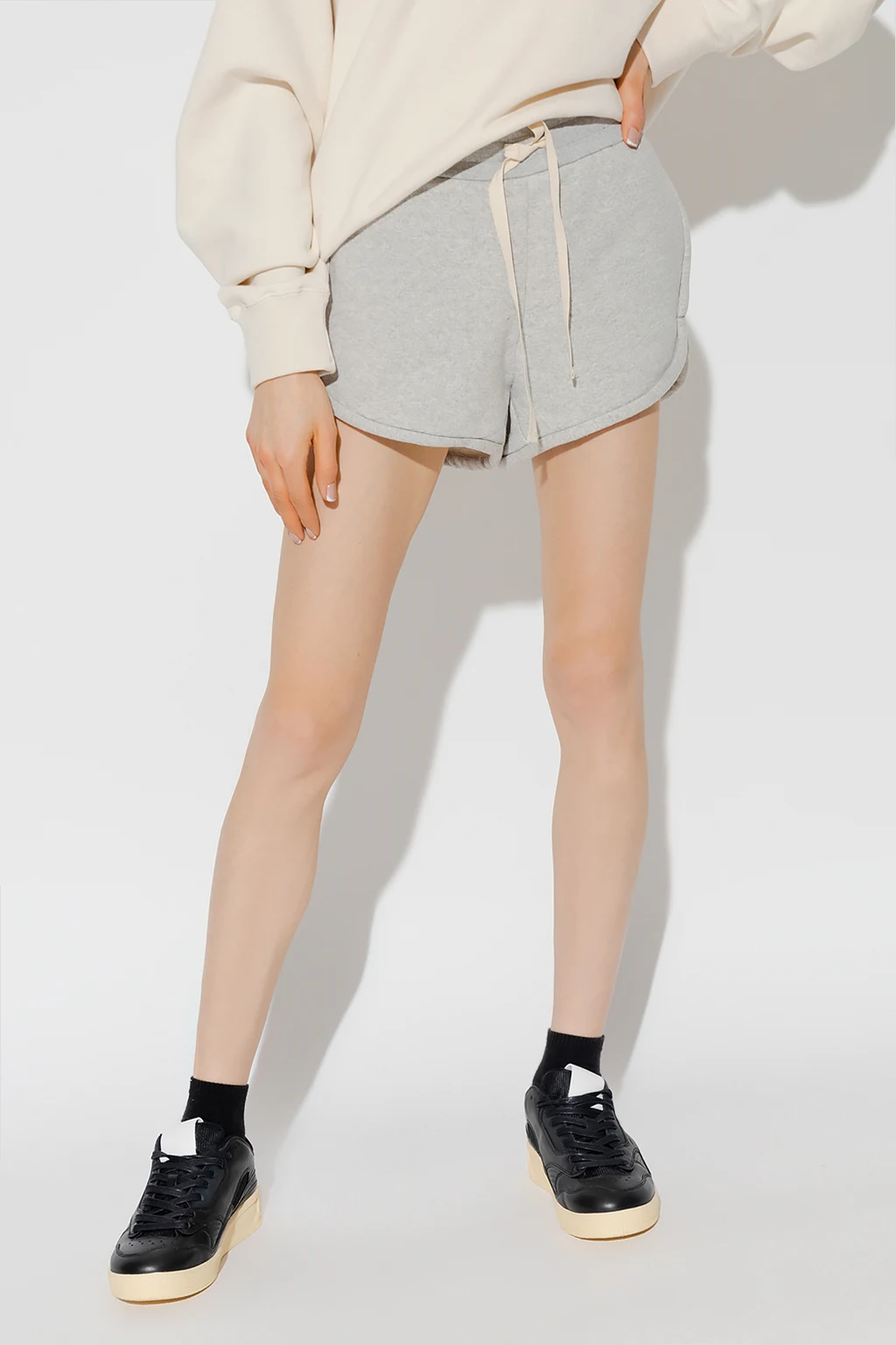Grey shorts from JIL SANDER+. Made of cotton, this pair features a drawstring waistband, three slip pockets and a back logo patch.