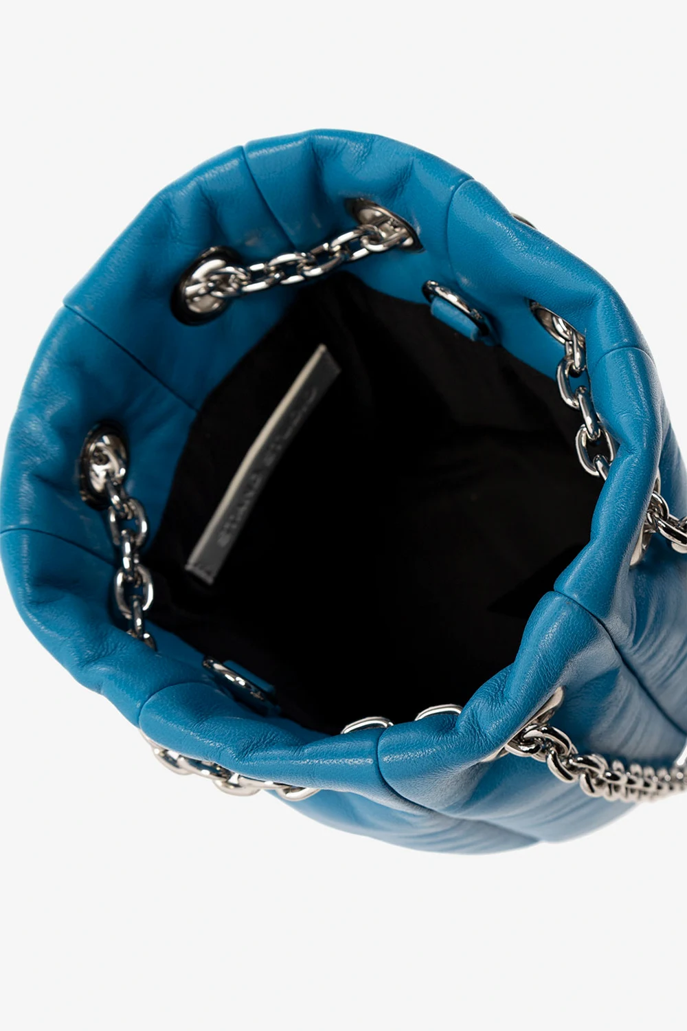 Blue ‘Yvette’ shoulder bag from Stand Studio. Crafted from lamb leather, this model features a detachable, adjustable shoulder strap, two chain handles, one internal compartment and silver-tone metal hardware.