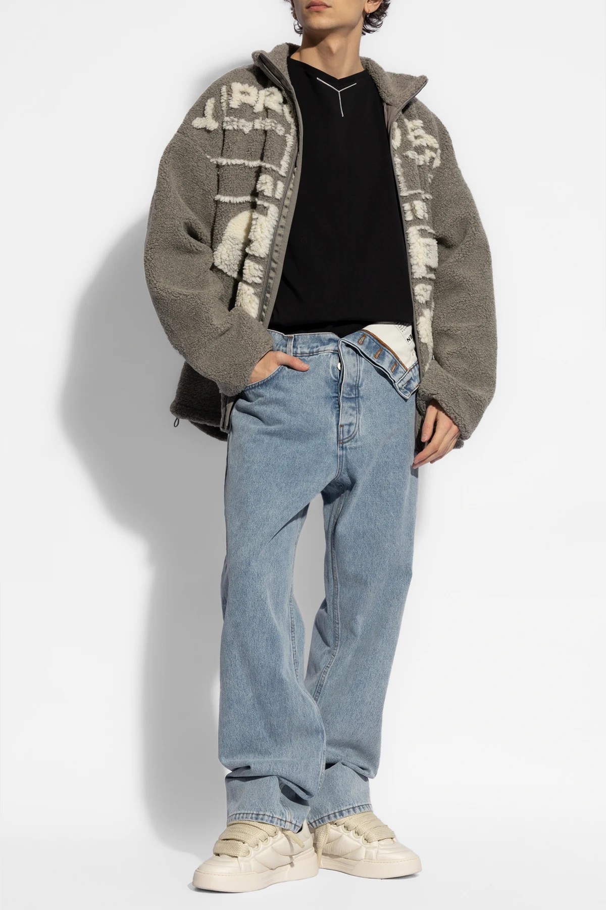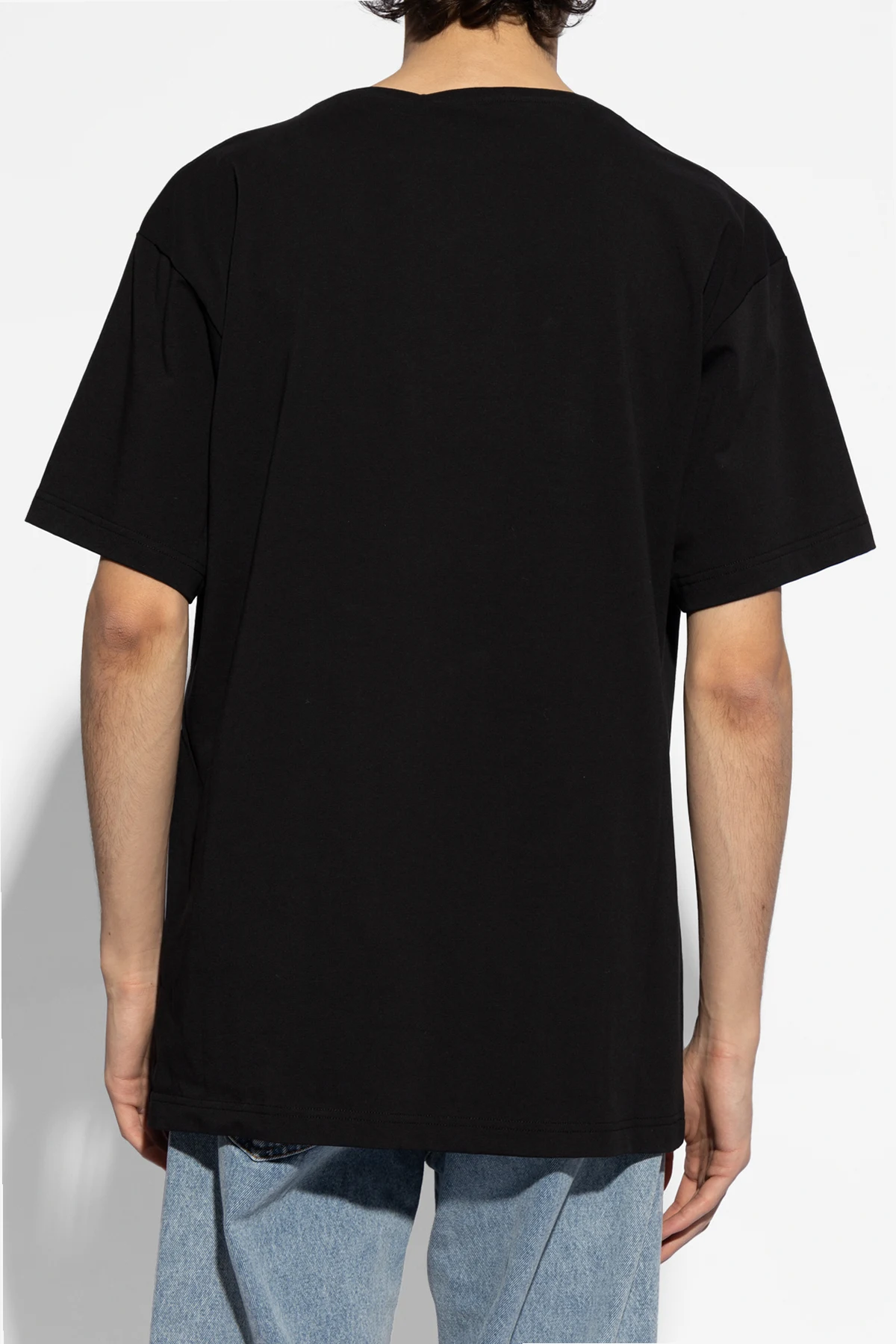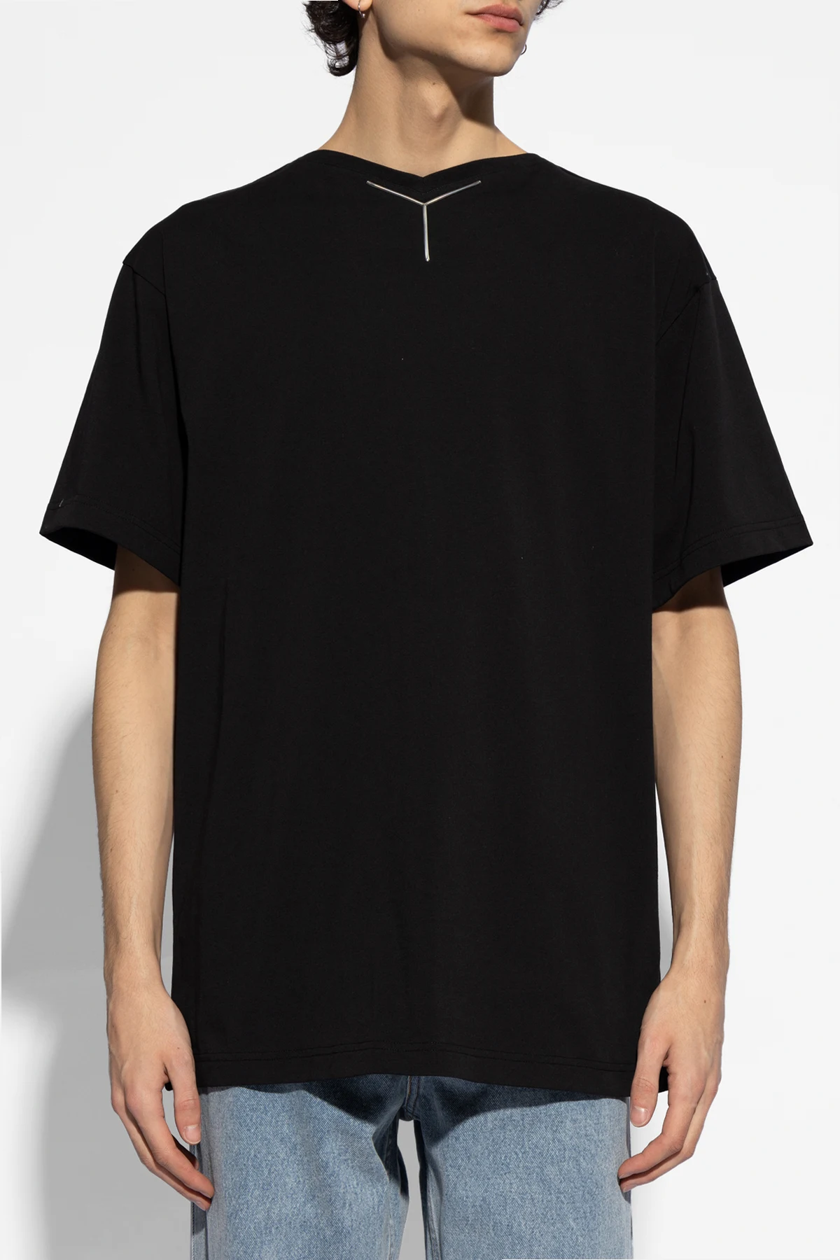 Black T-shirt from Y Project. Made from cotton with a relaxed fit, this style features short sleeves and an elasticated V-neckline accentuated with a silver-tone logo plaque.