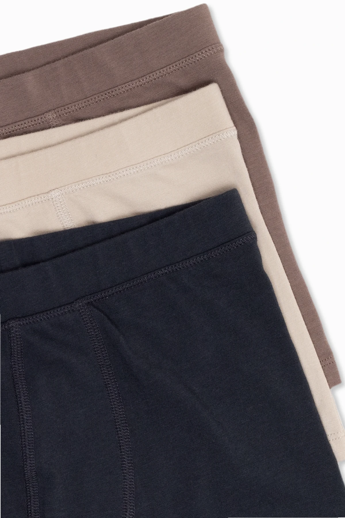 Black, beige and brown ‘Acal’ boxers three-pack from Bonpoint. Made of cotton, each pair features an elasticized waistband.