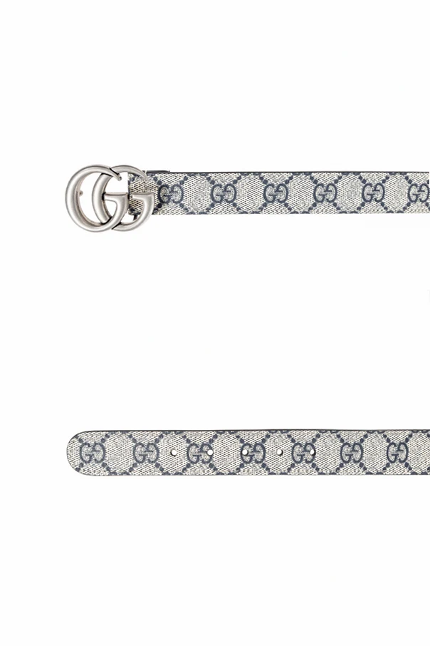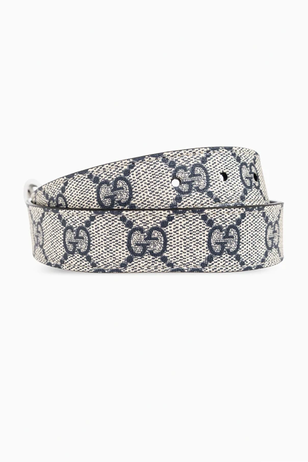 Elevate your child's wardrobe with the GG Supreme Canvas Belt from Gucci Kids, a harmonious blend of timeless design and contemporary sophistication. Crafted from luxurious canvas accented with leather and enhanced for durability, this belt is defined by its iconic repeating GG monogram motif in subtle dark gray and navy hues on a soft gray background. The classic silhouette is completed with an eye-catching, silver-tone metal buckle, sculpted into the recognizable double “GG” logo, instantly signifying the house’s distinguished heritage.