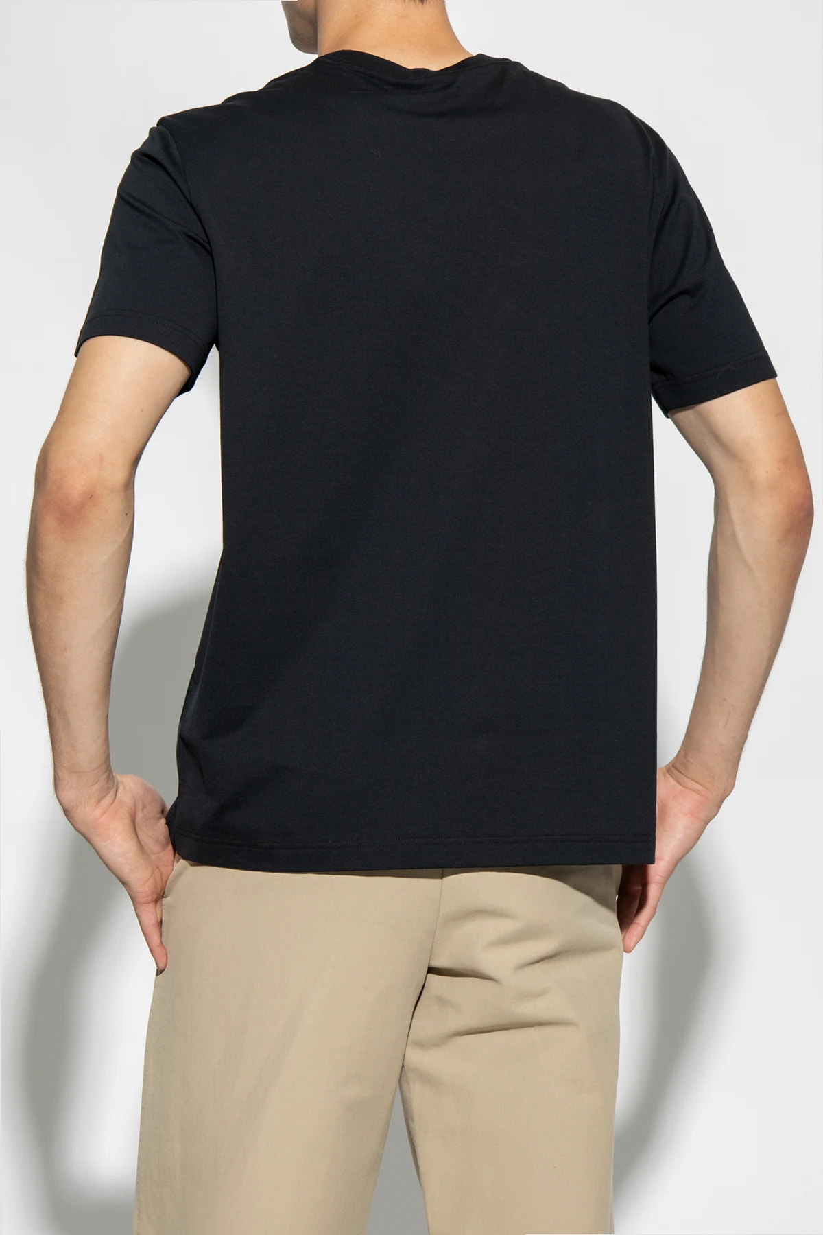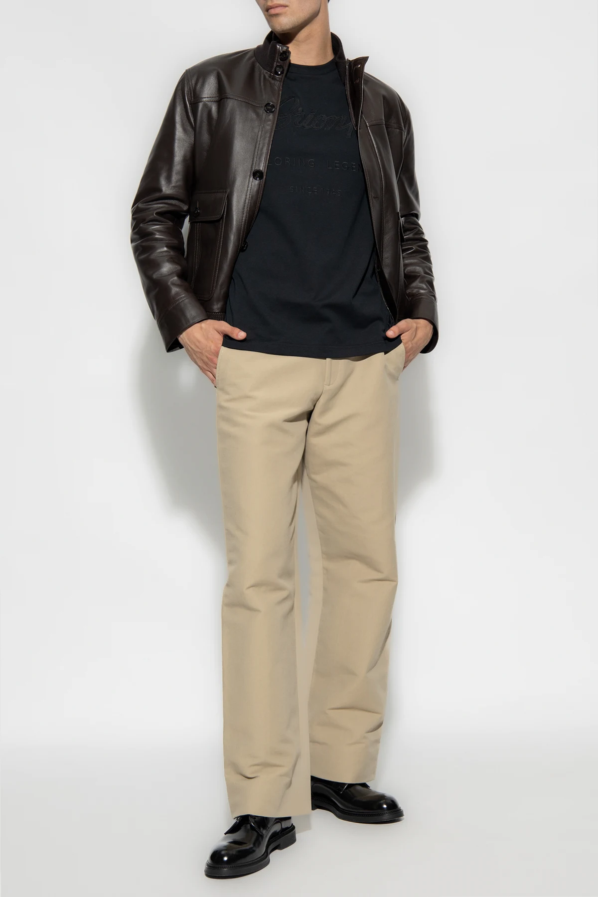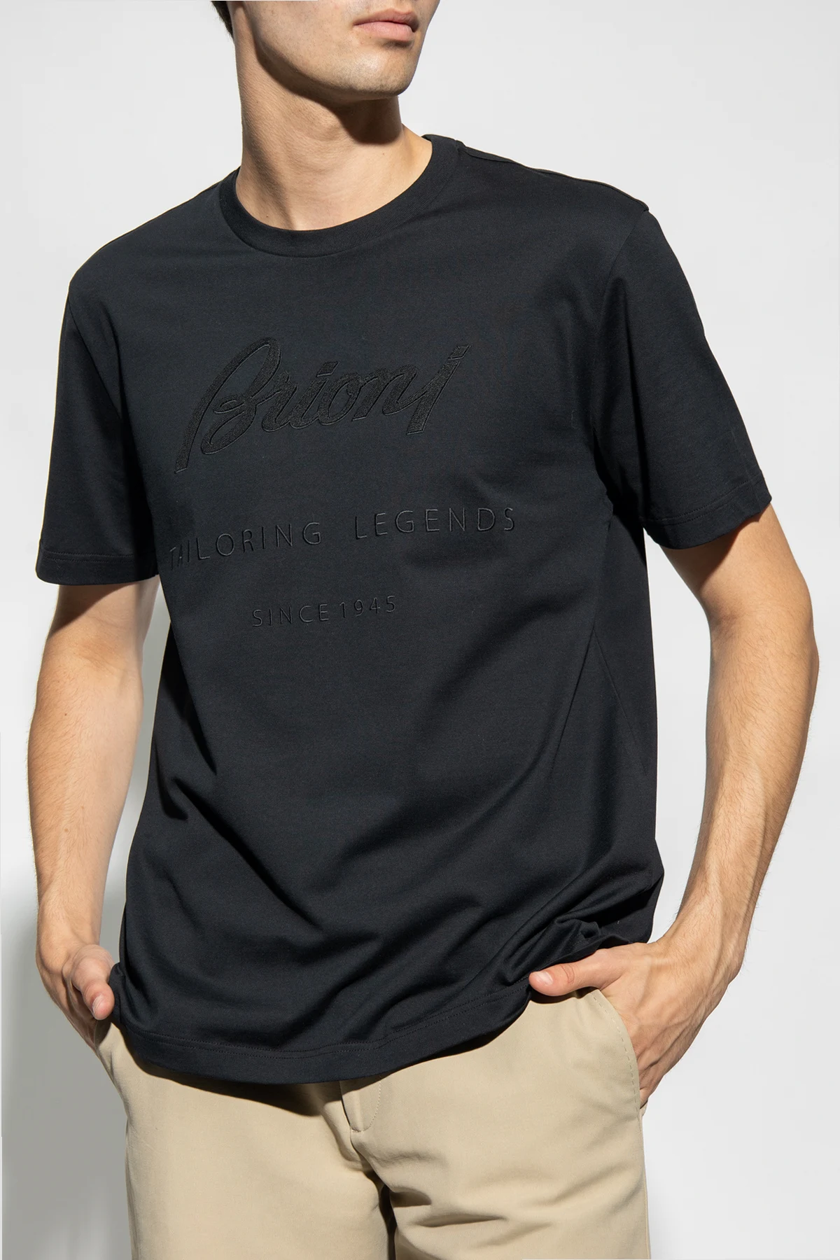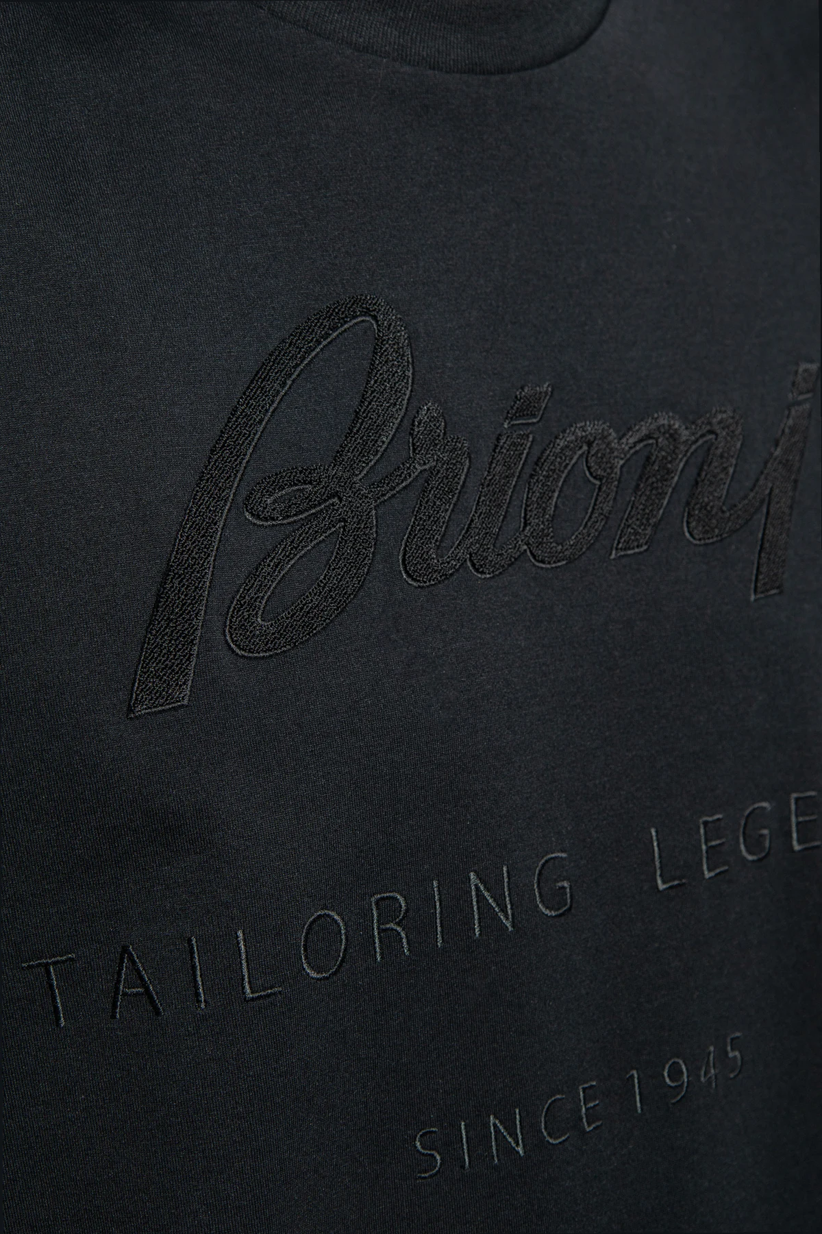 Black crewneck T-shirt from Brioni. Made from organic cotton, this style features short sleeves, ribbing on the collar and black logo embroidery on the front.
