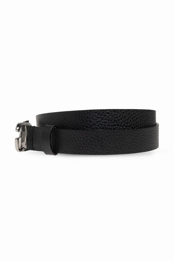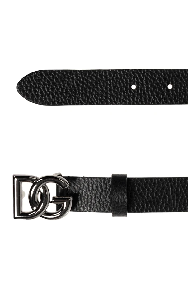 Distinguished by its polished, chrome-toned buckle, the bold DG logo embodies signature designer flair, serving as a refined yet striking focal point. Eschewing unnecessary embellishments, this accessory upholds pure elegance through its minimalist detail—a single leather loop seamlessly securing the end.