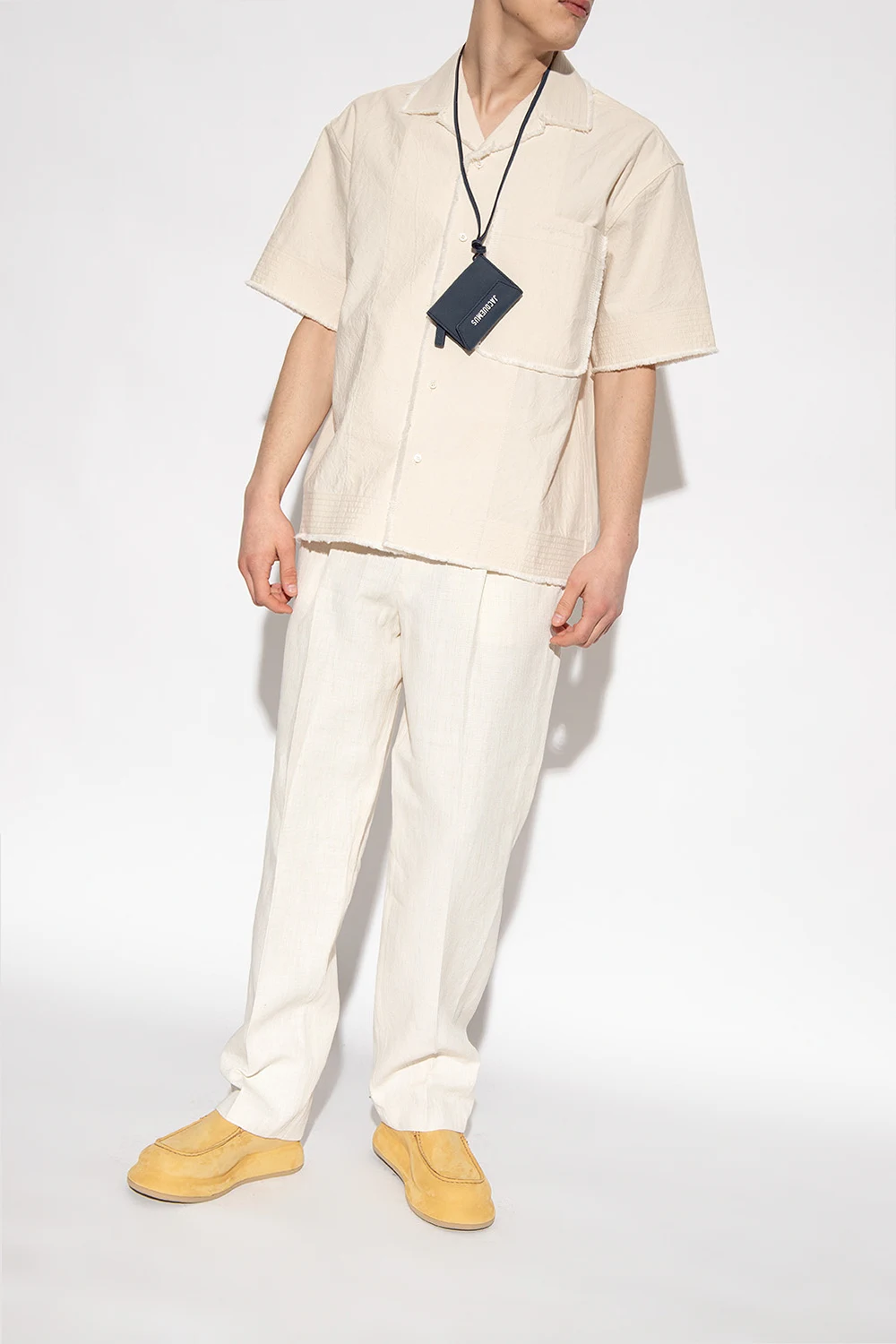 Yellow ‘Bricciola’ slip-on shoes from Jacquemus. Made of leather, this pair features stitching details, embossed logo and beige rubber sole.