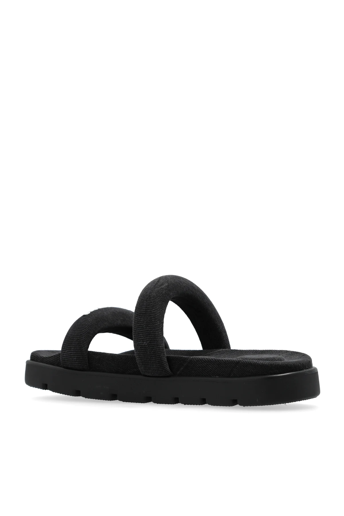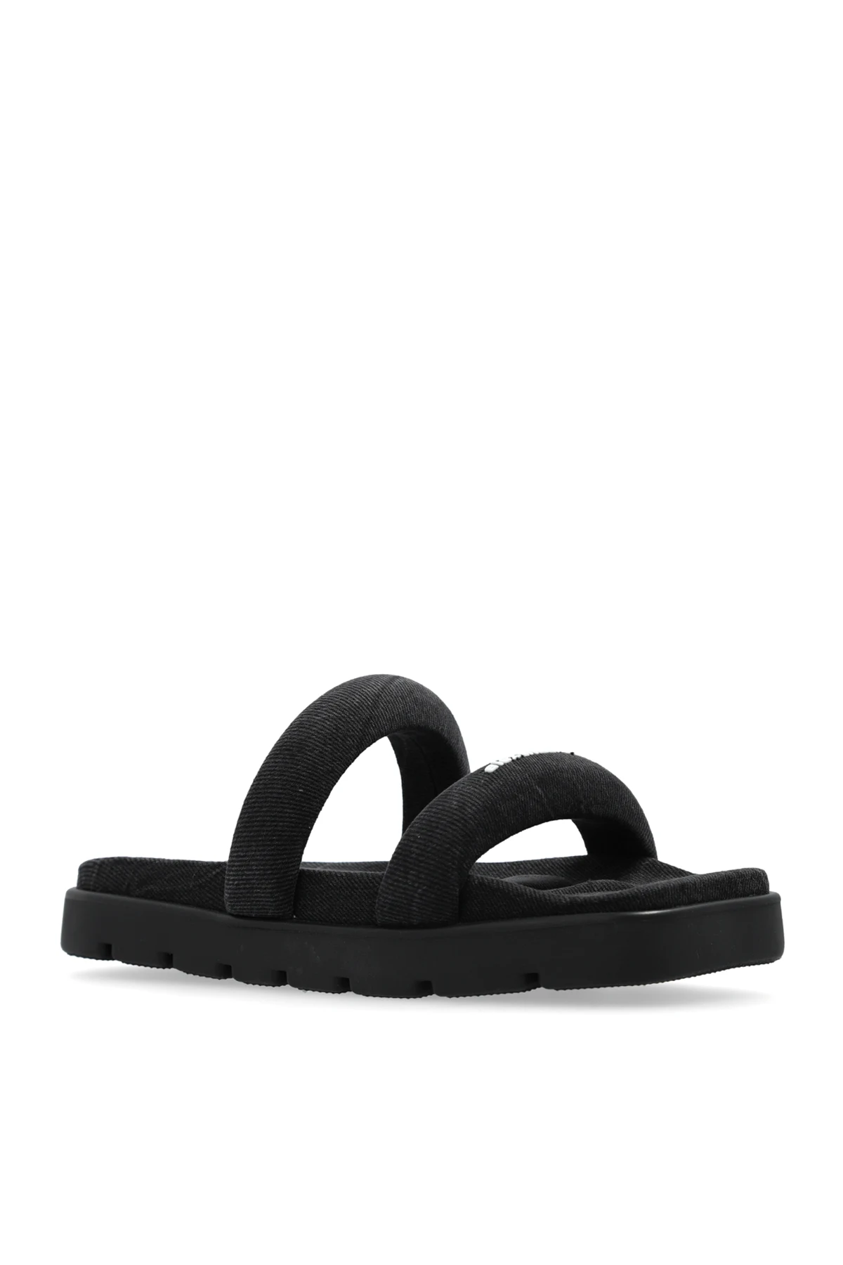 Experience the epitome of luxury with our exclusive collection of slides designed by the renowned Alexander Wang. The Klapki \'Ja\' merges elegance and comfort, making it a versatile choice for both everyday wear and formal occasions. Featuring a classic, rectangular sole shape with two wide straps, these slides provide excellent foot stability. The thick, robust sole adds a modern, substantial look to the design. Crafted from a textured material, likely fabric or leather, the straps and sole boast a uniform pattern that underscores a minimalist and sophisticated aesthetic. The deep black color ensures versatility, easily complementing various outfits. A standout feature is the \"alexanderwang\" inscription in contrasting white on one of the straps, offering a clear and stylish brand identification. The anti-slip sole and the soft, cushioned interior further enhance comfort and stability during wear. Why Buy This Product? Elegant and Comfortable: Perfect for daily wear and formal events. Brand Recognition: Clear Alexander Wang branding for a touch of luxury. Superior Stability: Thick, anti-slip sole ensures secure footing. Minimalist Design: Textured, uniform pattern in a versatile deep black color. Soft Interior: Cushioned material for enhanced comfort.