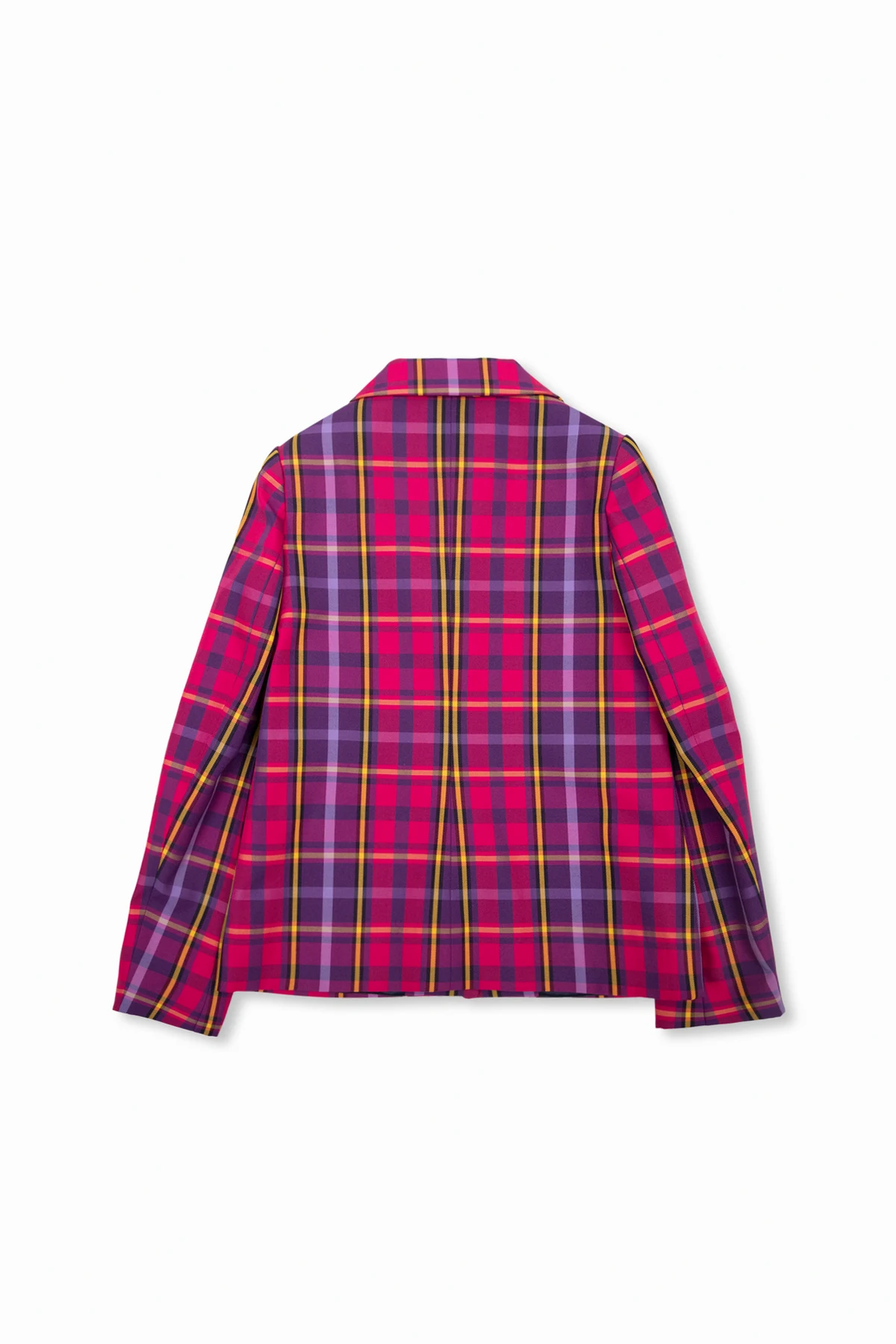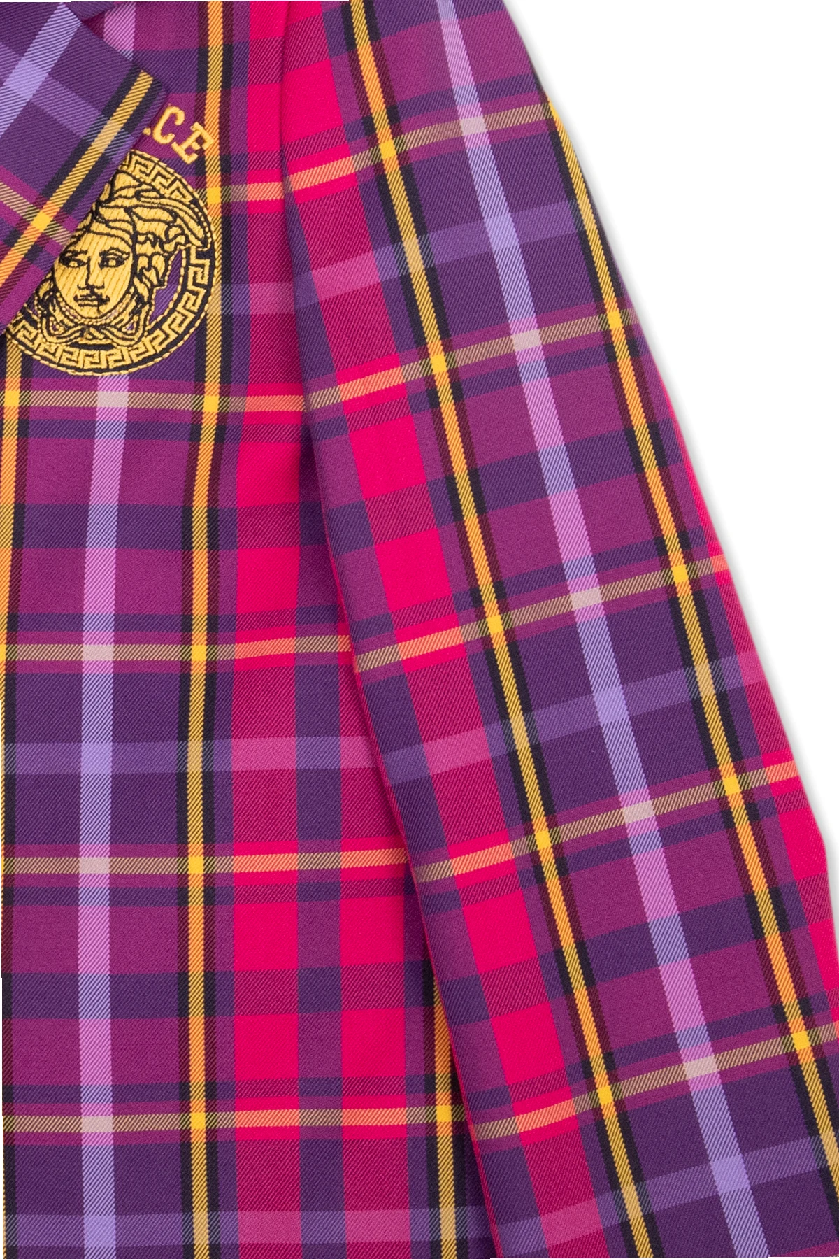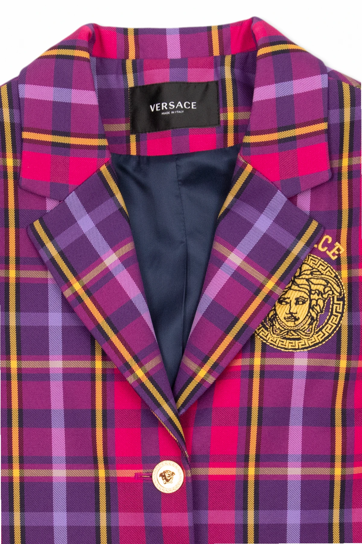 Multicoloured blazer from Versace Kids. Embellished with a check pattern, this style features an embroidered logo, long sleeves, notch lapels and gold-tone buttons with the brand\'s signature Medusa face and Greca motifs.