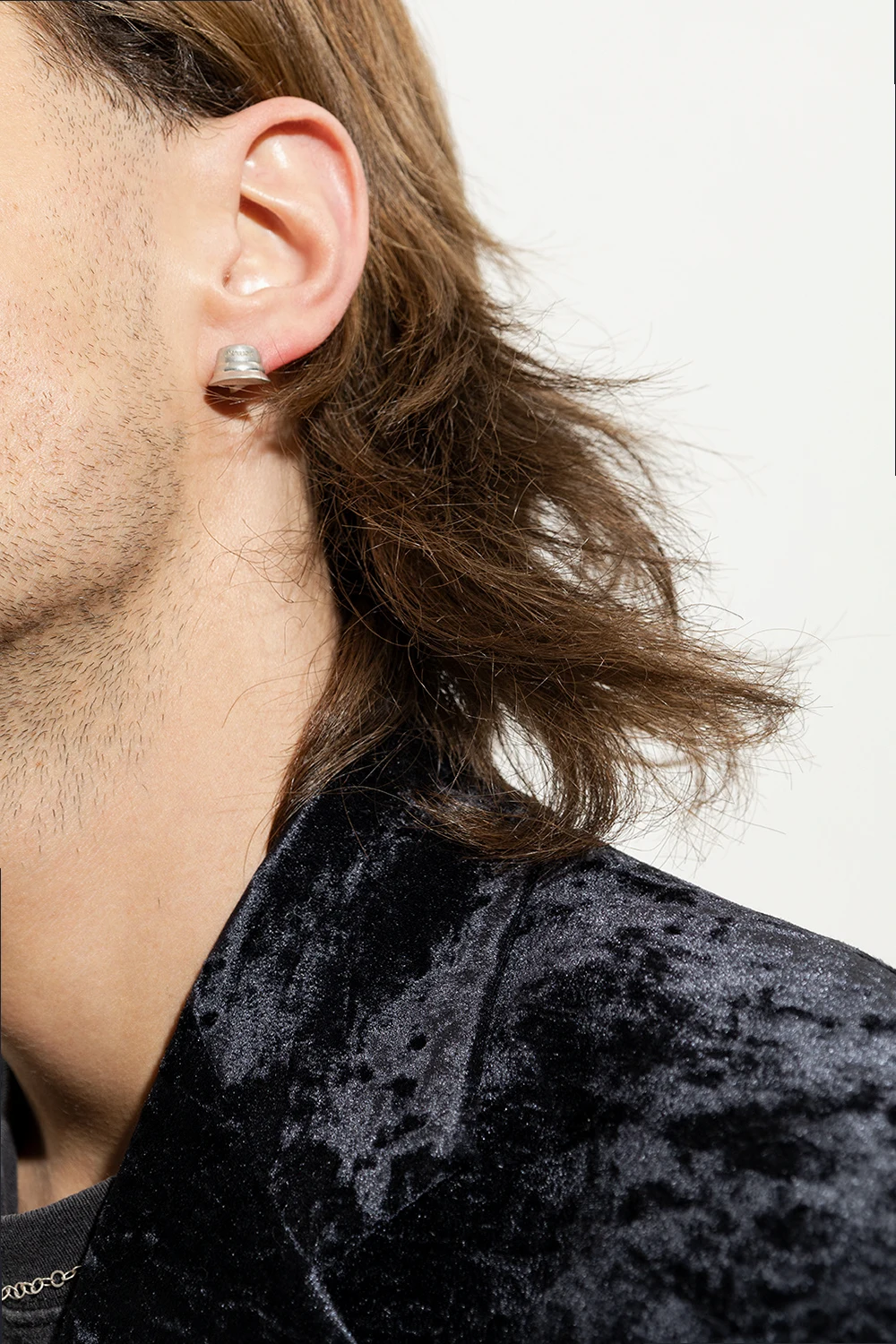 Silver-tone ‘Le Bob’ mono earring from Jacquemus. Made from brass, this item secures with a push back closure and features a logo-engraved hat appliqué.