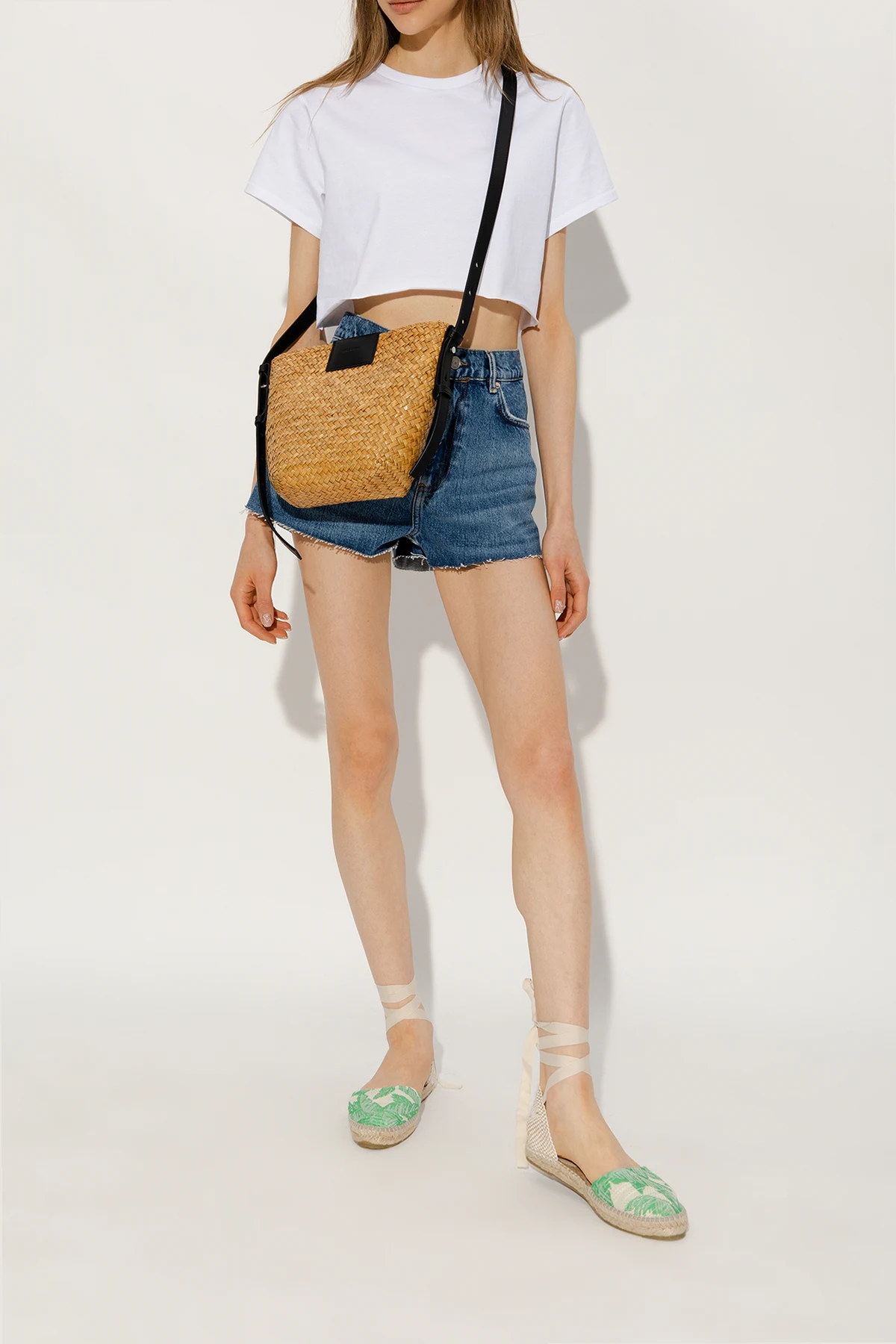 Green and cream jacquard espadrilles from Manebi. Crafted from fabric, this pair features a floral pattern and beige rubber sole.