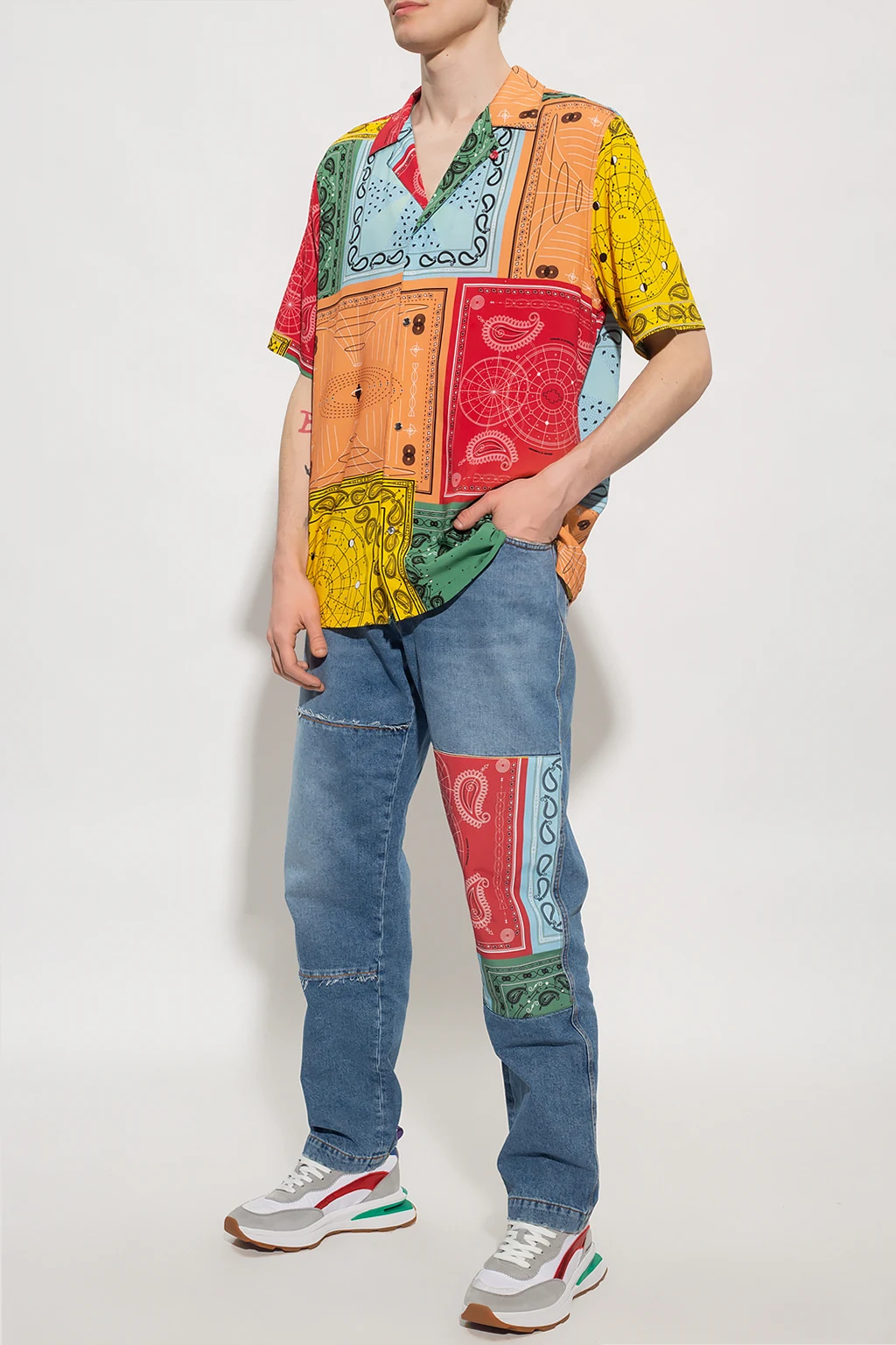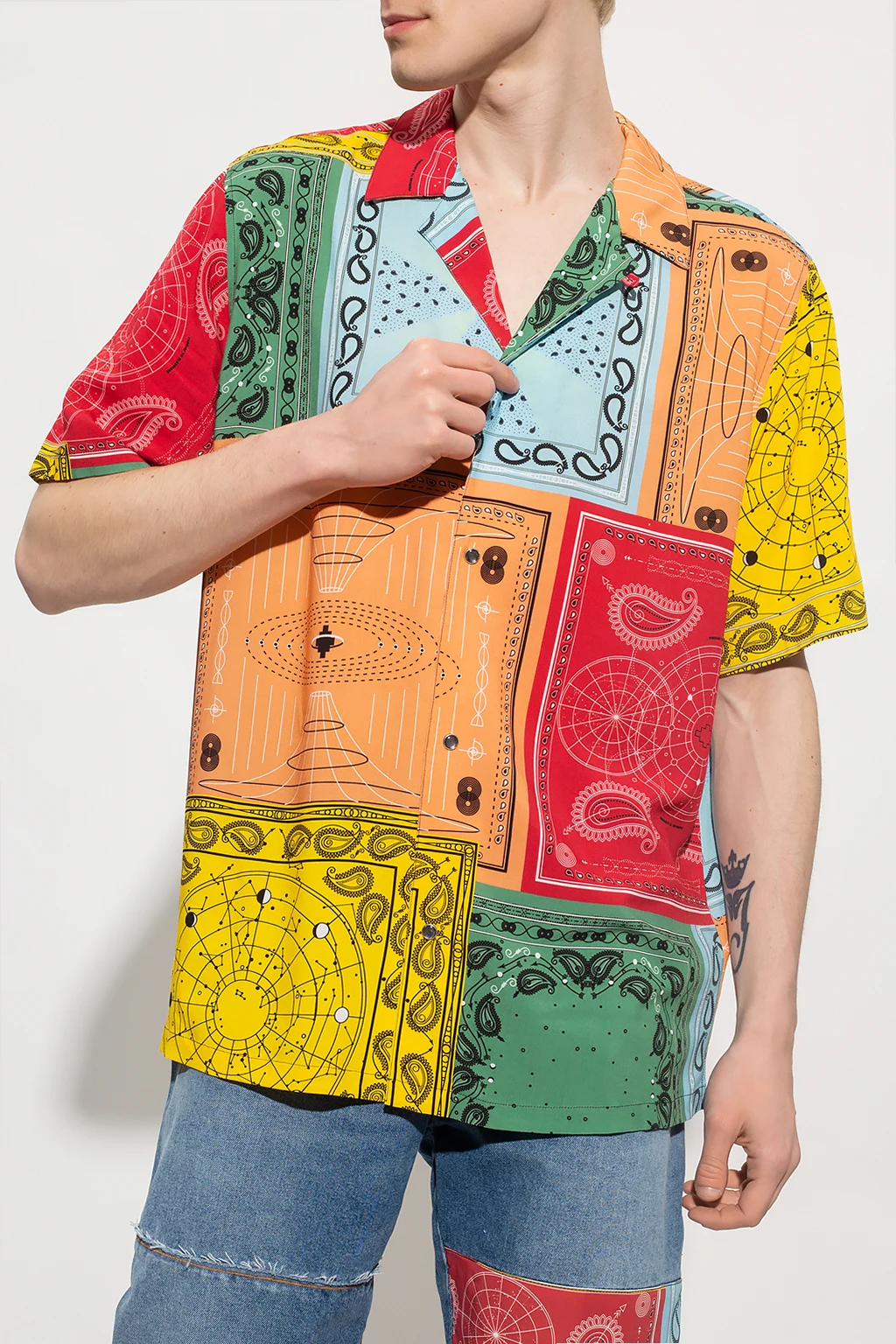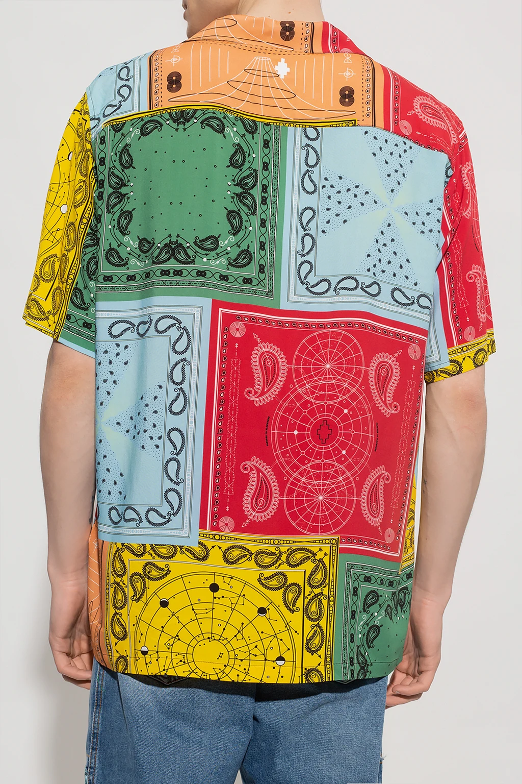 Multicoloured shirt from Marcelo Burlon. Embellished with a colourful graphic print, this style features snap closures, short sleeves and side slits.