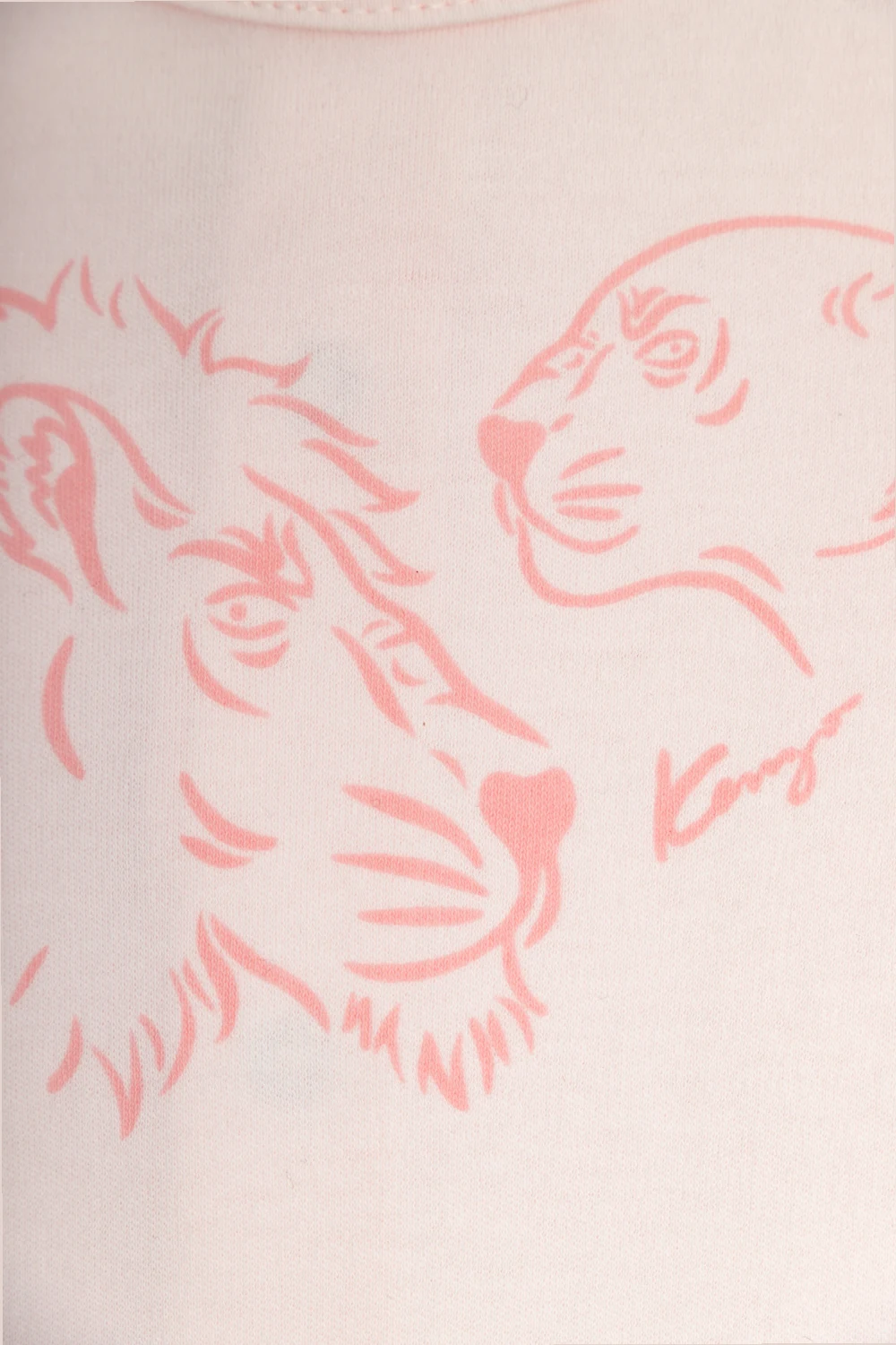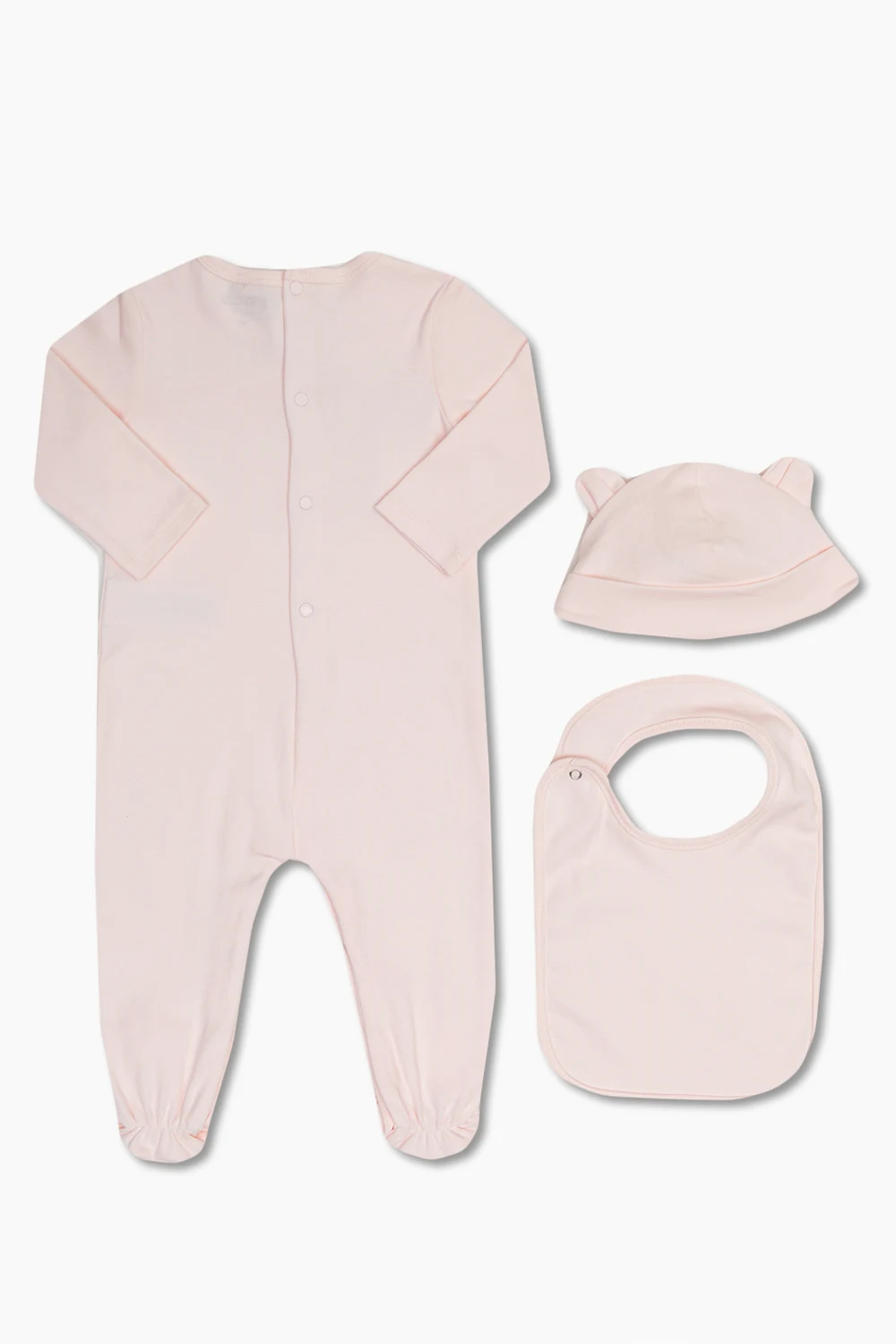 Light pink set including a romper, beanie and bib from Kenzo Kids. Crafted from organic cotton from sustainable farms. This set includes a snap-fastened romper with an animal motif, beanie with ears and a logo print as well as a bib with a logo and snap fastening.