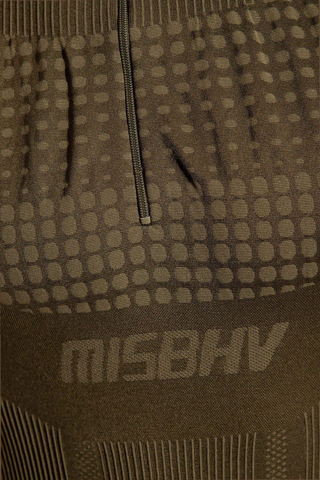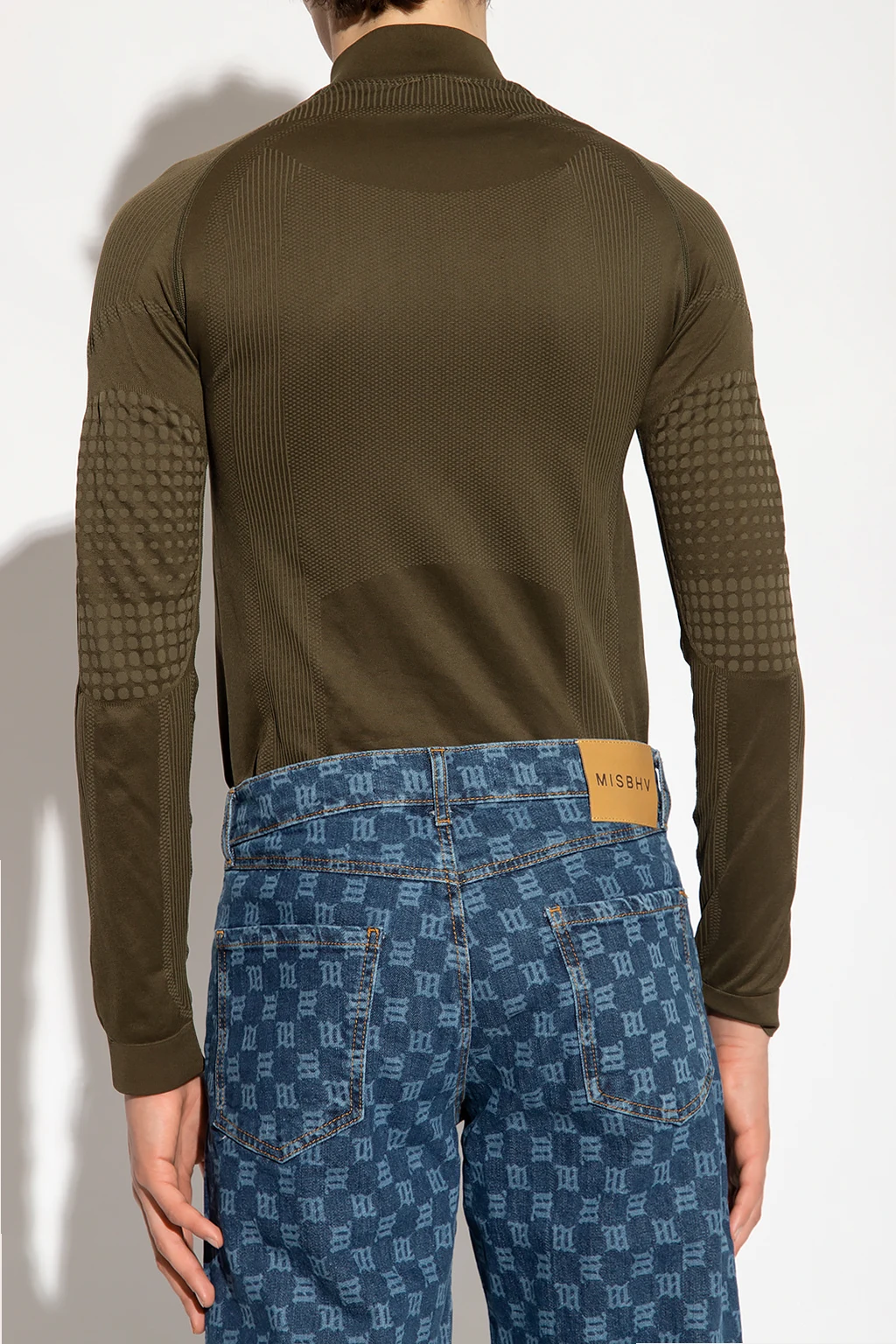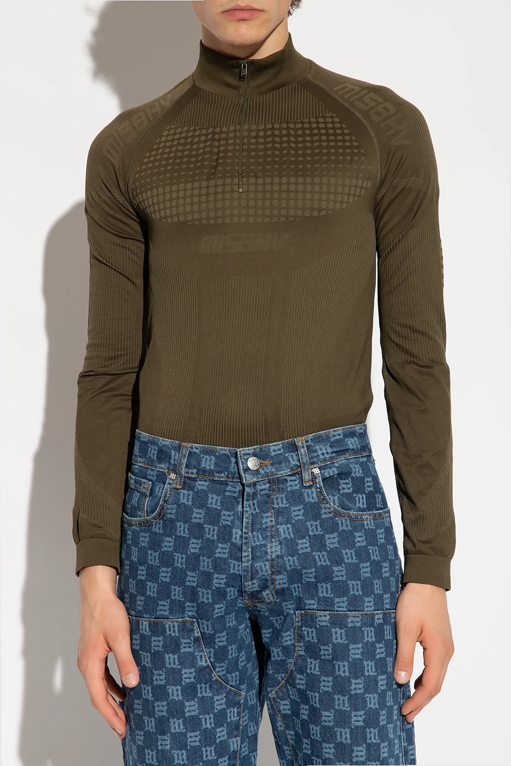 Khaki top from MISBHV, the ‘Sport’ collection. This fitted design features a high neck with a zip, logo detail and long sleeves.