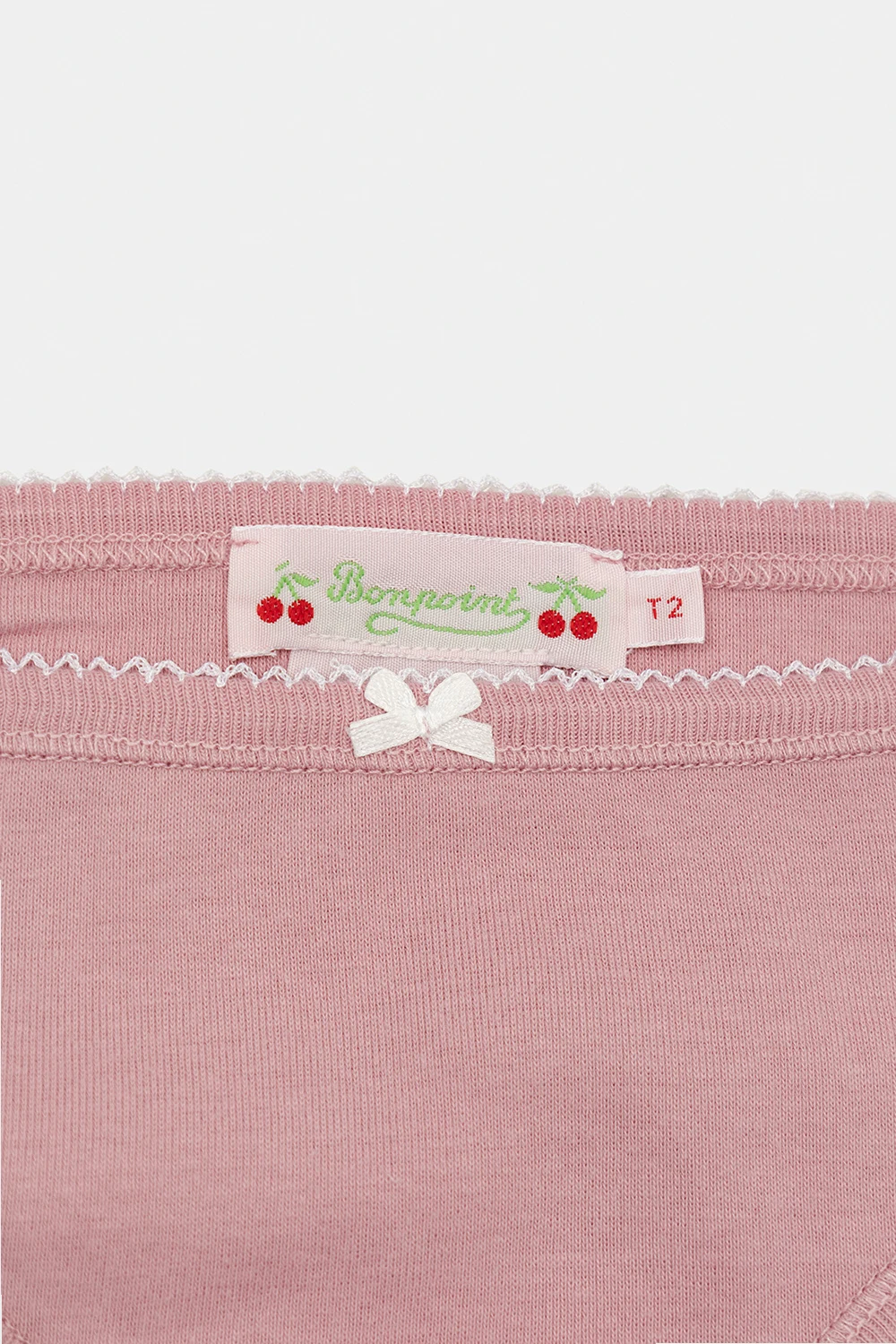 3-pack of briefs in purple, pink and white from Bonpoint. Made of cotton, each pair features decorative trims and bow on the front.