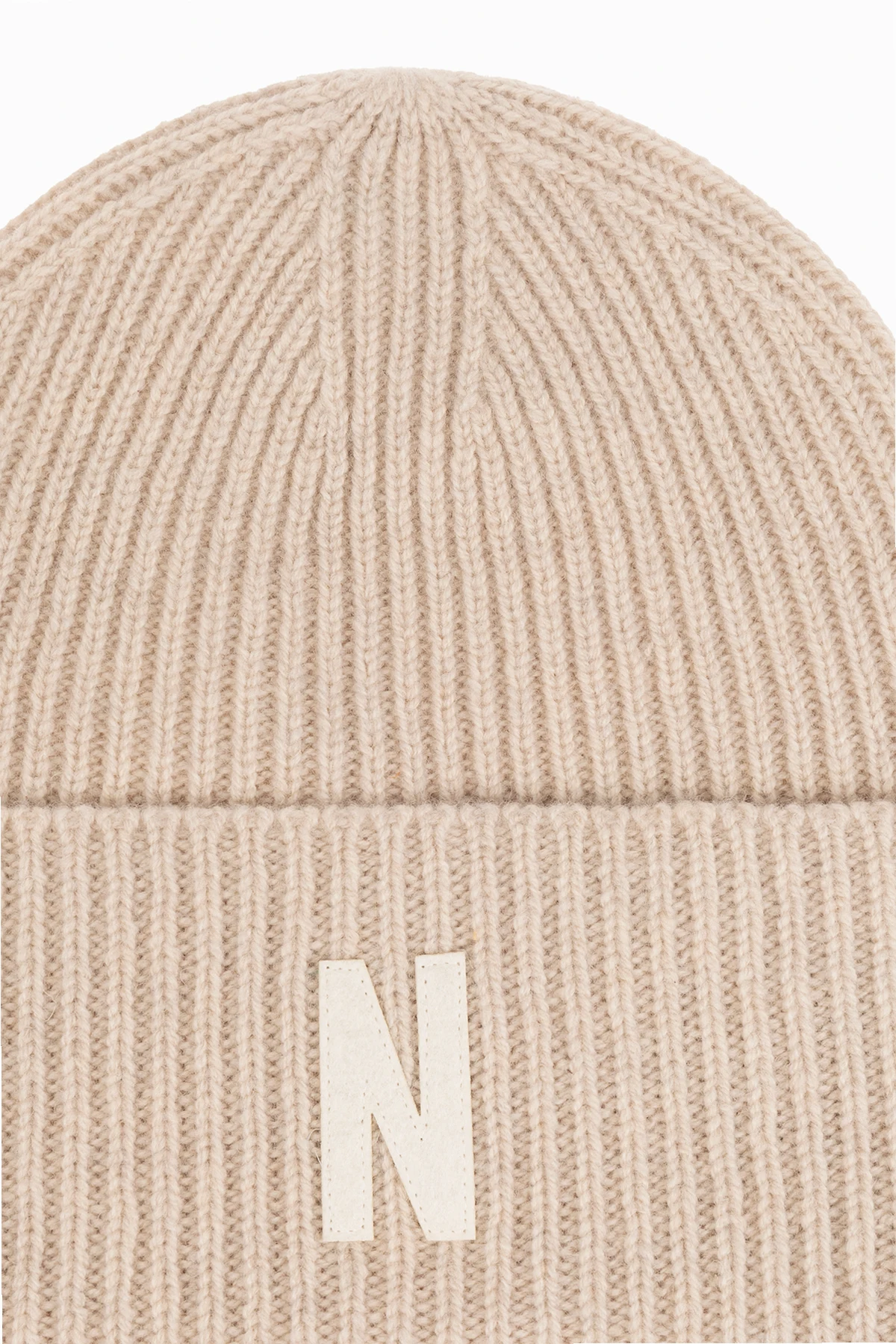 Discover the epitome of sophistication with the Norse Projects Woolen Beanie with Logo. Crafted from the finest 100% wool, this beanie offers unparalleled warmth and comfort, making it an essential accessory for the discerning individual. Its classic, round silhouette is accentuated by a distinctive vertical ribbed pattern, adding texture and visual interest to any ensemble. The beanie\'s minimalist design is elegantly disrupted by the bold, contrasting letter \"N\" adorning the front. This signature detail not only identifies the esteemed Norse Projects brand but also injects a touch of exclusivity into the piece. The wide, ribbed cuff ensures a snug fit, adapting seamlessly to the contours of your head for superior comfort. Presented in a versatile beige hue, this woolen beanie remains devoid of external tags, seams, or embellishments, preserving its sleek, understated aesthetic. Whether showcased on a model or standing alone, its elegant simplicity and quality craftsmanship shine through. Why Purchase This Product? Exquisite Material: 100% wool composition offers warmth and softness. Iconic Design: The pronounced \"N\" logo signifies the Norse Projects brand, adding a layer of distinction. Adaptable Fit: The flexible ribbed cuff ensures a comfortable, custom fit. Minimalist Elegance: Its clean, embellishment-free design makes it a versatile addition to any wardrobe.