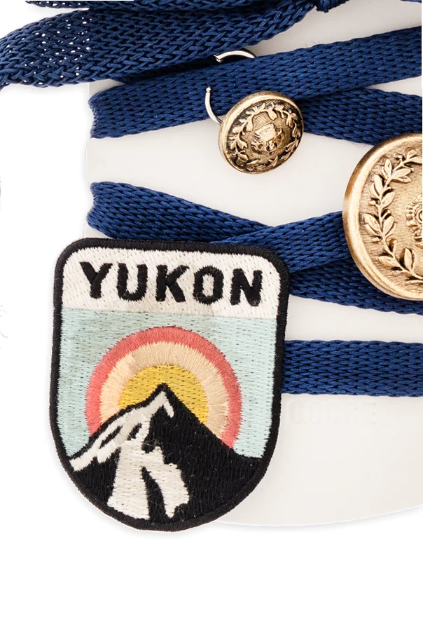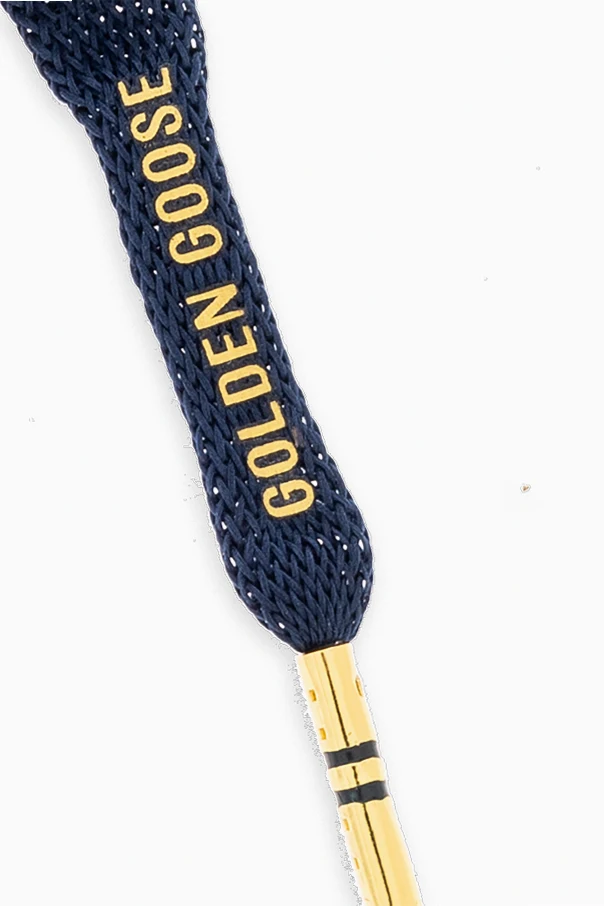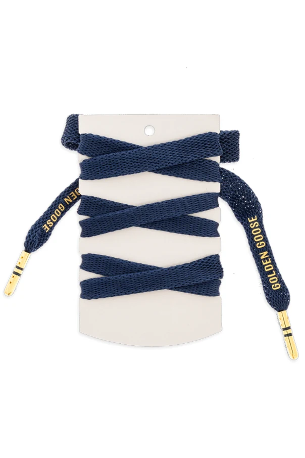 Discover the understated elegance of these Golden Goose Navy Blue Shoelaces with Applications . Meticulously crafted for both men and women, these sophisticated laces blend a classic round silhouette with a subtly flattened weave, epitomizing refined urban style. Rendered in a deep, solid navy and fashioned from resilient premium-textile polyester , they promise durability while exuding contemporary charm. Distinctive gold metal aglets and bold GOLDEN GOOSE branding elevate each lace tip, infusing a touch of exclusivity. A finely embroidered YUKON patch , featuring evocative mountain and sunrise motifs, adorns the length alongside two artisan metal pins for an avant-garde accent. This unique assemblage pays homage to the brand’s artisanal legacy—a celebration of nostalgia and bold individuality. Why choose this product? High-quality, resilient polyester construction Signature golden branding and metal aglets for a polished finish Exclusive YUKON embroidered patch and decorative metal pins Unisex and versatile—perfect for elevating your favorite pair of sneakers Celebrates Golden Goose’s iconic fusion of craftsmanship and urban edge