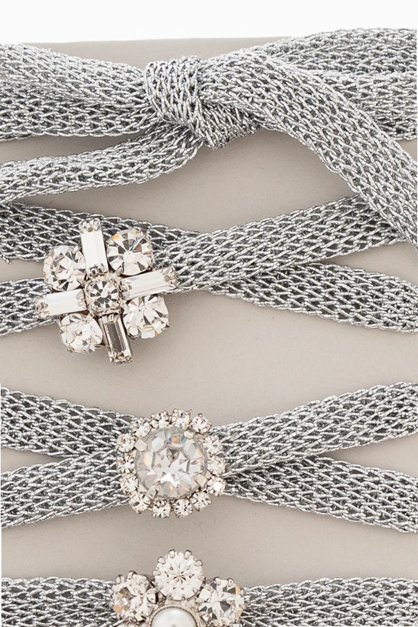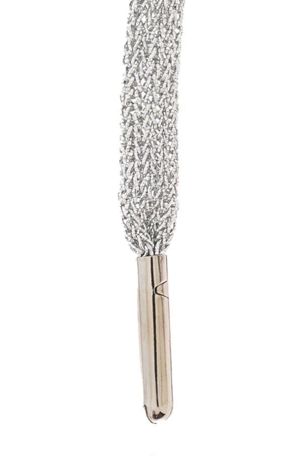 Experience refined opulence with the Golden Goose Crystal Embellished Shoelaces , designed to redefine sophistication in every detail. Crafted from lustrous, braided polyester threads interwoven with silver metallic fibers, these cylindrical shoelaces boast a captivating, mesh-like pattern that reflects light from every angle. Adorned with three exquisite crystal motifs reminiscent of jeweled blossoms or rosettes, each shoelace transcends mere function to become a statement of elevated style. Polished, silver-toned metal aglets ensure durability while seamlessly complementing the shimmering silhouette. Carefully selected glass crystals and brass accents add an extraordinary touch, echoing the iconic Golden Goose commitment to craftsmanship and character. Why choose this product? Impeccable fusion of Italian artistry and modern elegance Striking crystal embellishments for a unique, jewelry-inspired finish Premium, metallic braided construction for enhanced resilience Signature Golden Goose vintage charm and contemporary allure Perfect for transforming any look with a hint of luminous sophistication
