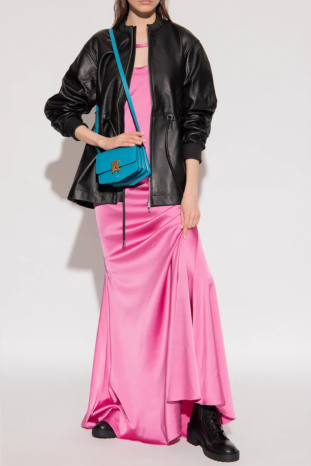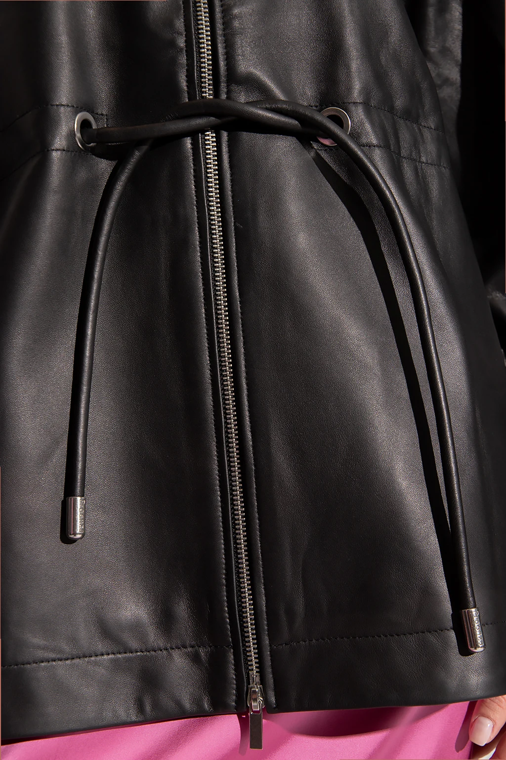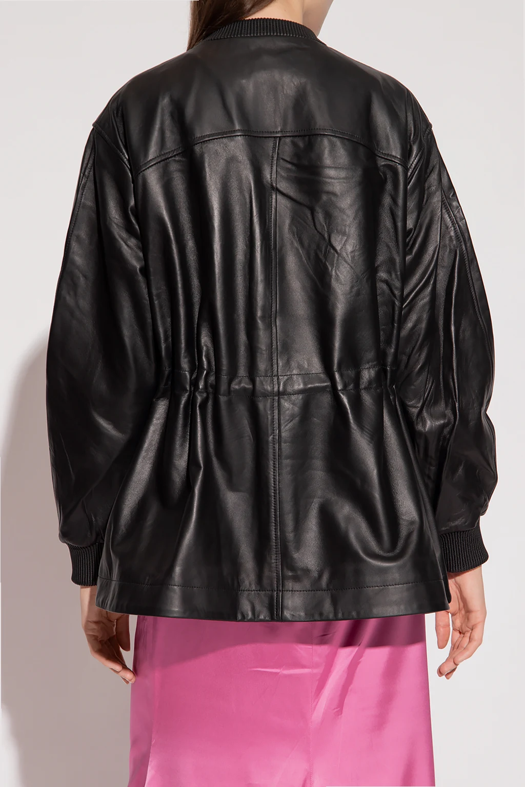 Black jacket from Proenza Schouler White Label. Crafted from lamb leather, this style features a zip fastening, a waist-cinching drawstring belt, two slip pockets and elasticized trims on the collar, bottom hem and cuffs.