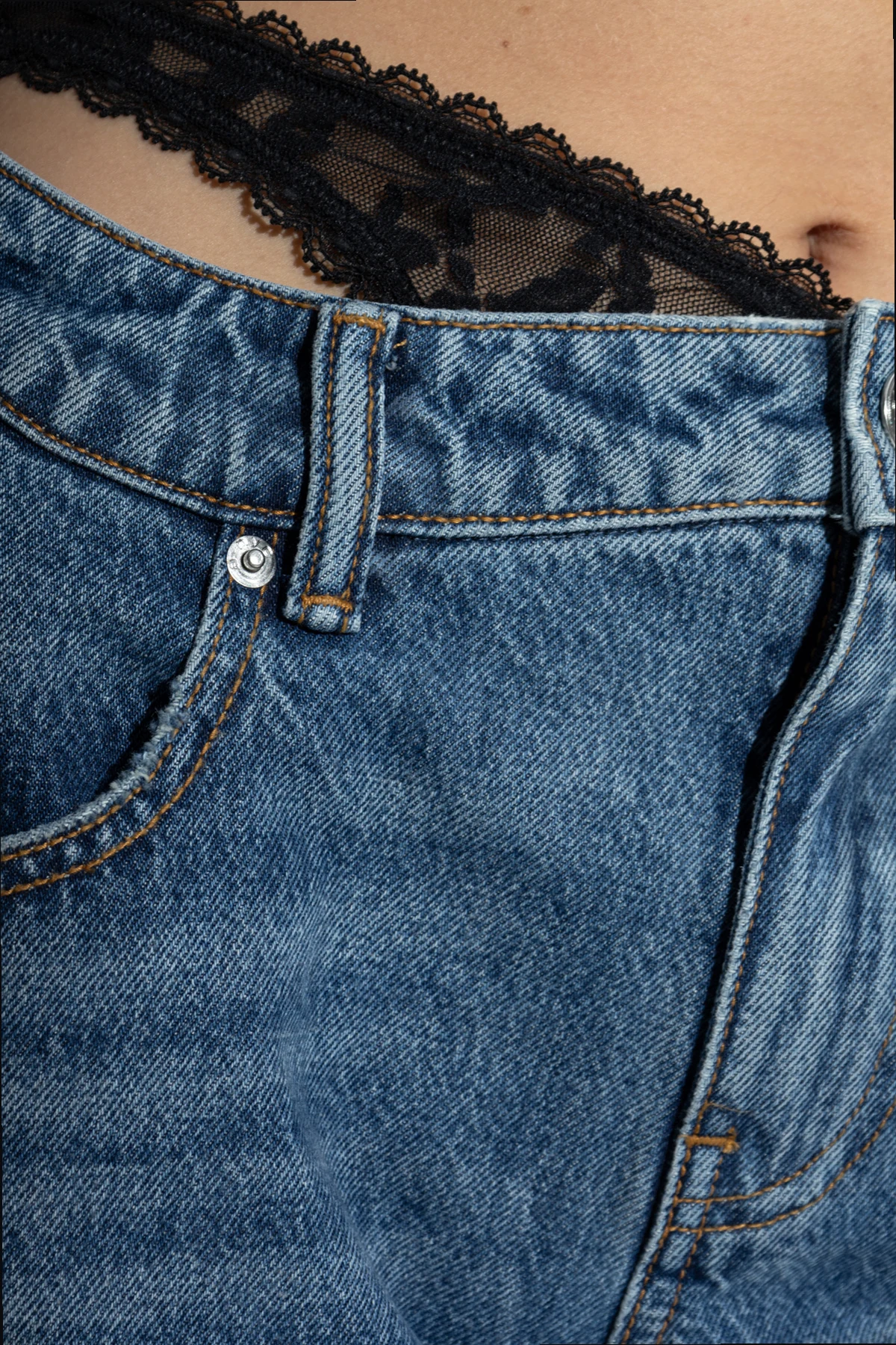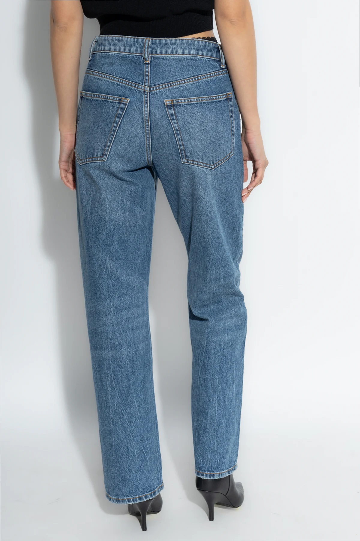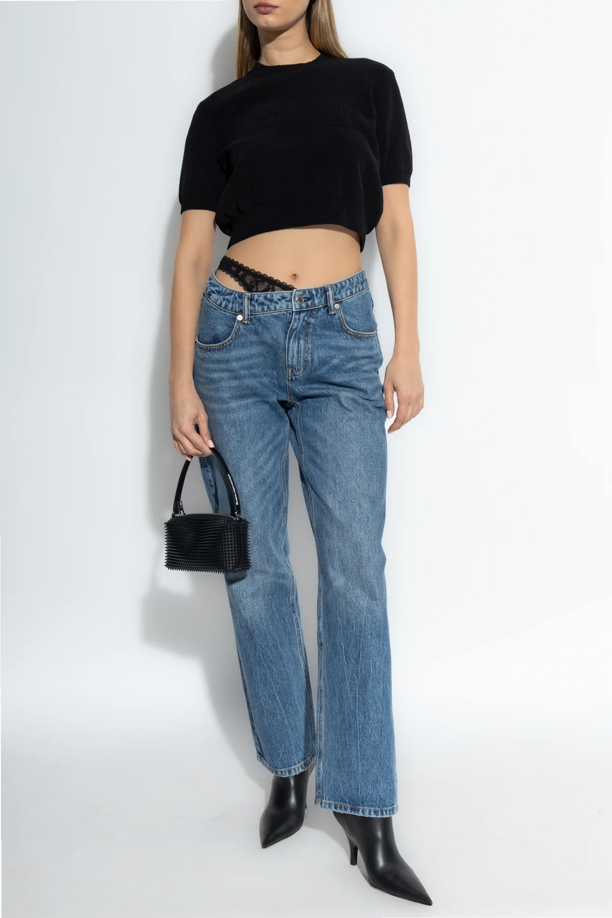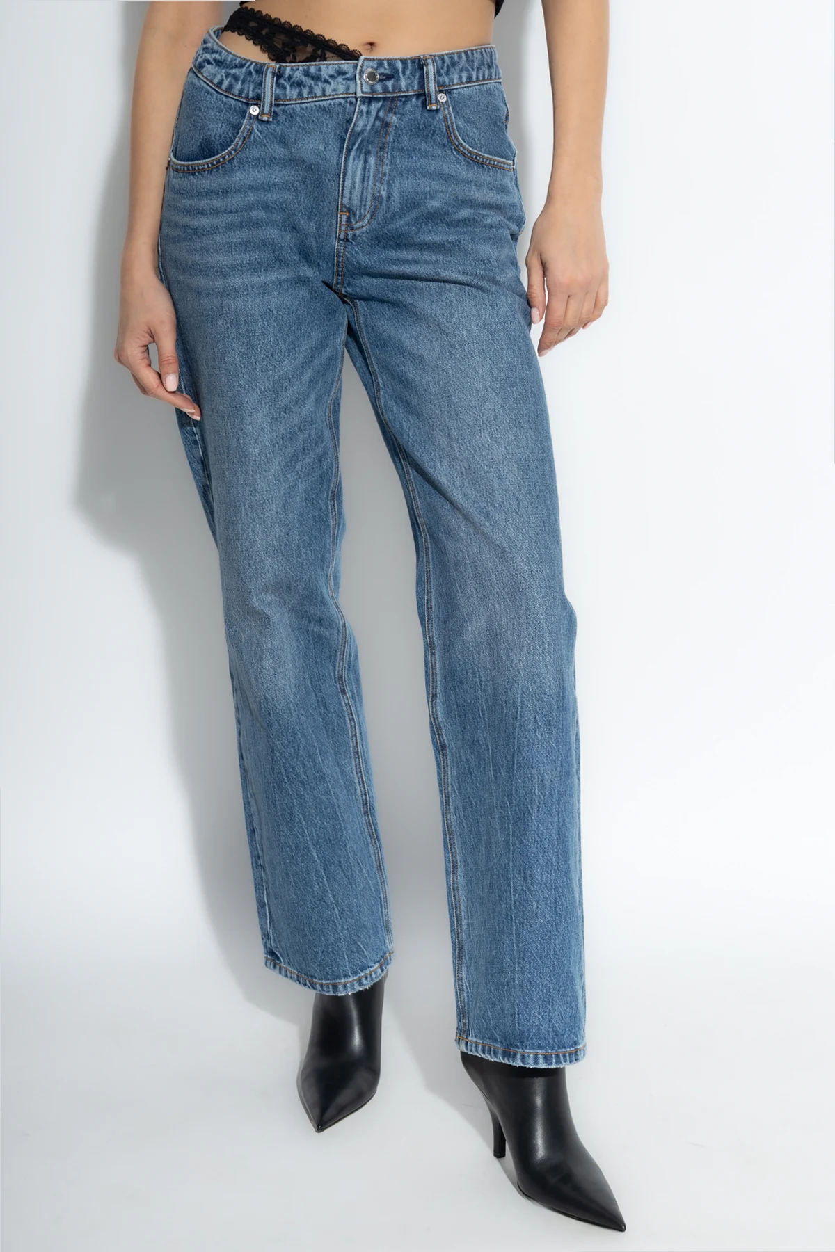 Introducing the Decorative Trim Jeans by the illustrious Alexander Wang, a testament to timeless elegance infused with a modern twist. Crafted from premium denim, these exquisite jeans boast a rich blue hue and a regular, straight cut that exudes sophistication. The jeans feature a distinctive decorative lace trim extending above the waistline, adding an unparalleled touch of uniqueness. Meticulously designed with contrast orange stitching, they embody a classic style while maintaining a contemporary edge. Embrace functionality with the five-pocket layout, ensuring both style and practicality. Fastened with a zip and button closure, these jeans offer comfort and ease of wear, making them an essential addition to the fashion-forward wardrobe. Why Choose This Product? Designed by the renowned Alexander Wang, known for his avant-garde yet classic approach. Exquisite decorative lace detailing for a unique fashion statement. Classic five-pocket design for optimal utility and style. Contrast stitching enhances the jeans\' elegant aesthetic.
