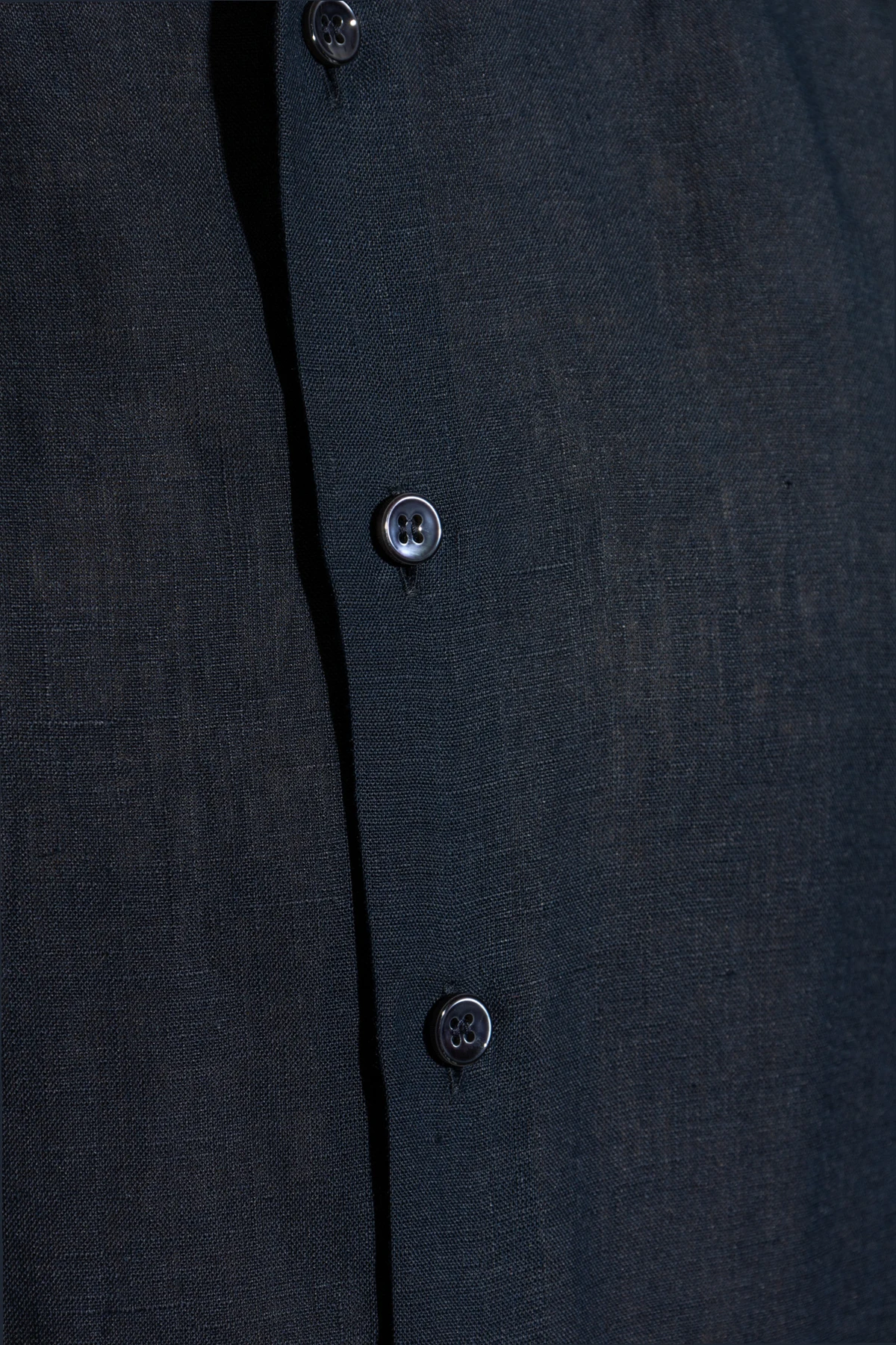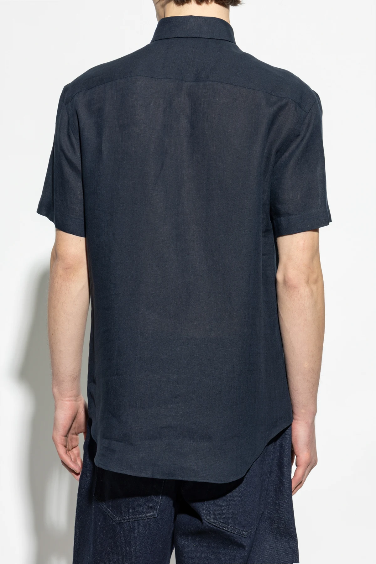 Experience the epitome of understated elegance with our Navy Linen Short Sleeve Shirt from the illustrious Giorgio Armani. Crafted with meticulous attention to detail, this garment exudes a timeless casual sophistication, making it an essential addition to any discerning wardrobe. The shirt, fashioned from premium linen, offers a breathable and lightweight texture, perfect for warmer climates. Its classic design features a button-down front and a simple collar, ensuring a versatile yet refined appearance. With its minimalist aesthetic, devoid of any superfluous logos or embellishments, this shirt embodies a modern elegance that is both subtle and striking. Why Choose This Product? Superior Linen Fabric: Ensures comfort and breathability. Classic Design: Versatile for both casual and sophisticated settings. Renowned Designer: Created by Giorgio Armani, a beacon of luxury fashion. Minimalist Aesthetic: Clean lines for a timeless look.