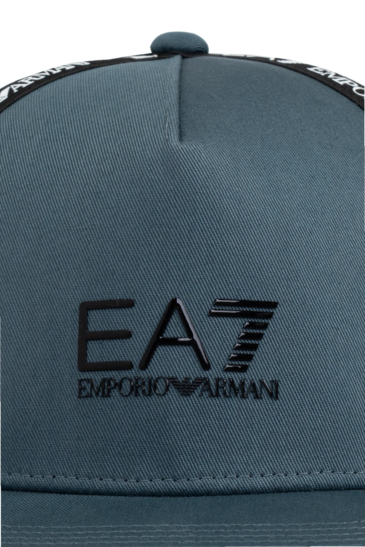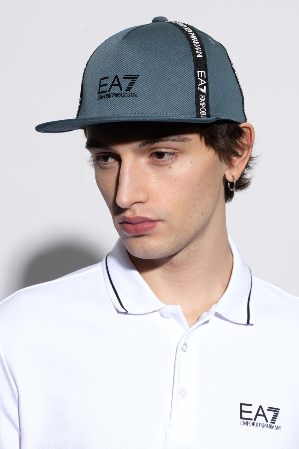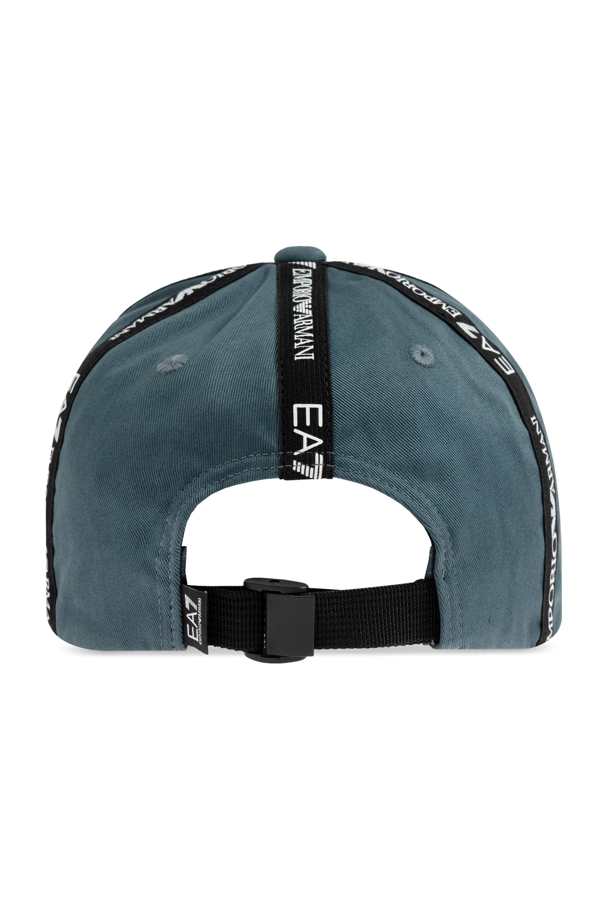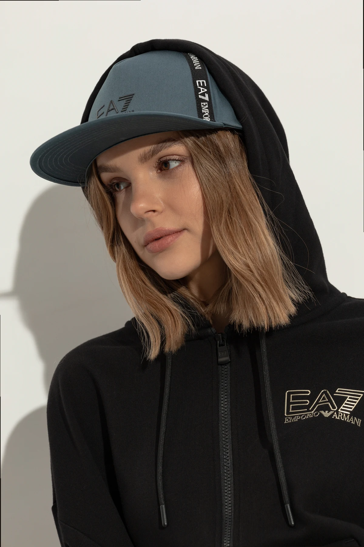 Presenting the EA7 Emporio Armani Cap, a paragon of style and sophistication. This distinguished accessory showcases a dominant gray hue accentuated by the bold, black EA7 Emporio Armani logo prominently positioned at the front. The cap\'s aesthetic is further enhanced by elegant black stripes adorned with a white logo running along the side panels and crown, epitomizing modern elegance. Crafted from smooth-textured 100% cotton, this cap not only offers a luxurious feel but also ensures unparalleled comfort. Its adjustable back strap allows for a bespoke fit, catering to individual preferences. The subtle green-gray tint adds a unique touch, making it an indispensable item for aficionados of high-fashion accessories. Why choose this product? Exquisite design from the renowned EA7 Emporio Armani collection. Luxurious and comfortable 100% cotton material. Adjustable strap for a personalized fit. Iconic brand logos and detailing for a sophisticated look.