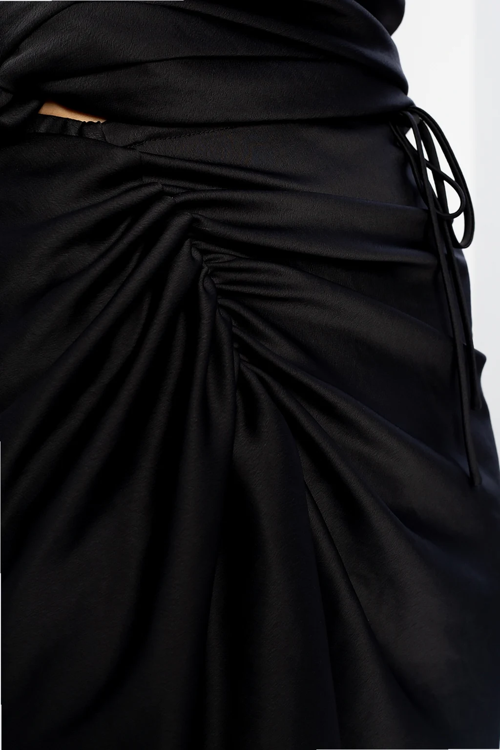 Black skirt from Alexander Wang. Fastened with drawstrings, this asymmetrical design is enriched by gathers and lace trims.