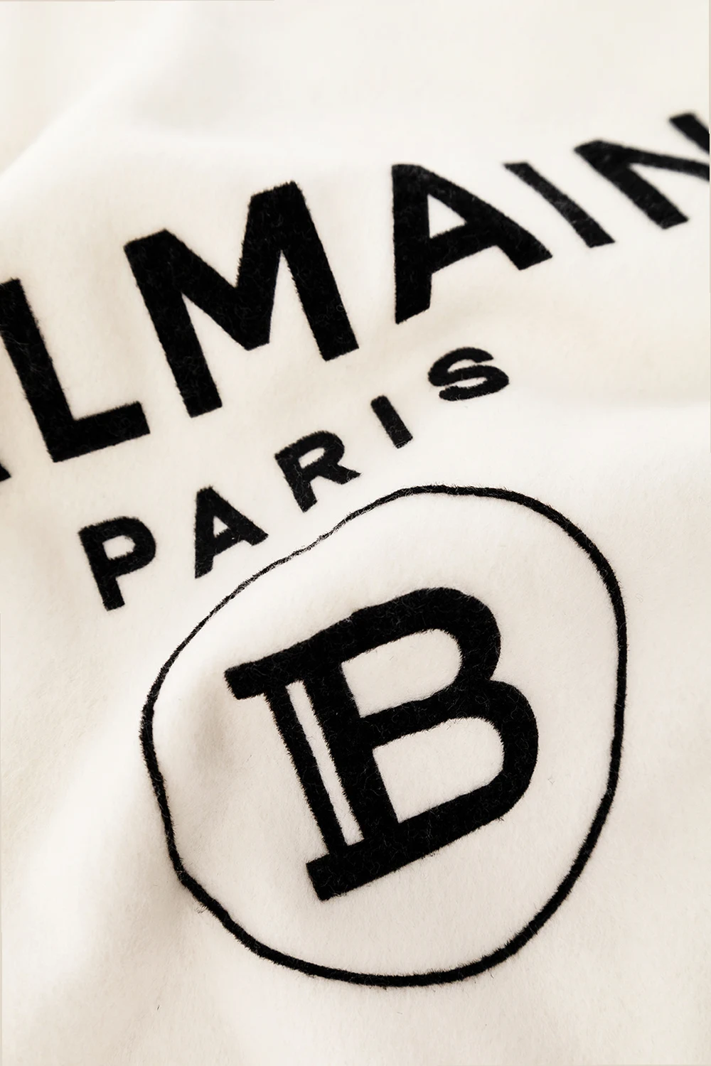 Cream and grey baby blanket from Balmain Kids. Made of cotton, this design features a black logo with a velvet finish.