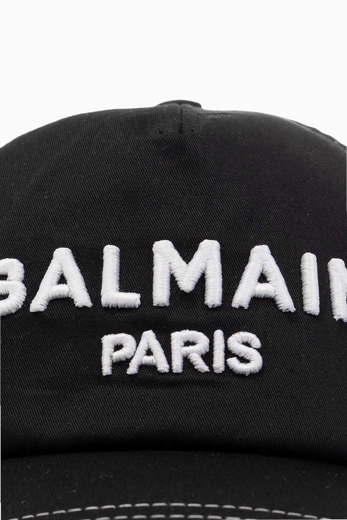 Black baseball cap from Balmain Kids. Made of cotton, this item showcases an embroidered white logo on the front and a velcro closure on the back.