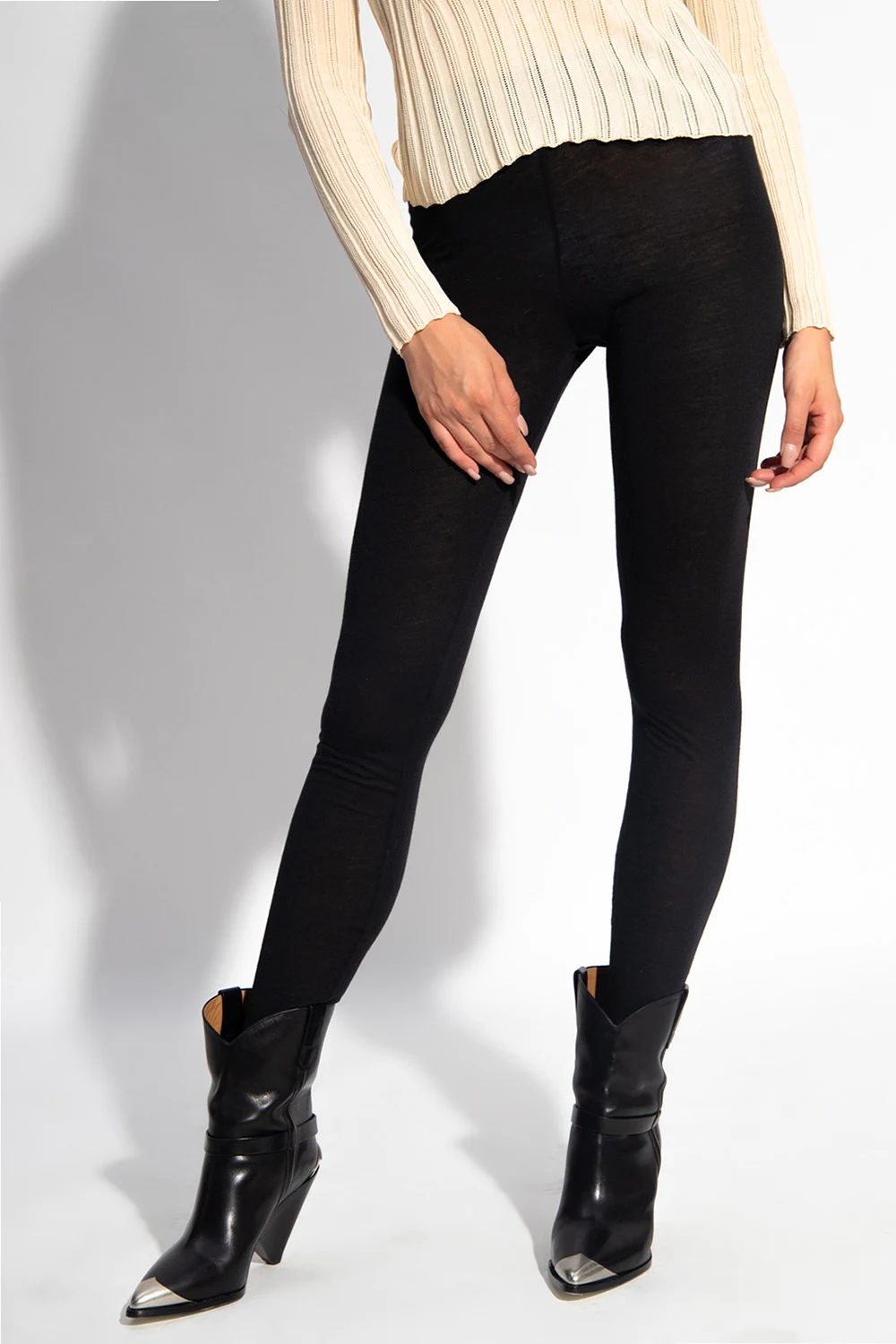 Black leggings from Forte Forte. Decorated with a gold-tone logo embroidery, this pair features an elastic waistband.
