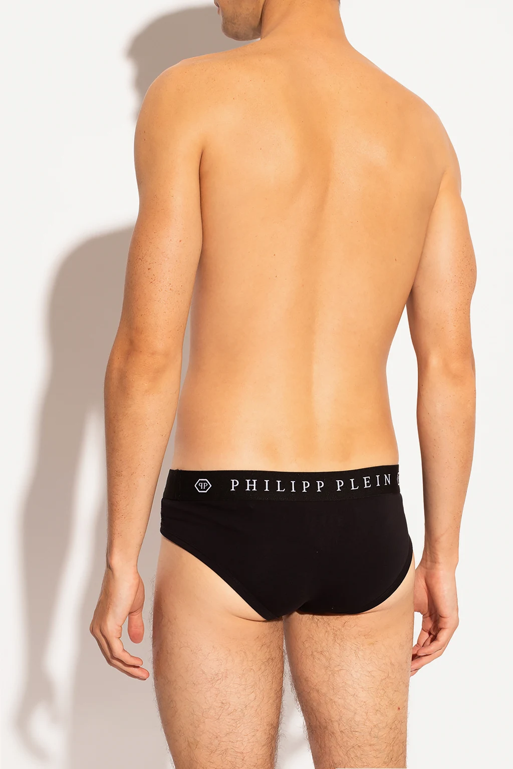 Black briefs from Philipp Plein. Featuring an elastic waistband with a white logo, this pair is embroidered with a black pattern.