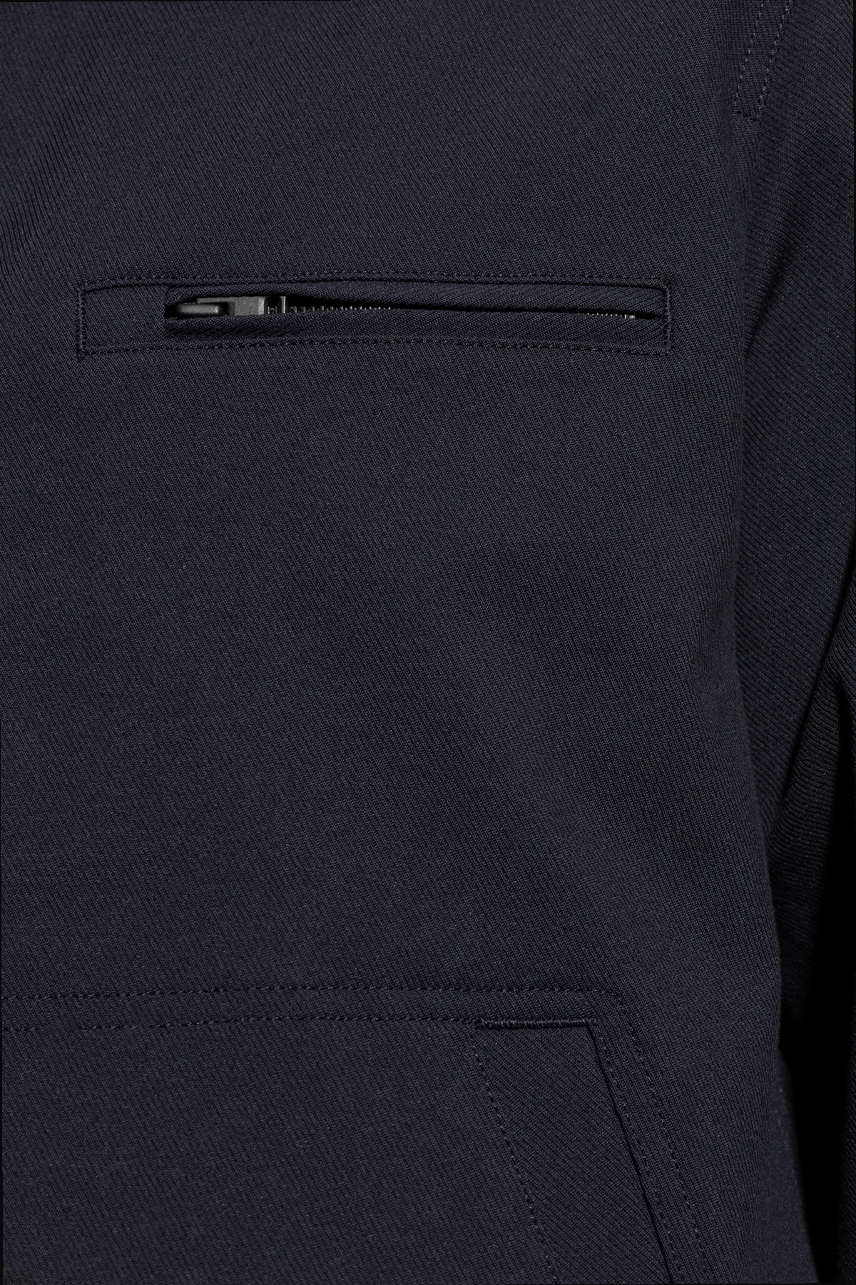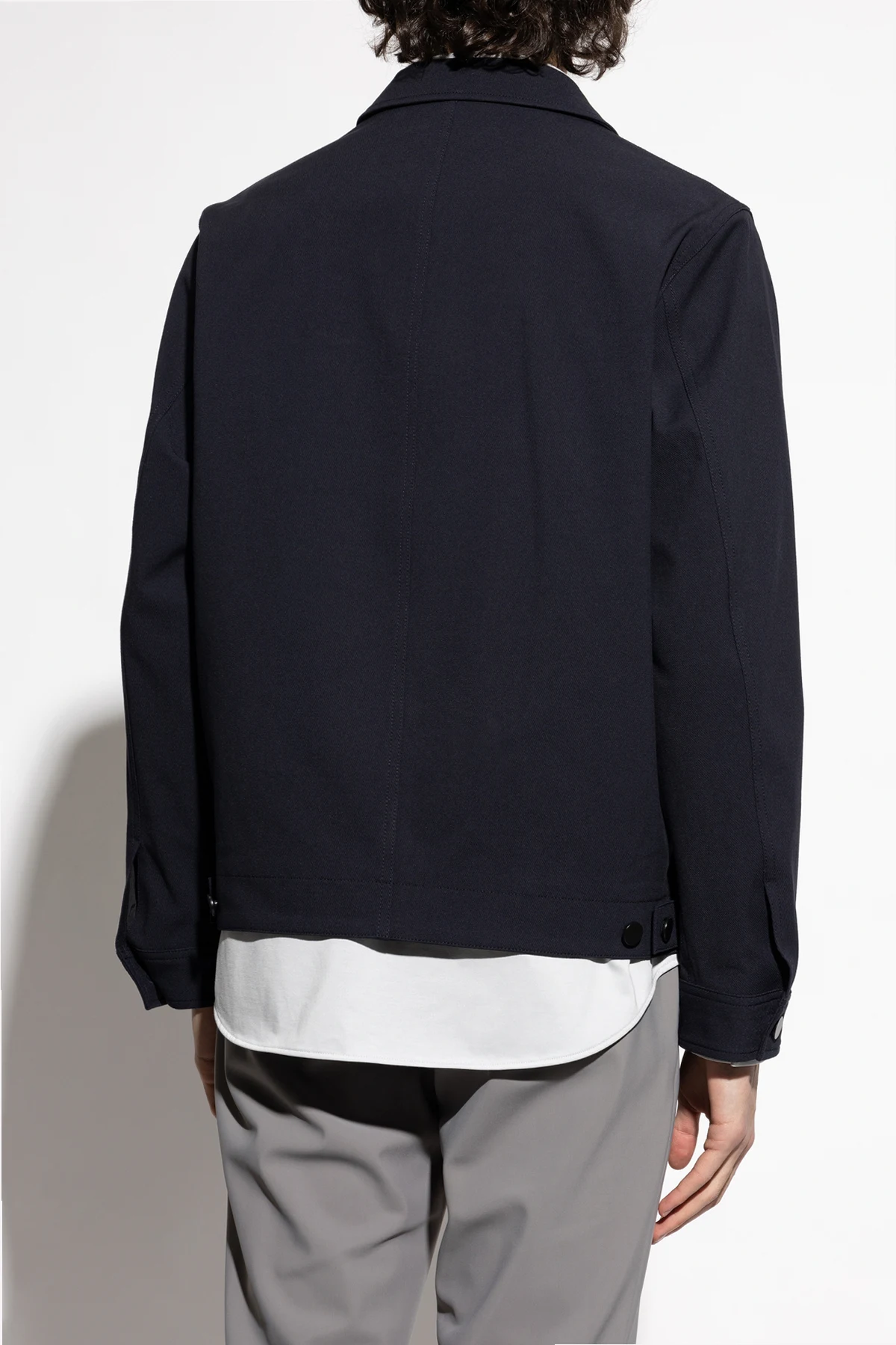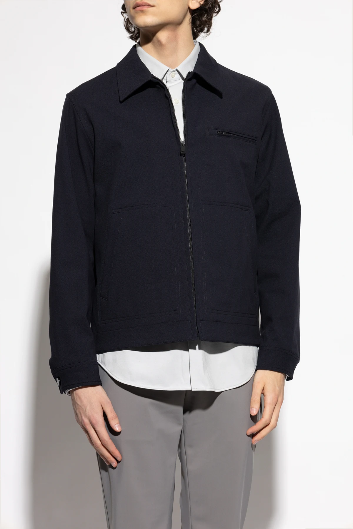 Introducing the Collared Jacket from the illustrious Theory collection, a beacon of sophistication and timeless elegance. This navy masterpiece, crafted with an exquisite blend of cotton, nylon, and spandex, epitomizes luxury and comfort. The jacket features a simple, classic silhouette with a central zipper, adorned with a refined collar that exudes sophistication. Its construction with high-quality materials accentuates its exclusive nature, rendering it a versatile choice for both casual and formal ensembles. Functionality meets style with a horizontal zippered pocket at the front, enhancing its modern aesthetic while providing practicality. Meticulous details, such as the precision of the zipper and fine finishes, attest to the superior craftsmanship expected from a brand like Theory, established in New York in 1997. Why Choose This Product? Exquisite blend of materials for ultimate comfort. Timeless design that complements any wardrobe. Functional and stylish zippered pocket. Perfect for both casual and formal occasions. Crafted by the renowned luxury brand, Theory.