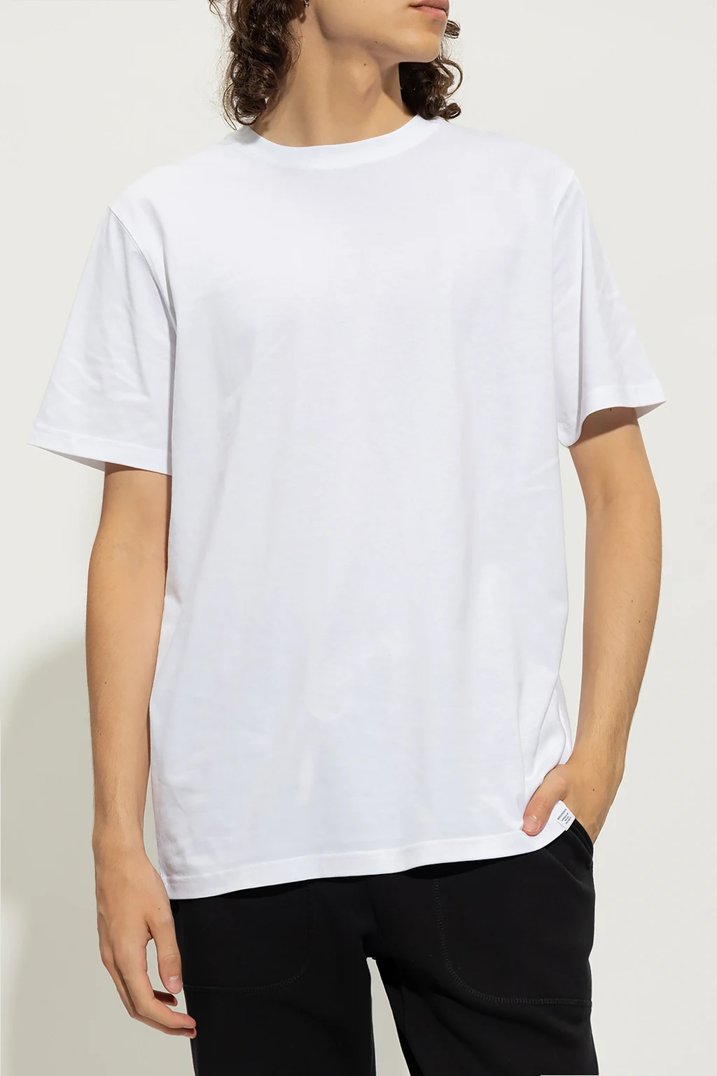 White ‘Niels’ crewneck T-shirt from Norse Projects. Made from cotton, this style features a regular fit and a logo patch at the bottom hem.