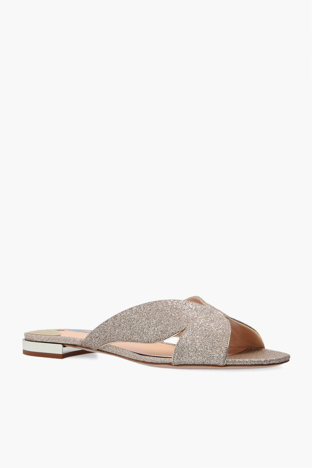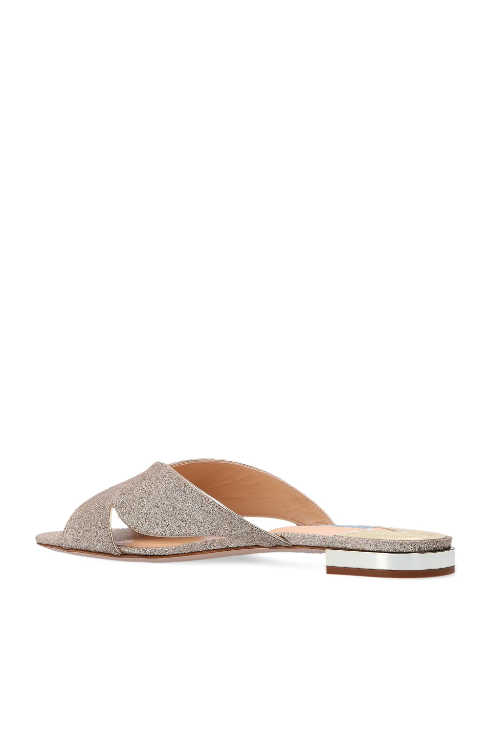 Gold-tone ‘Rita’ glitter slides from Sophia Webster. Crafted from leather, this pair is embellished with glitter and rests on a beige leather sole.
