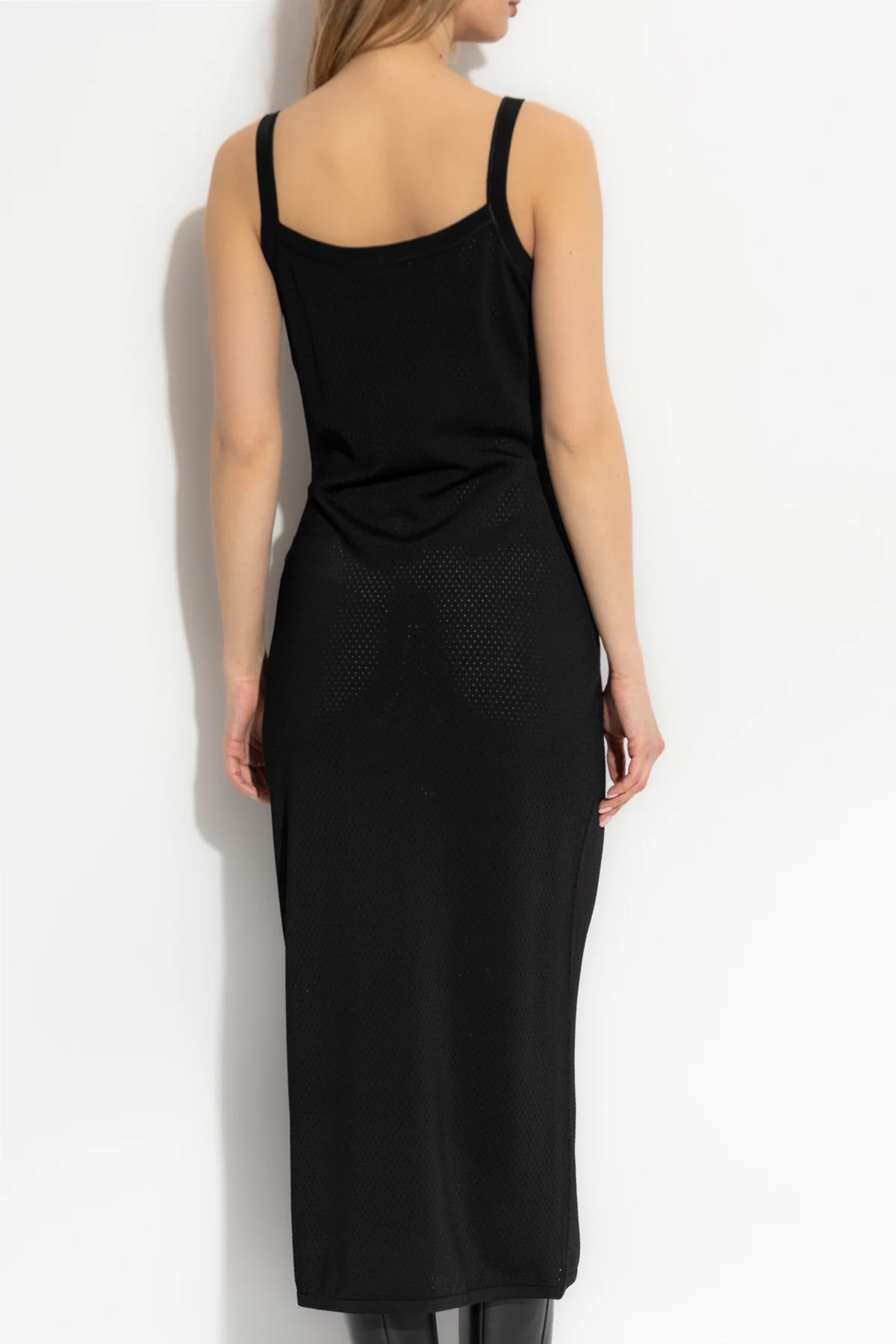 Introducing the Spaghetti Strap Midi Dress from the exclusive collection by T by Alexander Wang. This black masterpiece is a testament to the designer\'s dedication to simplicity and urban chic. Crafted from a luxurious blend of viscose, polyamide, and elastane, the dress features a delicate texture that enhances its unique allure. The dress boasts a sleek, fitted silhouette that gracefully accentuates the figure, while the thin straps add an air of lightness to the ensemble. Its midi length ensures versatile elegance, making it a perfect choice for various occasions. The discreet designer logo on the upper front serves as a subtle nod to the brand\'s prestigious lineage. Why Choose This Product? Exquisite blend of comfort and style. Signature design by T by Alexander Wang. Perfect for both formal and casual events. Subtle designer logo for a touch of exclusivity.