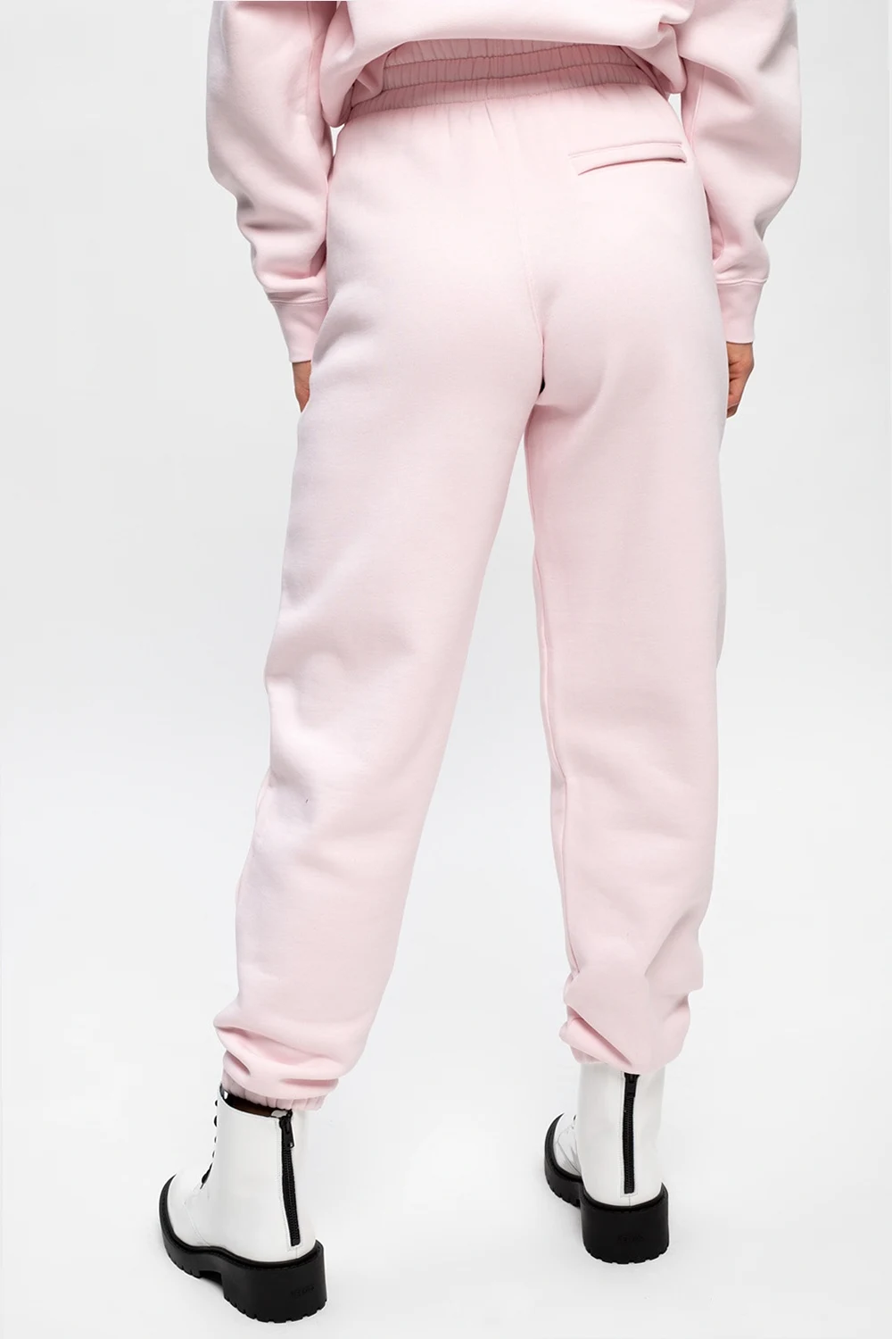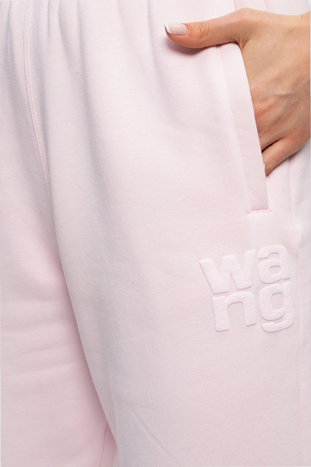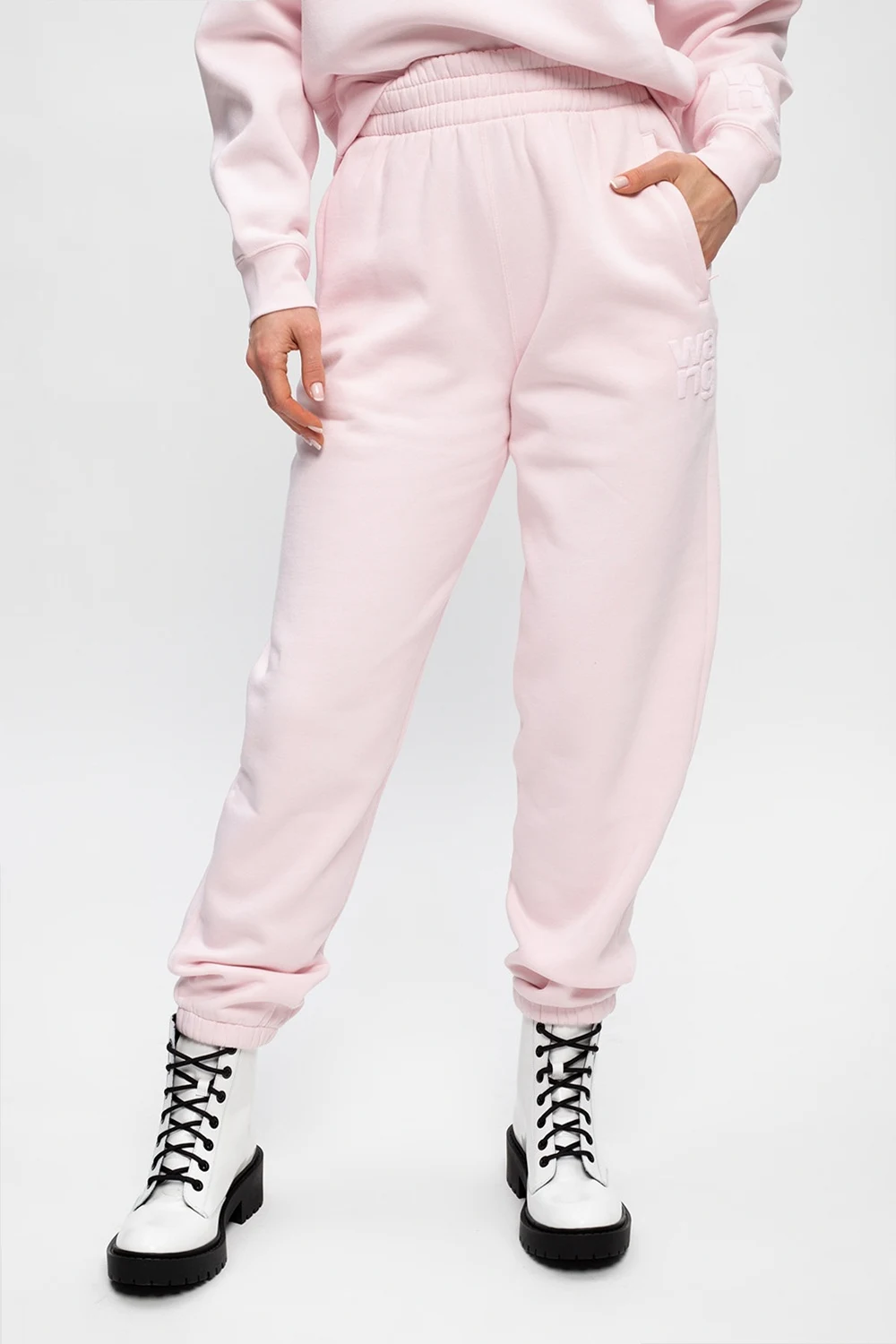 Light pink sweatpants from Alexander Wang. Flaunting a tactile logo detail, this cotton-crafted pair features a relaxed fit with an elasticated waistband, three zipped pockets and ribbed cuffs.