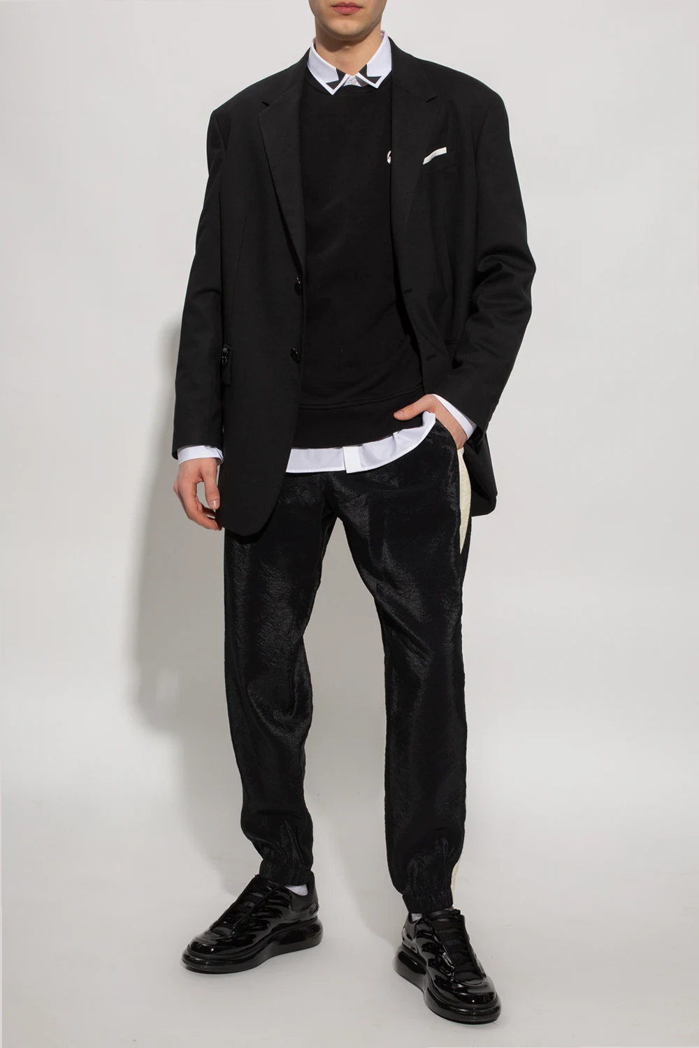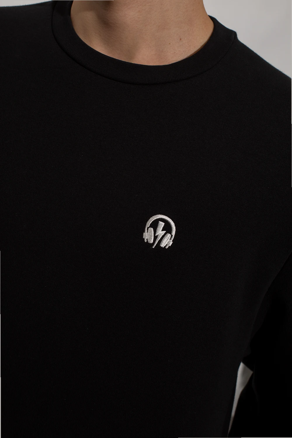 Black crewneck from Neil Barrett. Made of cotton, this garment features a logo embroidery, white pattern and ribbed trims at the neck, hem and cuffs.