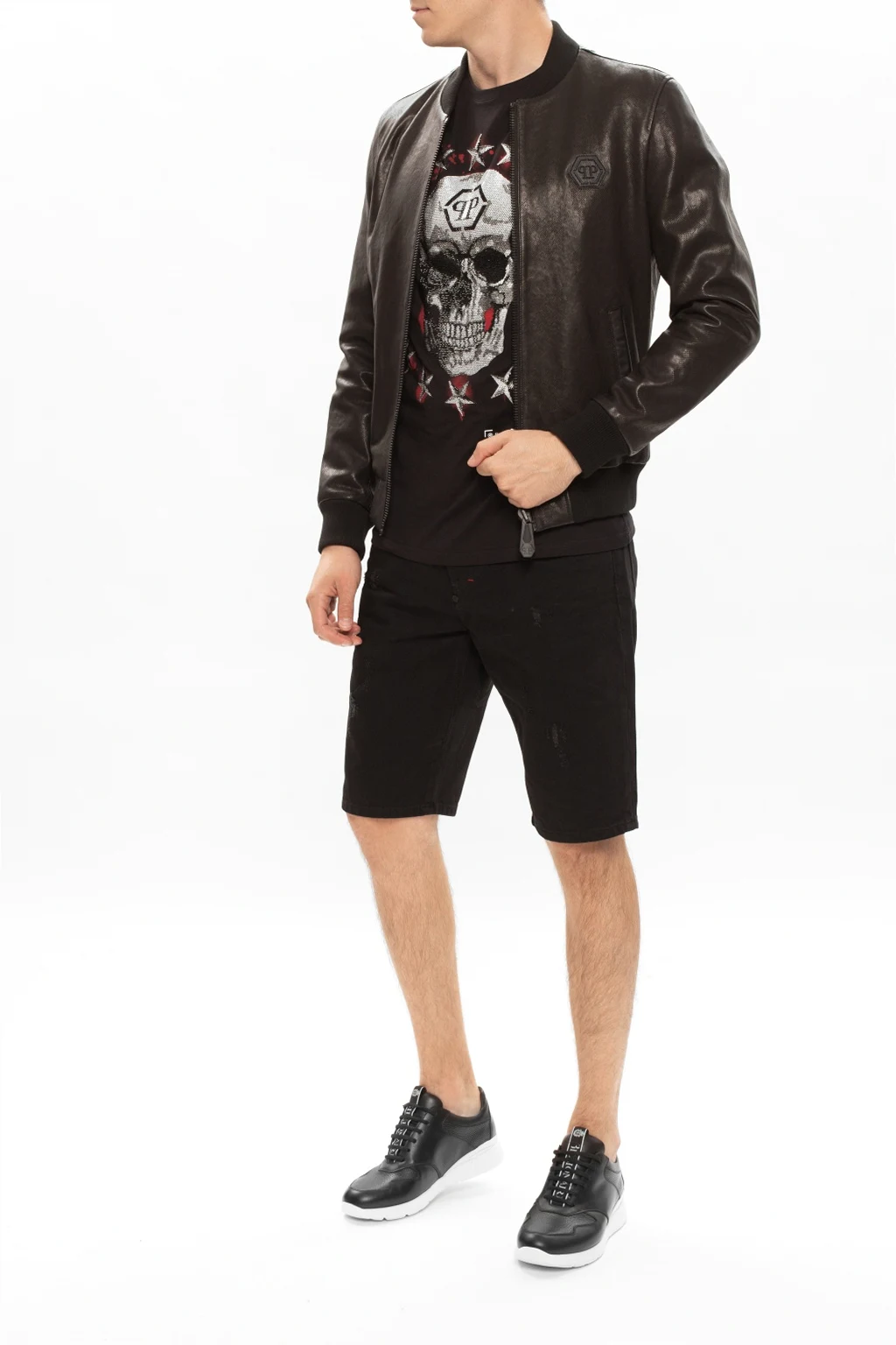 Black and white sneakers from Billionaire. With a panelled leather upper, this lace-up pair set on a white rubber sole and employs logoed stripe sewn on the tongue and embroidered white logo at the heel counter.