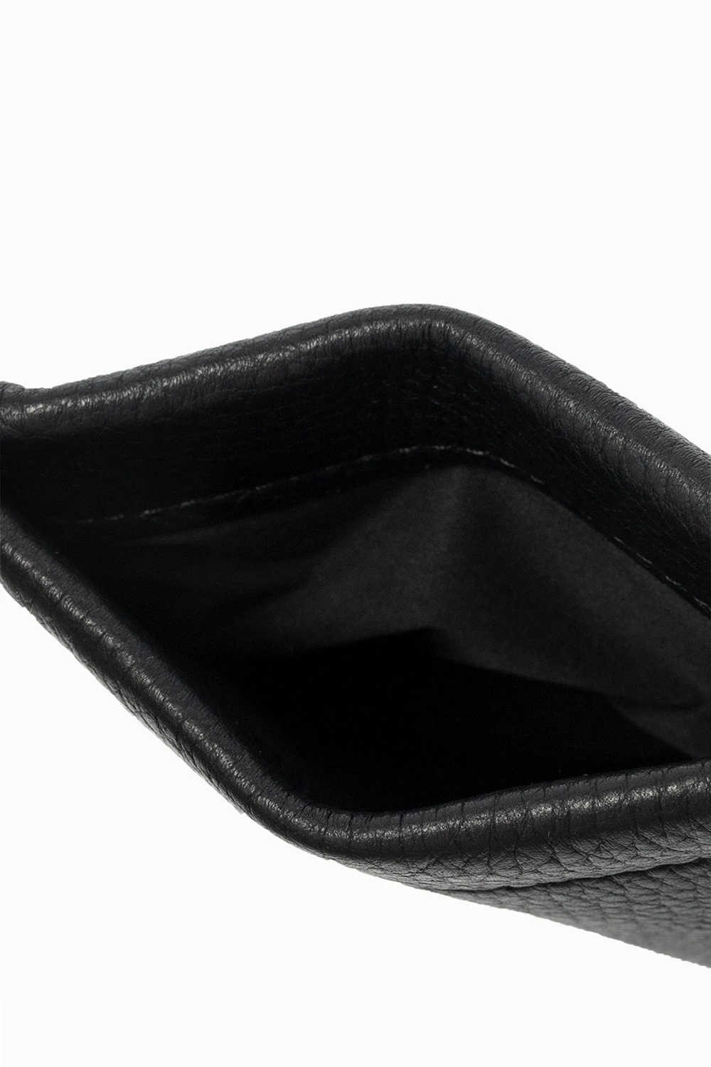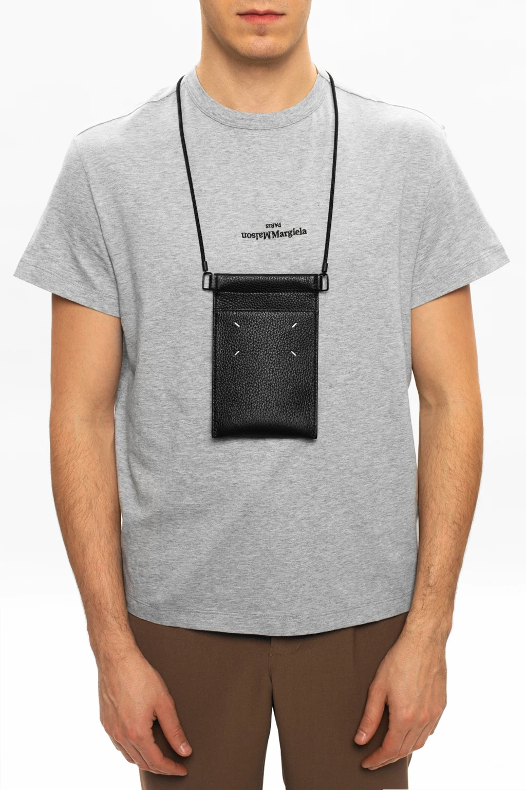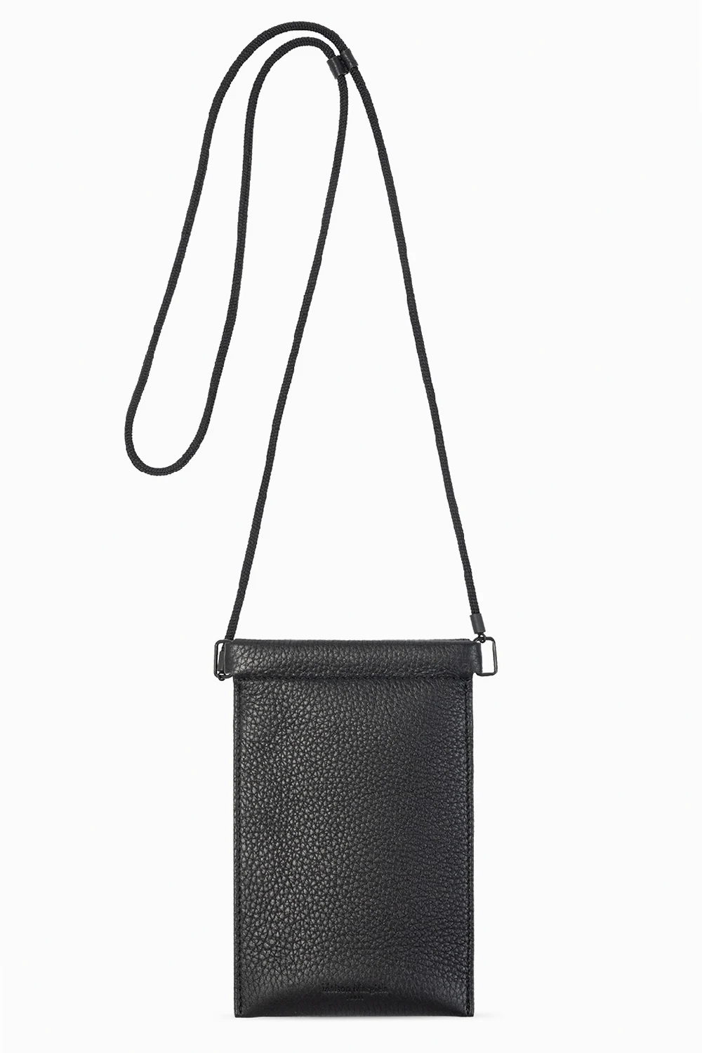 Black phone pouch from Maison Margiela. Crafted from leather, this design features a stitching detail in white, a front slip pocket and one internal compartment.