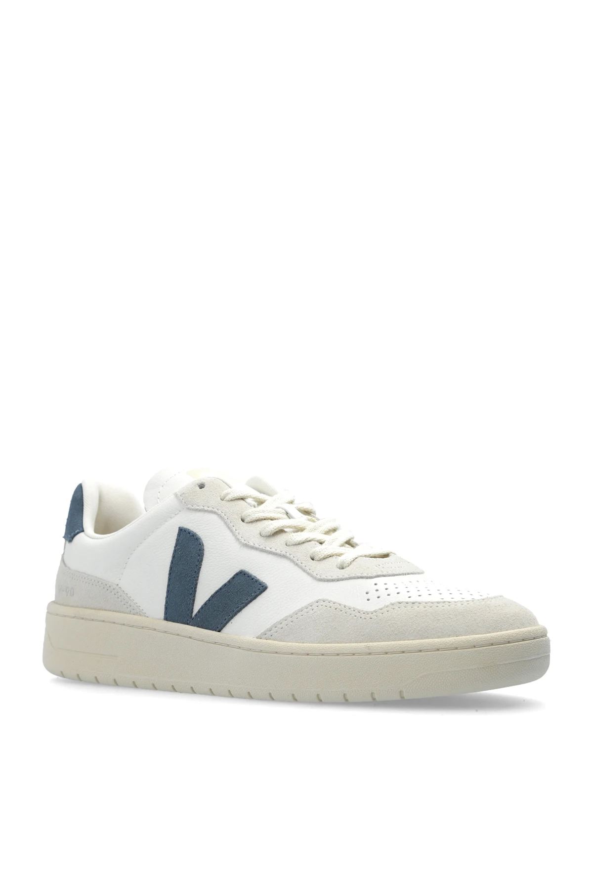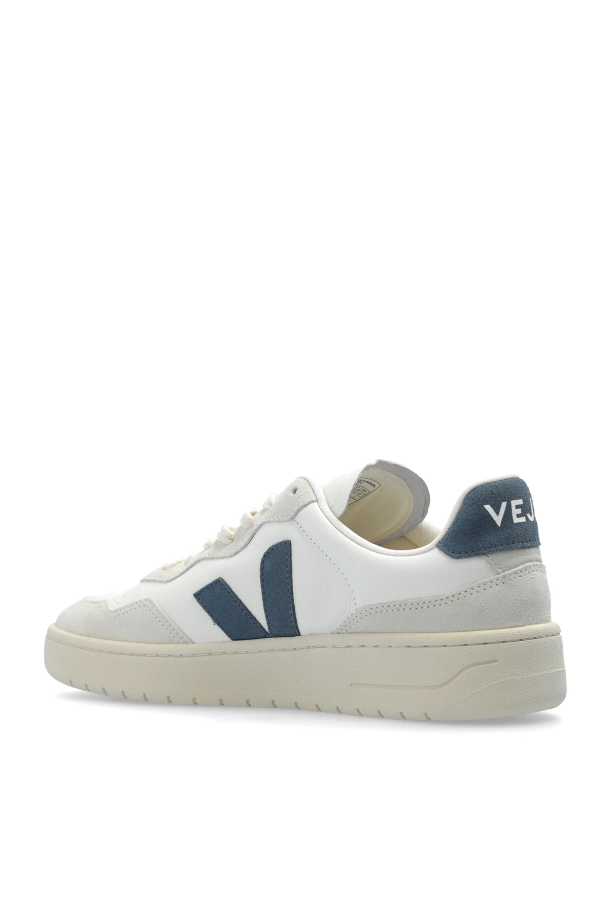 Introducing the Veja \'V-90\' sneakers, a quintessential piece that epitomizes both comfort and style in the realm of casual sportswear. These sneakers feature a classic, low-profile silhouette with a flat sole, designed to seamlessly blend into any wardrobe with its versatile aesthetics. The upper of the \'V-90\' sneakers is masterfully crafted from a medley of materials including suede and a mesh-like fabric, offering a rich texture and superior breathability thanks to the strategic perforations at the forefront. The predominant white hue is tastefully contrasted with inserts in shades of gray or dark blue, culminating in a design that is both understated and eye-catching. Distinctive elements such as the large \"V\" logo adorning the sides and additional brand markings on the heel and tongue, signify the Veja brand\'s commitment to excellence and identity. The careful combination of leather outer layer, fabric interior, and rubber sole ensures not only unmatched style but also enduring comfort and durability. Why Purchase the Veja \'V-90\' Sneakers? Elegant Design: A timeless low-top profile that complements both casual and semi-formal attire. Premium Materials: High-quality leather, breathable fabrics, and resilient rubber come together for a luxurious feel. Signature Detailing: The iconic \"V\" logo and strategic brand placements make these sneakers distinctively Veja. Versatile Styling: Perfectly pairs with anything from jeans to joggers, embodying versatility.