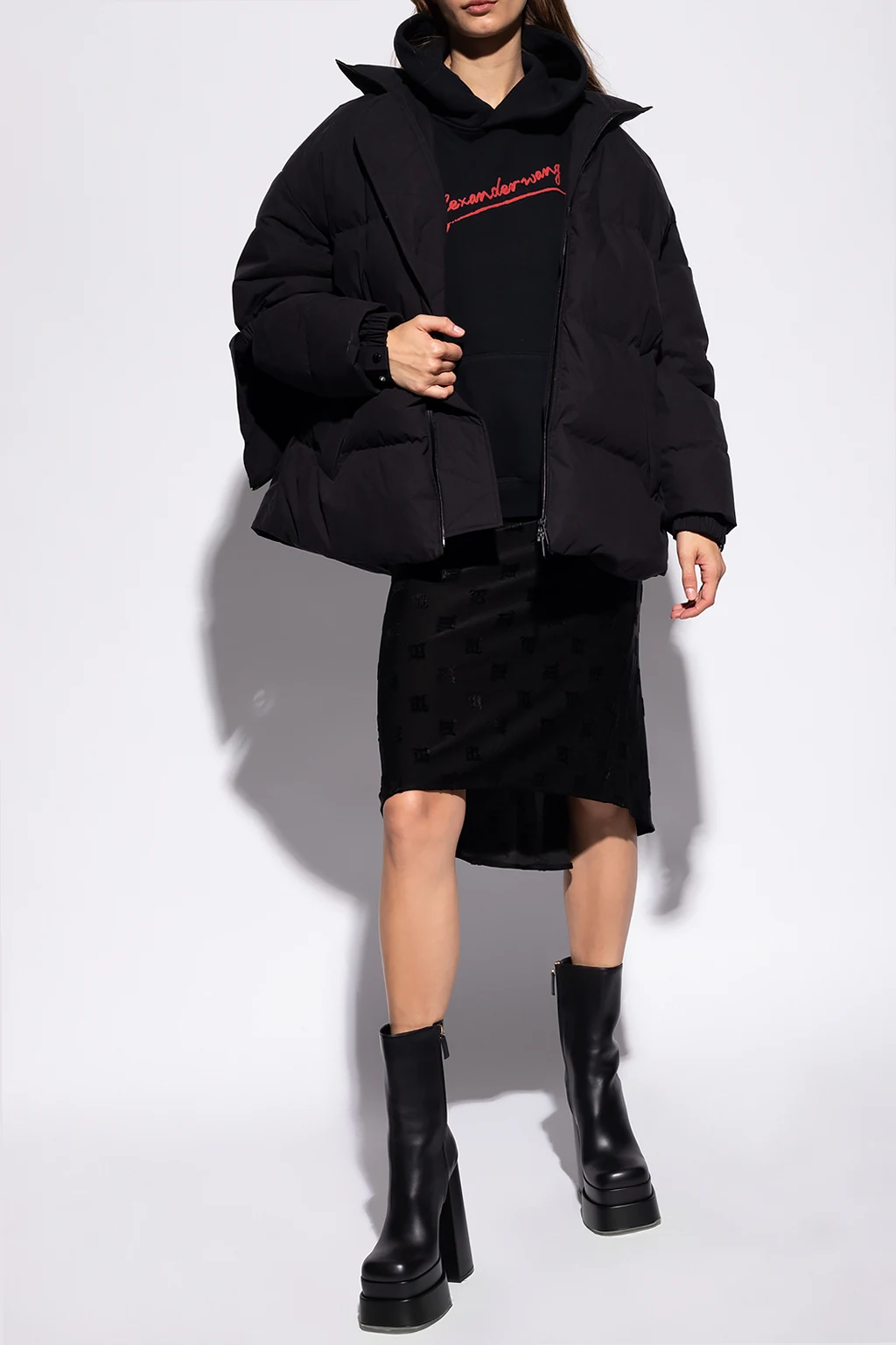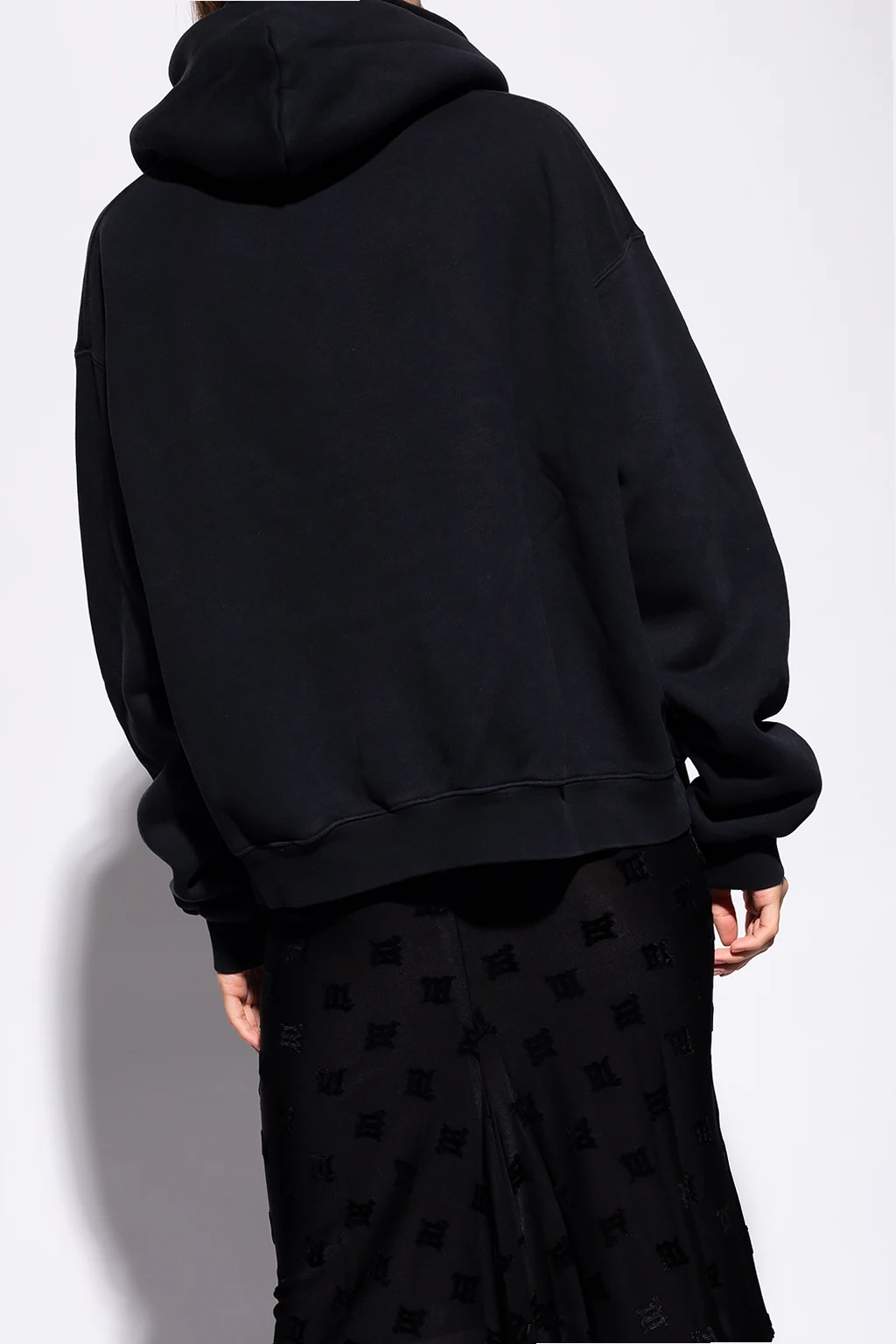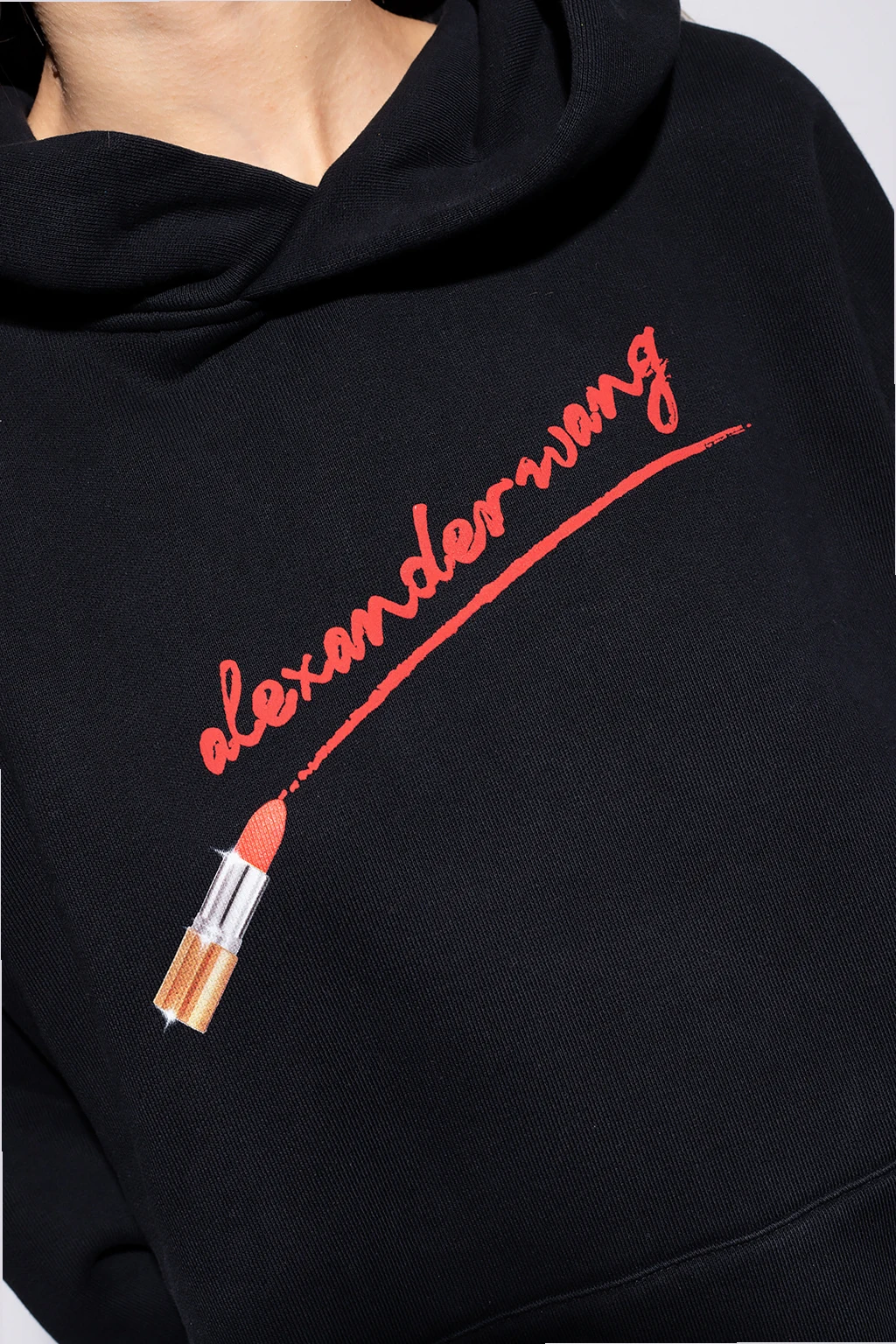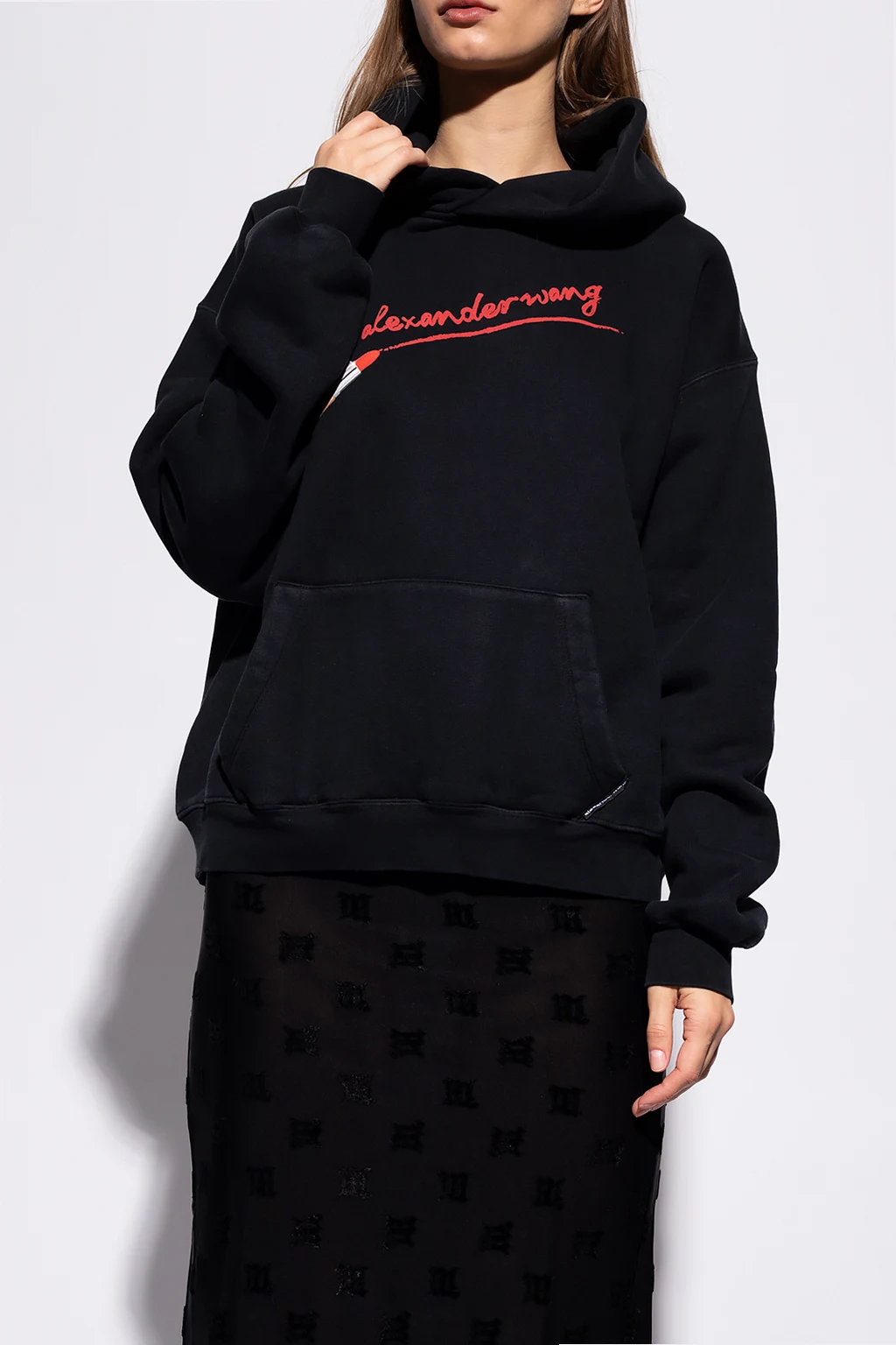 Black oversize hoodie from Alexander Wang. Decorated with a multicolored print, this garment features a slip pocket, logo embroidery and ribbed trims at the hem and cuffs.
