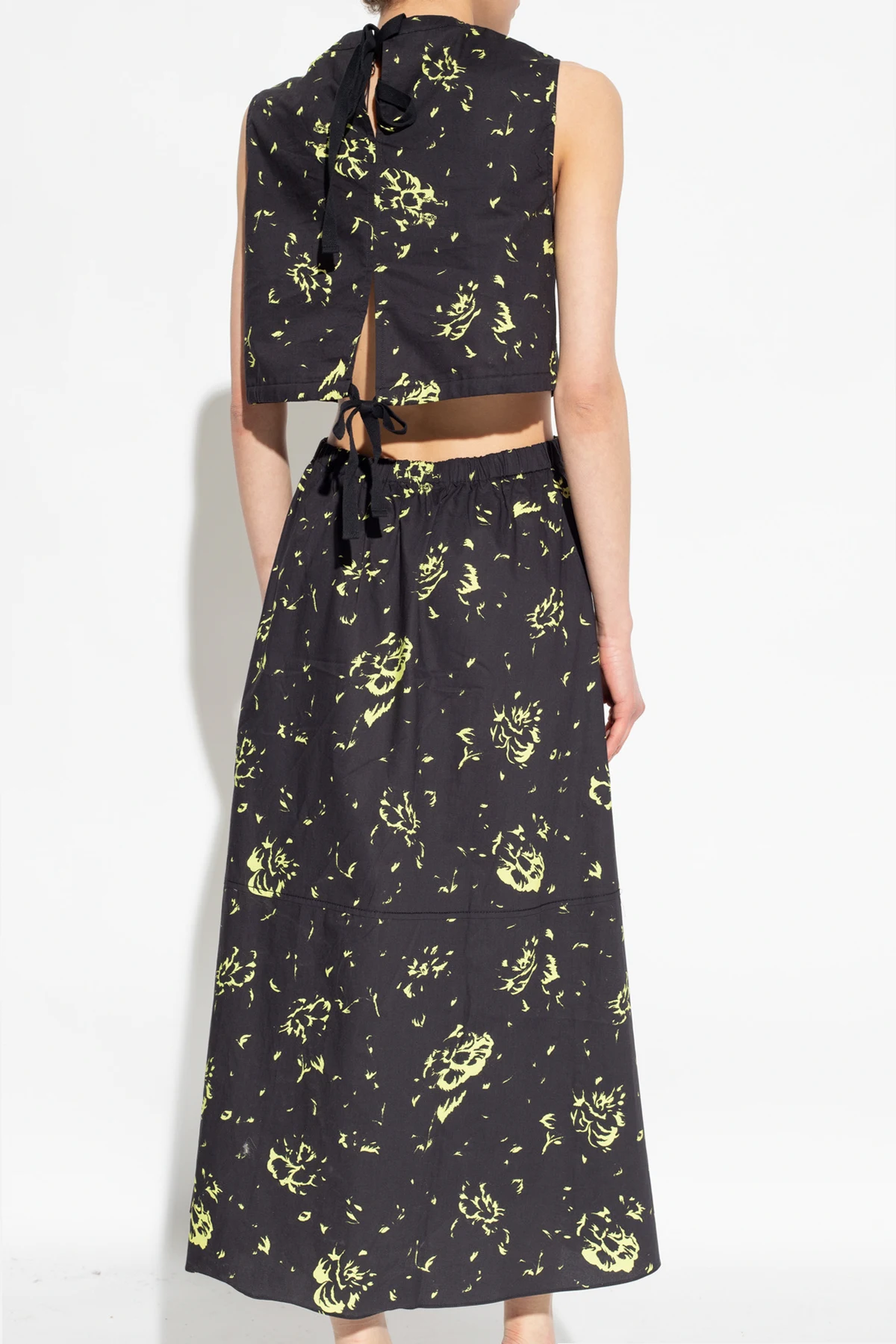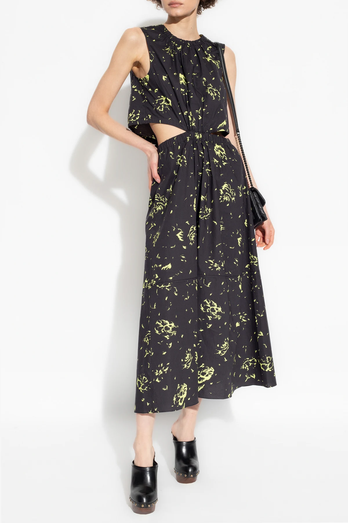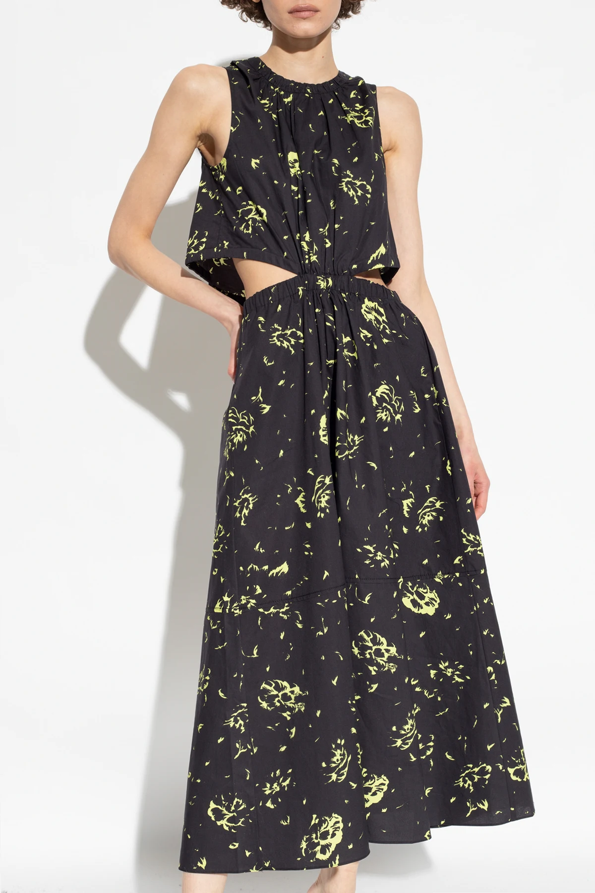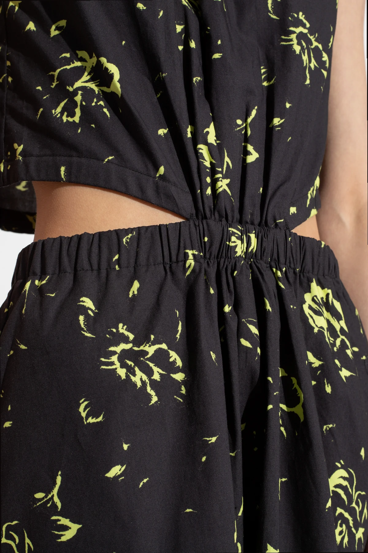 Black and green dress from Proenza Schouler White Label. Made of cotton with a sleeveless silhouette, this style features a decorative pattern, cutouts and a tie detail at the back.